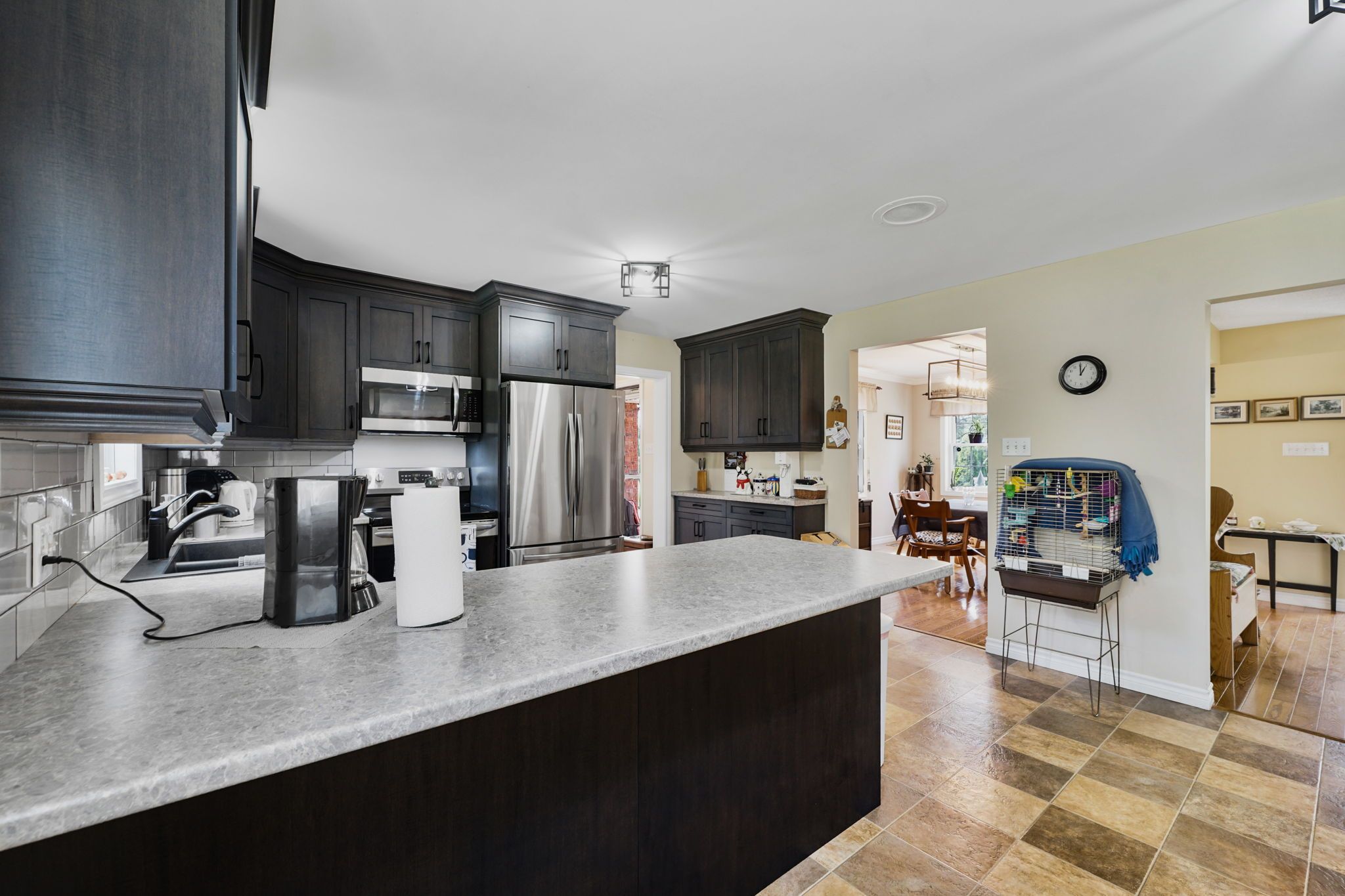 Discover your own private oasis with this breathtaking 3. 44-acre property in picturesque mountforest, offering stunning views of mill pond! This spacious 2,750 square foot home perfectlycombines country living with modern comforts. This beautiful home features 3 large bedrooms,3bathrooms, large eat-in kitchen, dining room, separate living and family rooms, a 4-cargarage, and a partly finished basement. The kitchen has been recently renovated with newcupboards, countertops, dishwasher, and lighting. With plenty of windows on the main floor theyprovide plenty of natural light. The basement provides plenty of storage, a cold room, workoutarea and a recreation room for relaxation. Outside, enjoy the abundant space for gardening andoutdoor activities, surrounded by lush greenery. Fully fenced area out back features patioarea, private dog run with access from laundry room. This nature lover's paradise offers aserene escape and presents endless possibilities in a tranquil setting. Conveniently locatedjust minutes from local amenities and the charm of mount forest, this home is ready for you tomake it your own. Don't miss this rare opportunity to own a piece of paradise.