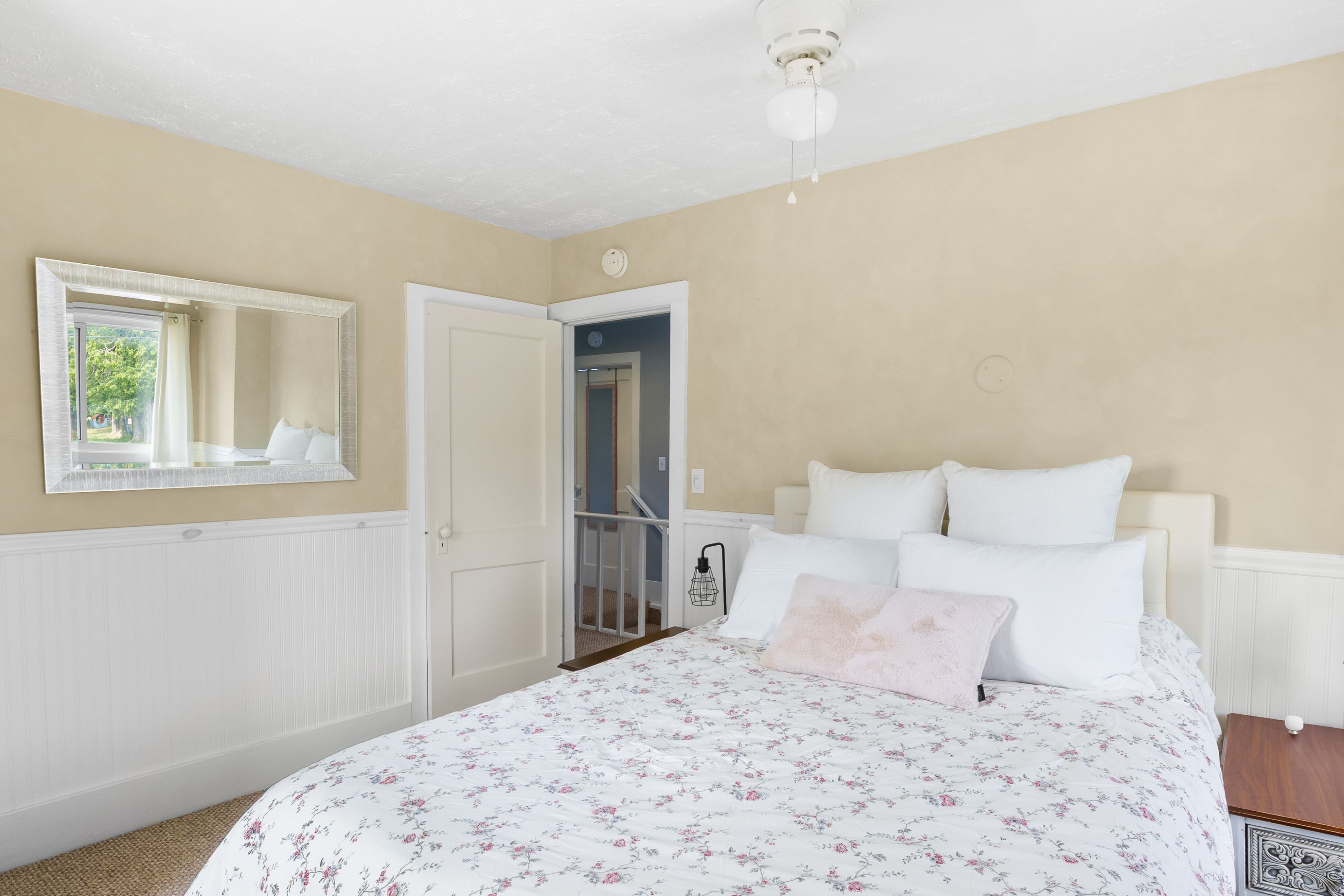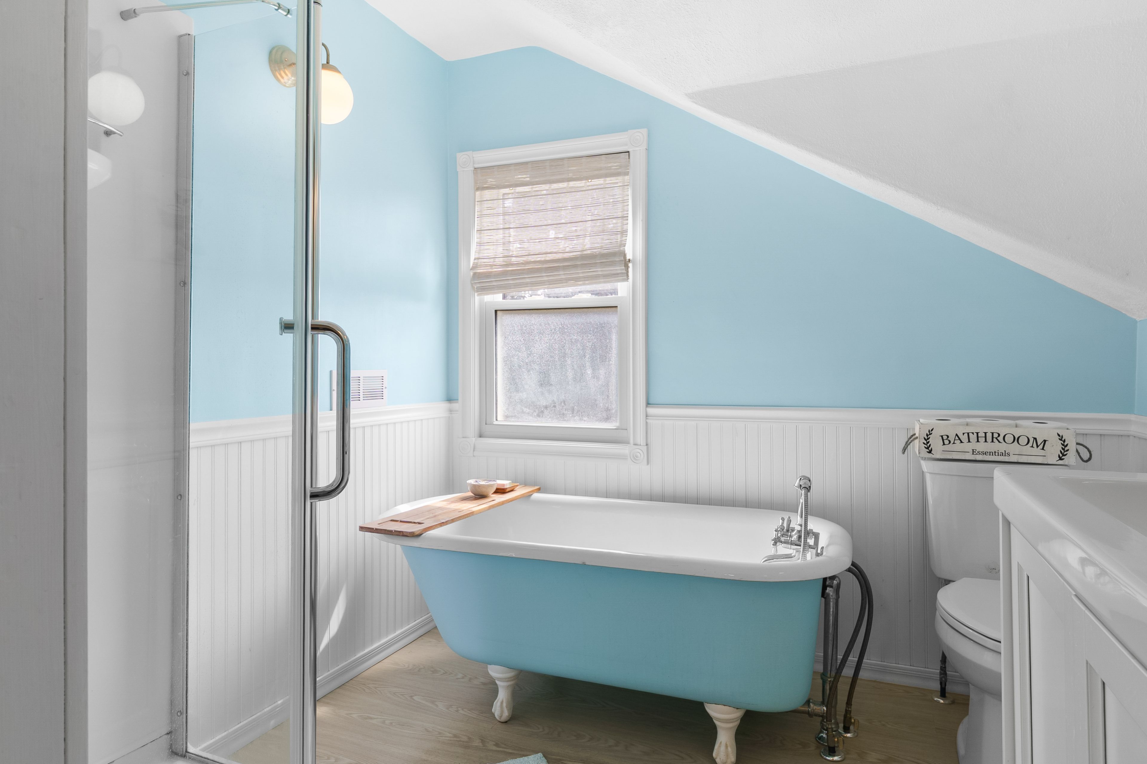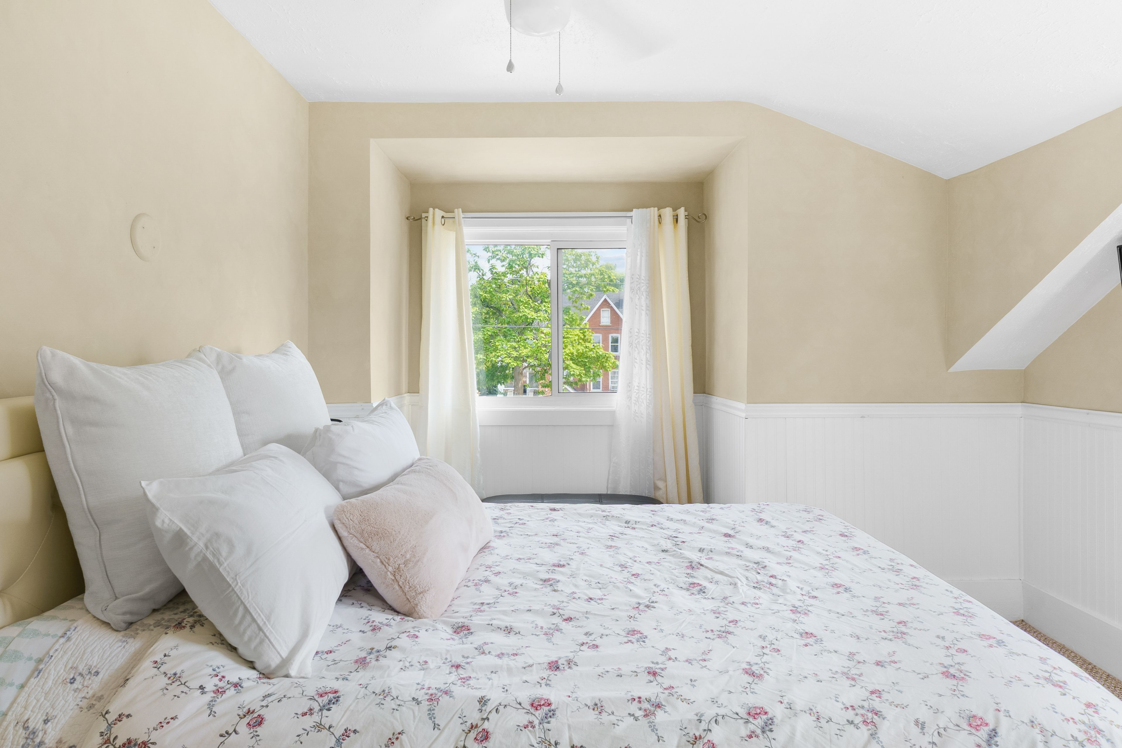 • Cozy upstairs with three bedrooms and a classic clawfoot tub bathroom.