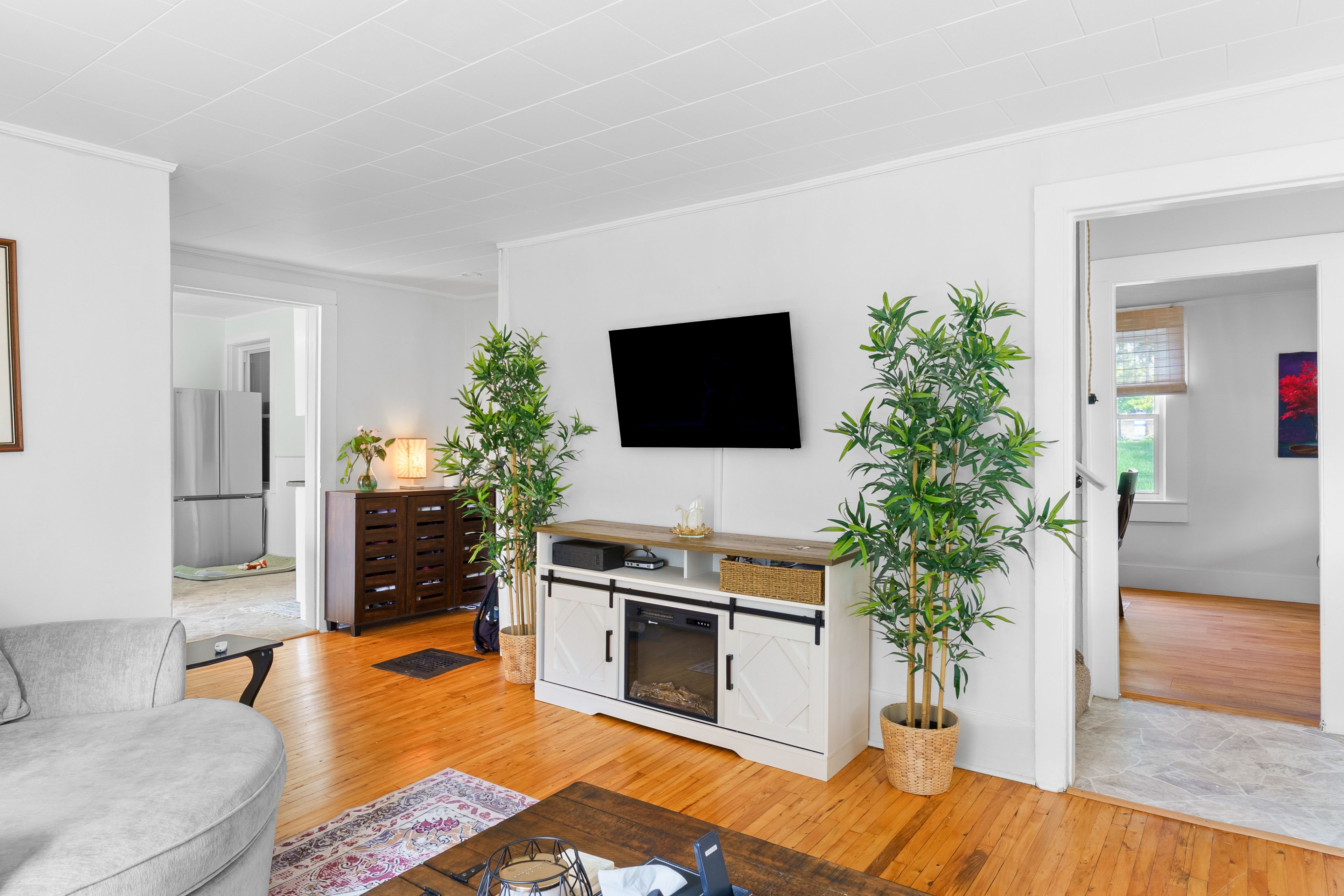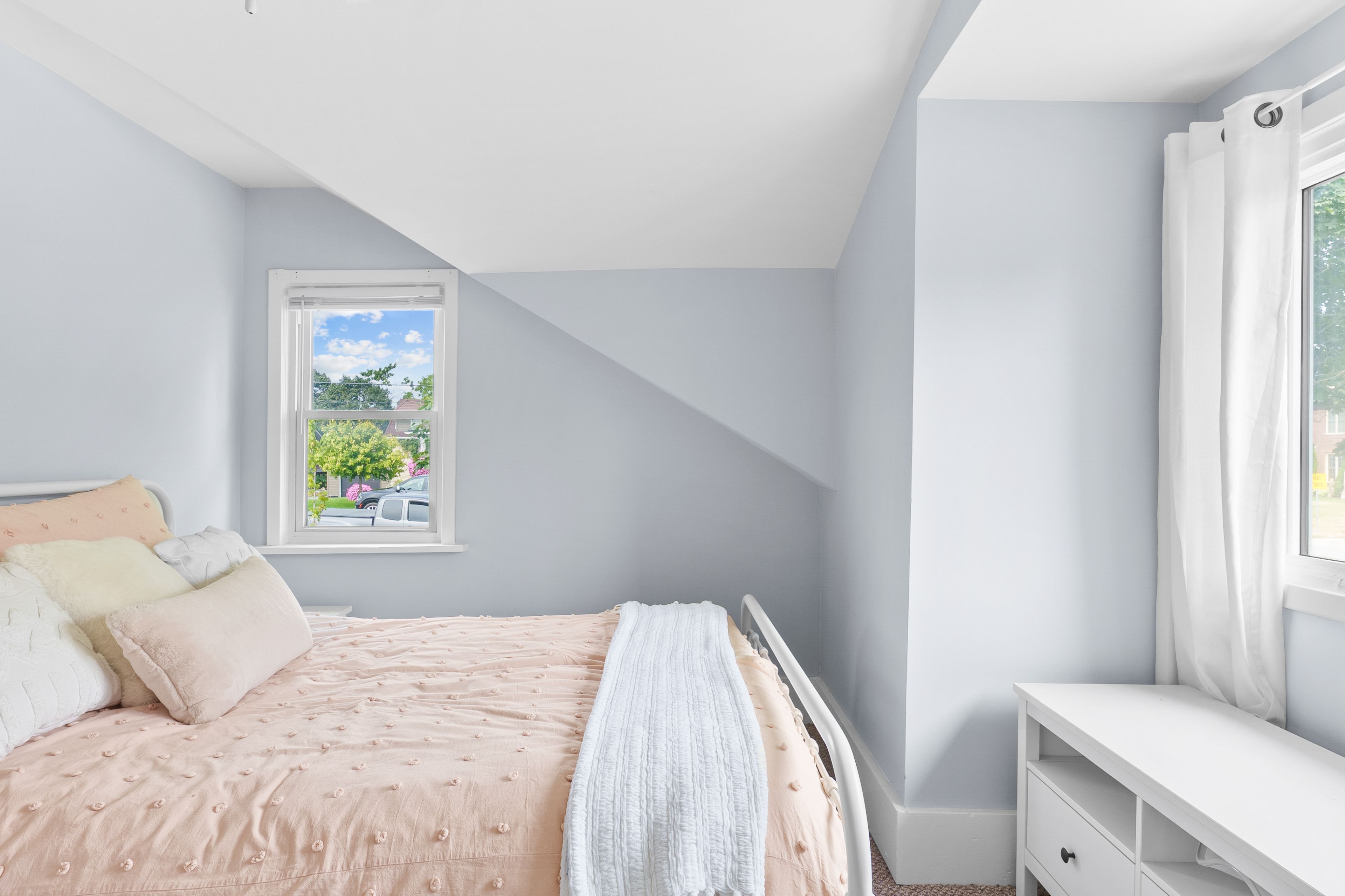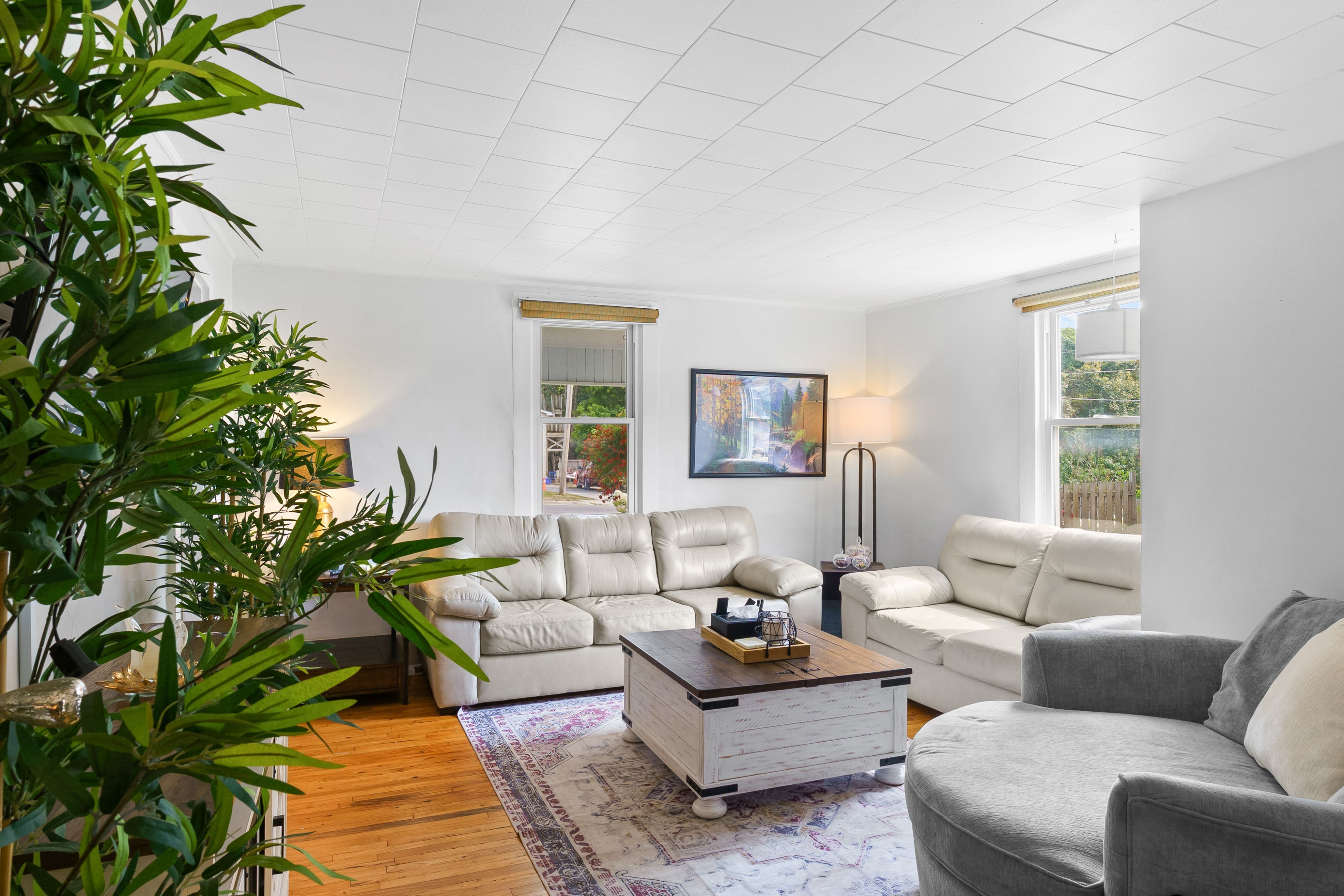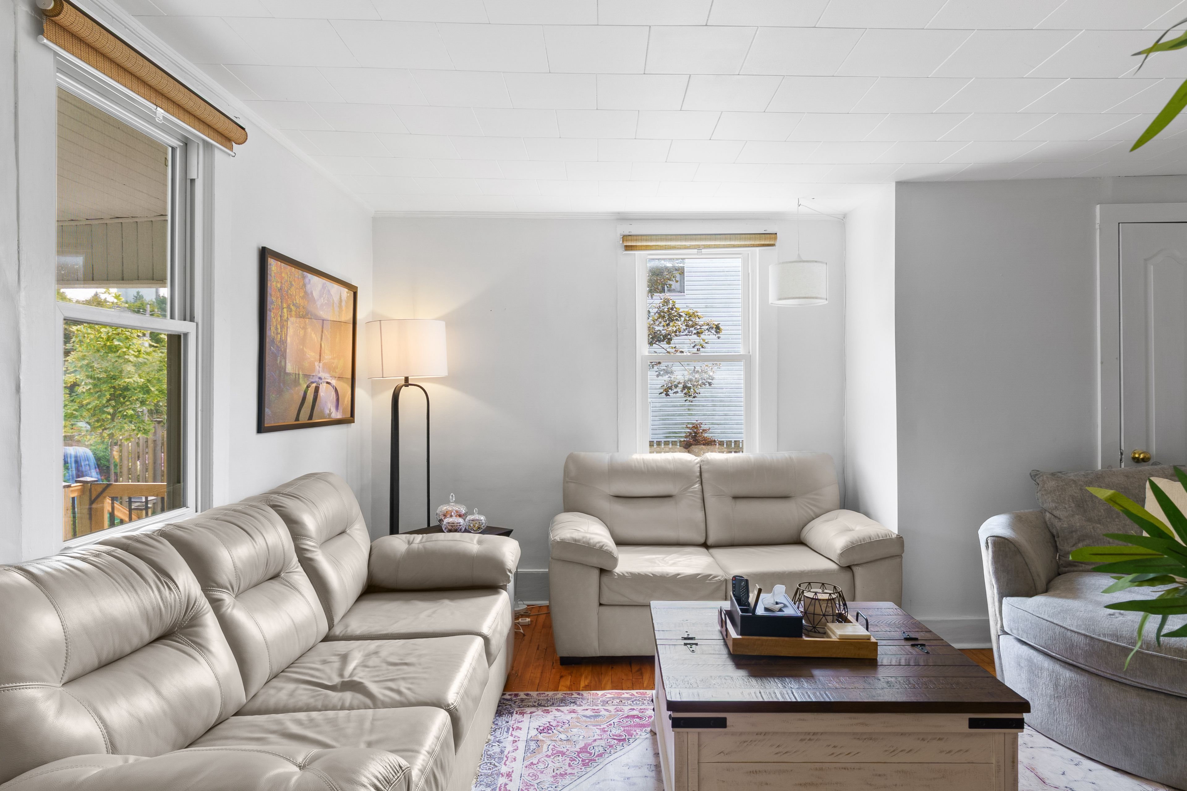 • Cozy upstairs with three bedrooms and a classic clawfoot tub bathroom.