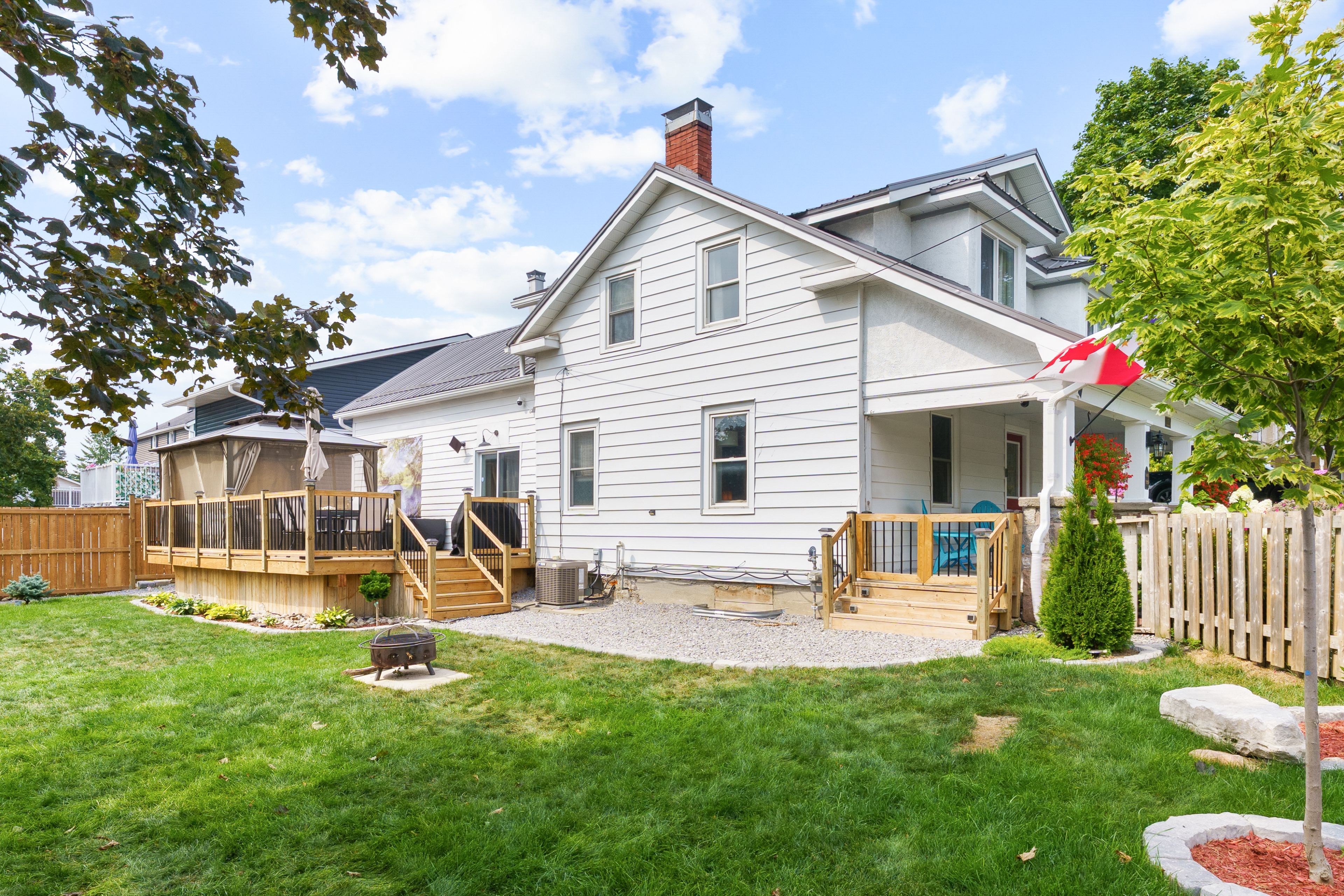 This delightful 1. 5-storey home offers the perfect blend of character and modern updates, all within walking distance to the heart of fenelon falls. Situated on a beautifully landscaped 0. 201-acre lot, the property features a newly built (2024) deck, lush new sod, rock pathways, and vibrant flower beds creating an inviting outdoor oasis. Step inside to a spacious covered front porch, ideal for morning coffee or relaxing evenings. The large eat-in kitchen boasts stylish butcher block countertops and a walkout to the deck and fully fenced side yard, perfect for entertaining. The main floor also includes a bright living room, updated 2-piece powder room (2023), and a formal dining room with new laminate flooring (2024). Plans are currently underway to add a main floor bedroom and a separate laundry room, enhancing both convenience and functionality. Upstairs, you'll find coxy carpeting, three bedrooms, and a charming 4-piece bathroom featuring a classic clawfoot tub. The home also includes a basement/crawlspace, offering additional storage and utility space. With its prime location, thoughtful updates, and functional layout, this home is an excellent option for families, retirees, or anyone looking to enjoy all that fenelon falls has to offer.