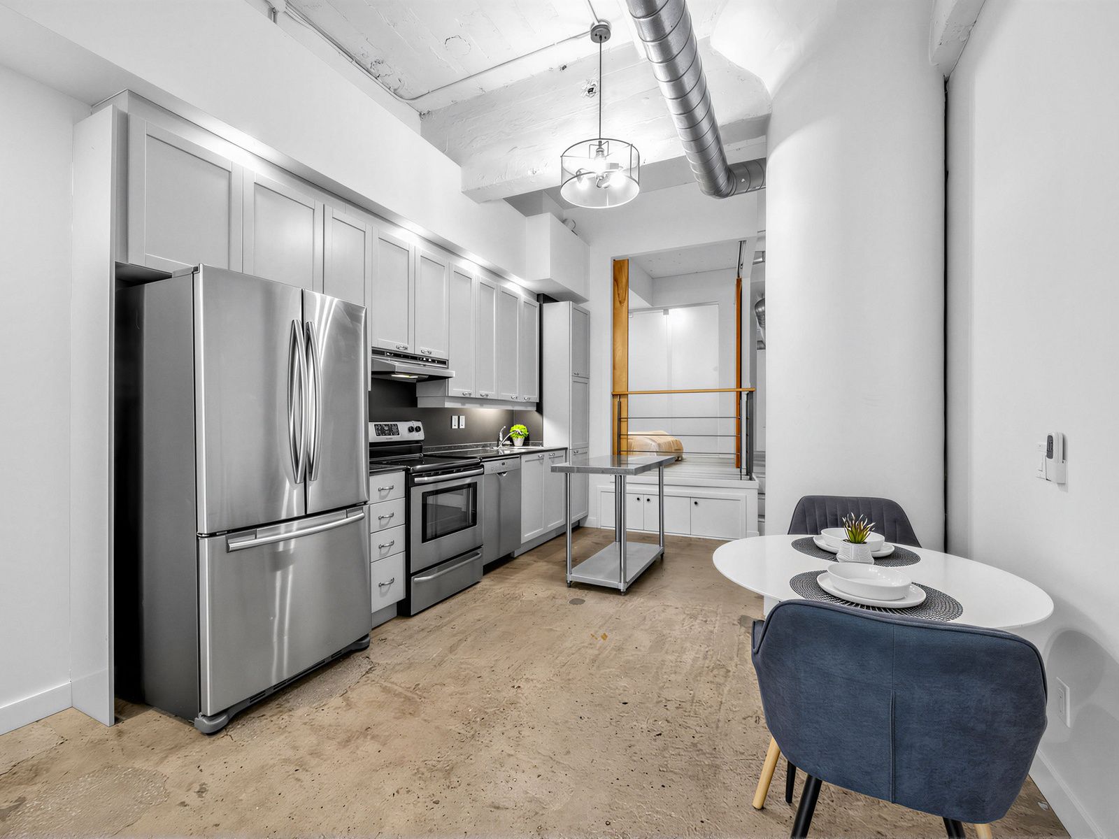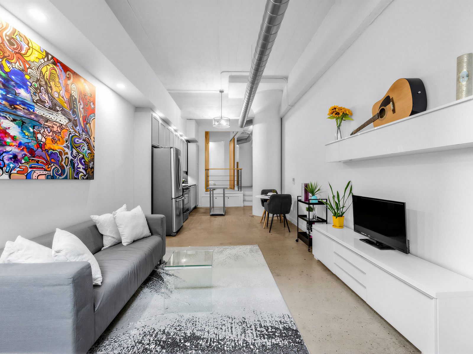 Experience the iconic merchandise lofts, featuring soaring 12-ft ceilings, polished concrete floors, exposed ductwork, and heritage windows. The open-concept layout boasts a generous 750 sq ft of living space and seamlessly connects the kitchen, living, and dining areas-perfect for daily living or creating a stylish work-from-home space. The upgraded kitchen features sleek cabinetry, new stainless steel appliances, and plenty of storage. The elevated bedroom includes custom built-in drawers beneath the platform, maximizing space while keeping the loft organized. Located just steps from toronto's financial district, tmu, and the university of toronto, residents enjoy premier amenities including 24-hour concierge,indoor pool, gym, sauna, yoga and games rooms, basketball court, rooftop terrace with bbqs, and a dog walk area. A rare opportunity to live in a true industrial-design loft that combines historic character, modern style, and downtown convenience.
