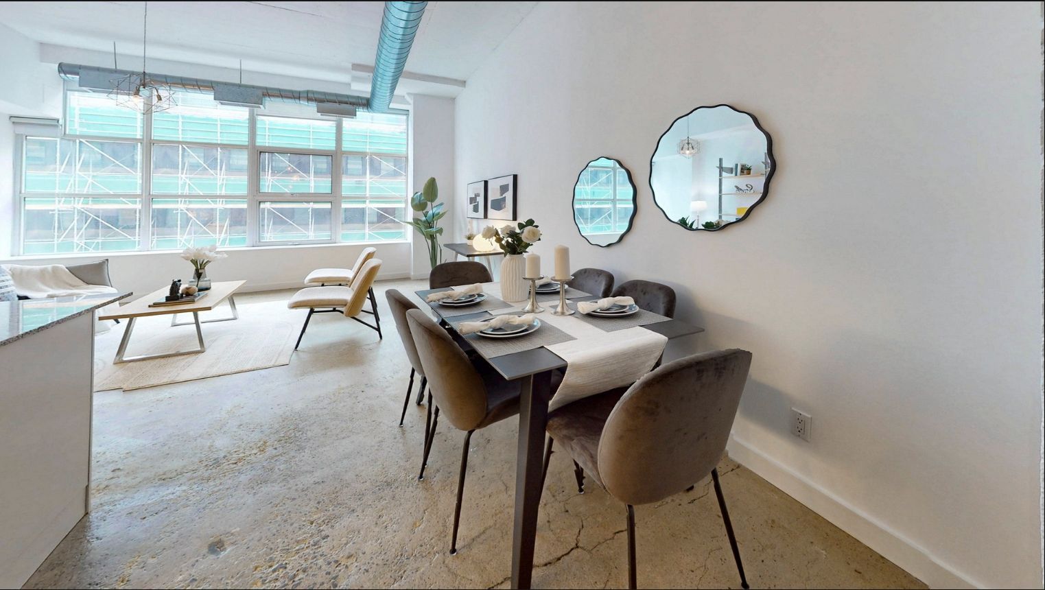 Welcome to suite 630 at the iconic merchandise lofts! This stunning hard loft offers over 1,000 sq ft of open-concept living with 2 spacious bedrooms, 1 bathroom and parking. Freshly painted and filled with character, the suite features soaring 12-foot ceilings, polished concrete floors, and exposed ductwork that seamlessly blends classic loft elements with a modern kitchen, dining, and living space-perfect for entertaining. Enjoy unbeatable convenience just steps to the eaton centre, tmu subway station, streetcar access nearby, and a metro grocery store in the building. Residents have access to exceptional amenities including a 24-hour concierge, full fitness centre with basketball court, indoor pool, rooftop deck, and rooftop dog walk. Don't miss this incredible opportunity!
