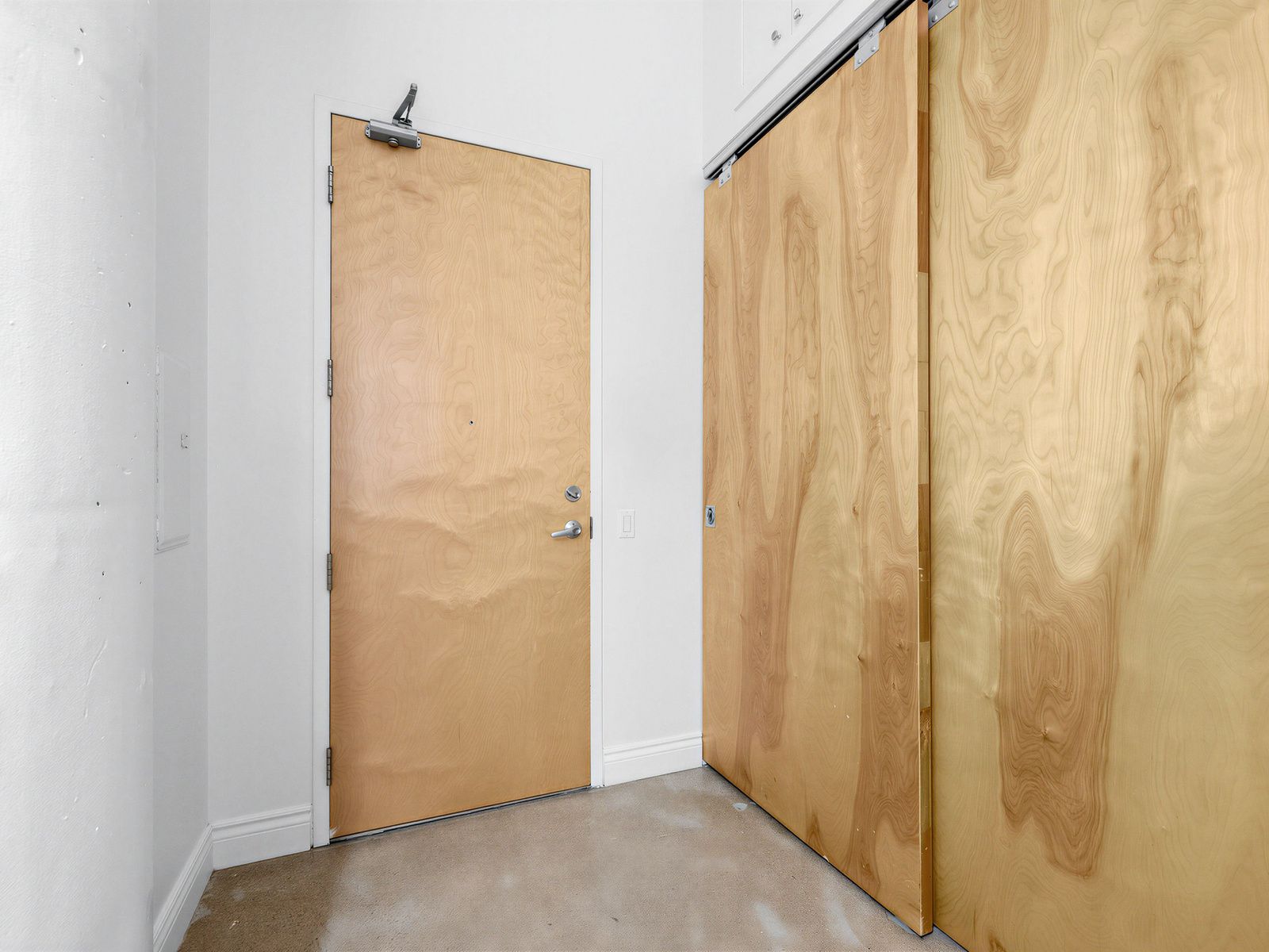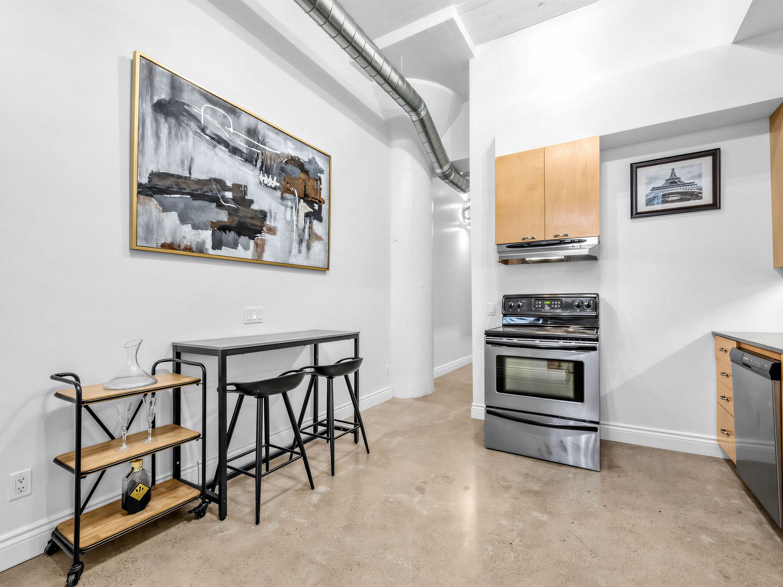 • Polished concrete floors and 12 ft ceilings for a modern feel.