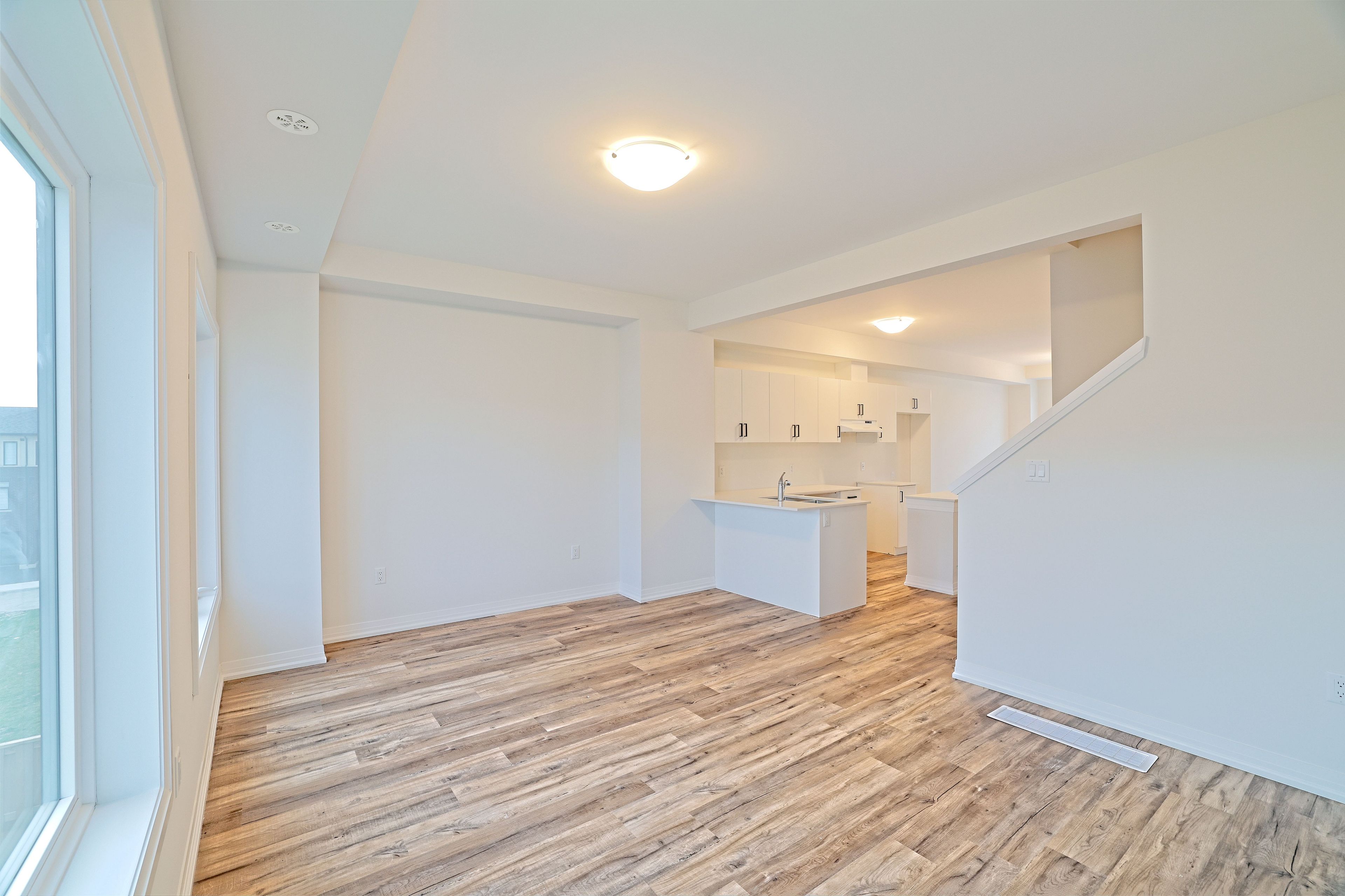 Beautiful brand new modern townhome, never lived in! This spacious 3-storey home features 3 bedrooms, 2 bathrooms, and a bright open layout. The ground level offers a single-car garage with extra parking and a versatile den that can be used as an office, extra living space, or bedroom. The second floor has a modern kitchen that opens to a sun-filled living and dining area, perfect for everyday living or entertaining. The top floor includes three comfortable bedrooms, including a large primary suite with big windows and a walk-in closet. You also get convenient backyard access and direct entry from the garage. Located just minutes from highways 401 and 8, you're only a short drive from major shopping in cambridge and kitchener, as well as employers like toyota canada. This move-in-ready home offers the perfect mix of style, comfort, and convenience.
