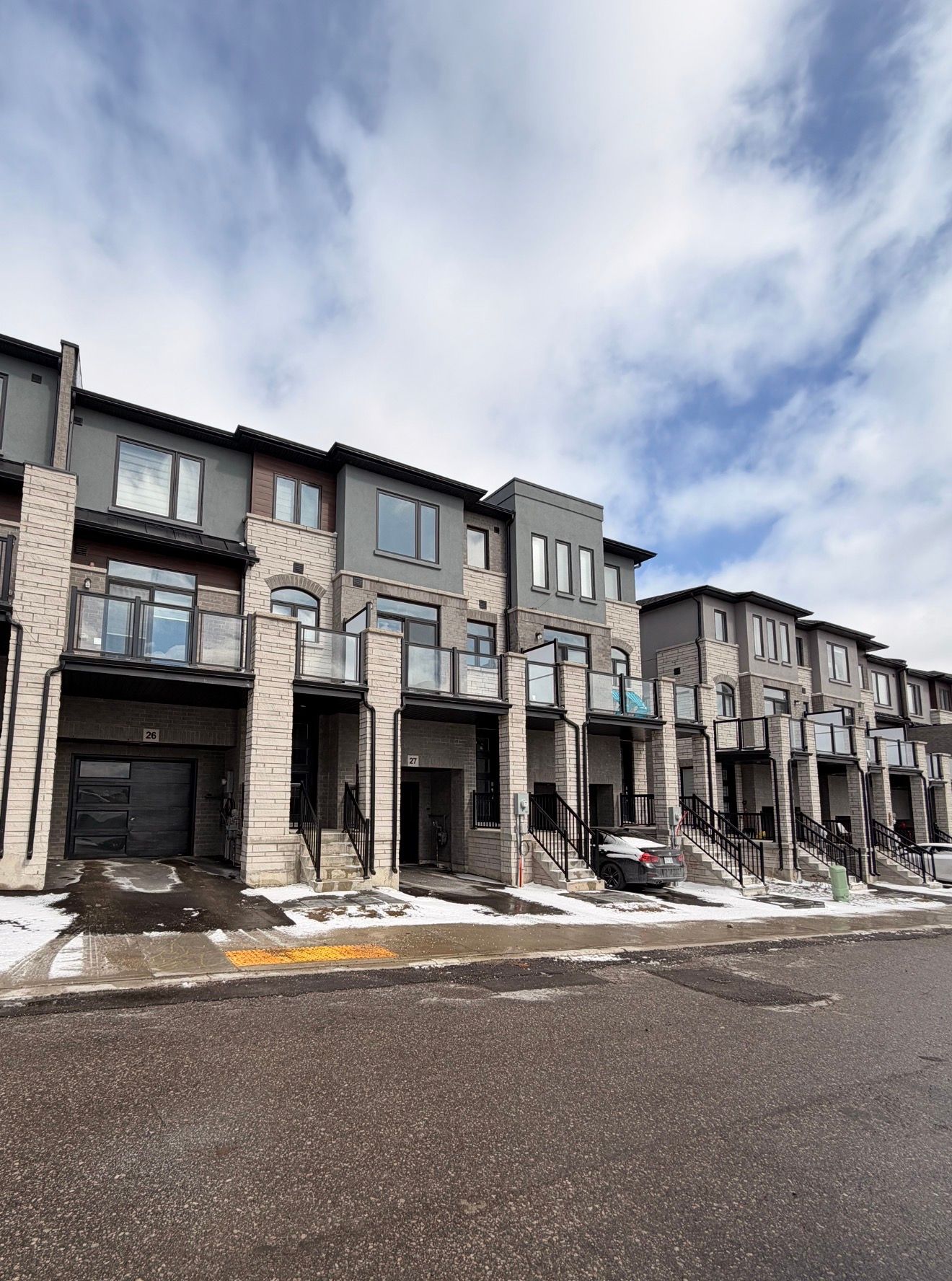 Welcome to this stunning townhome nestled in an upscale community. Featuring a spacious open-concept layout, modern kitchen, quartz countertops throughout the property. Main floor offers a den which can be utilized as home office or entertainment room with powder room. 2nd floor is complete open concept style from the kitchen that includes an eat-in area, upgraded countertops, lots of cabinets, stunning island and access to beautiful balcony, upgraded ss appliances, large living room and additional powder room. 3rd floor offers primary bedroom with upgraded en-suite and walk-in closest along with 2 other decent sized bedrooms. Beautiful exterior makes it look more attractive. Amenities, highway and schools are closed by. Do not miss it!!