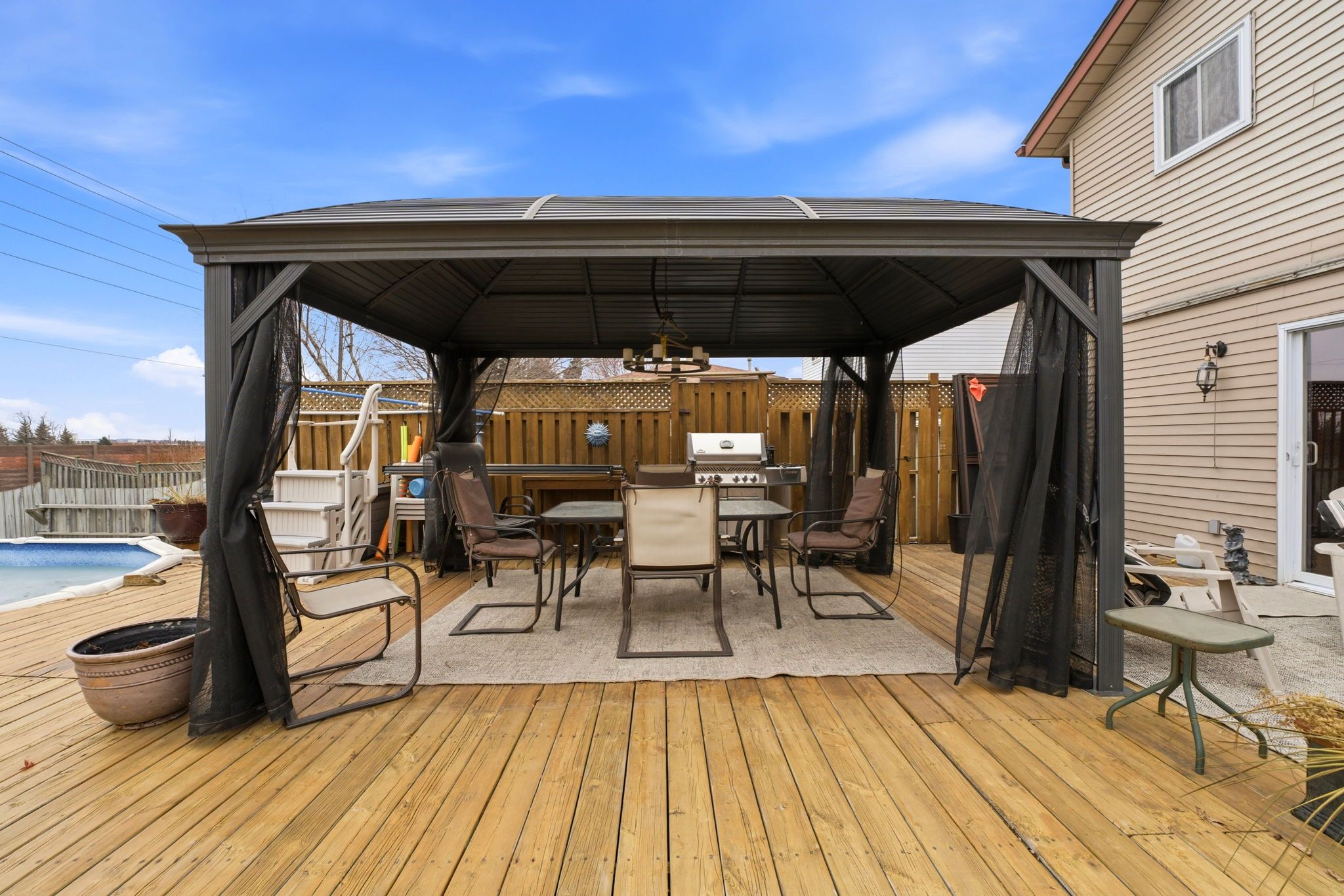 • Massive deck with an above ground pool for summer fun.