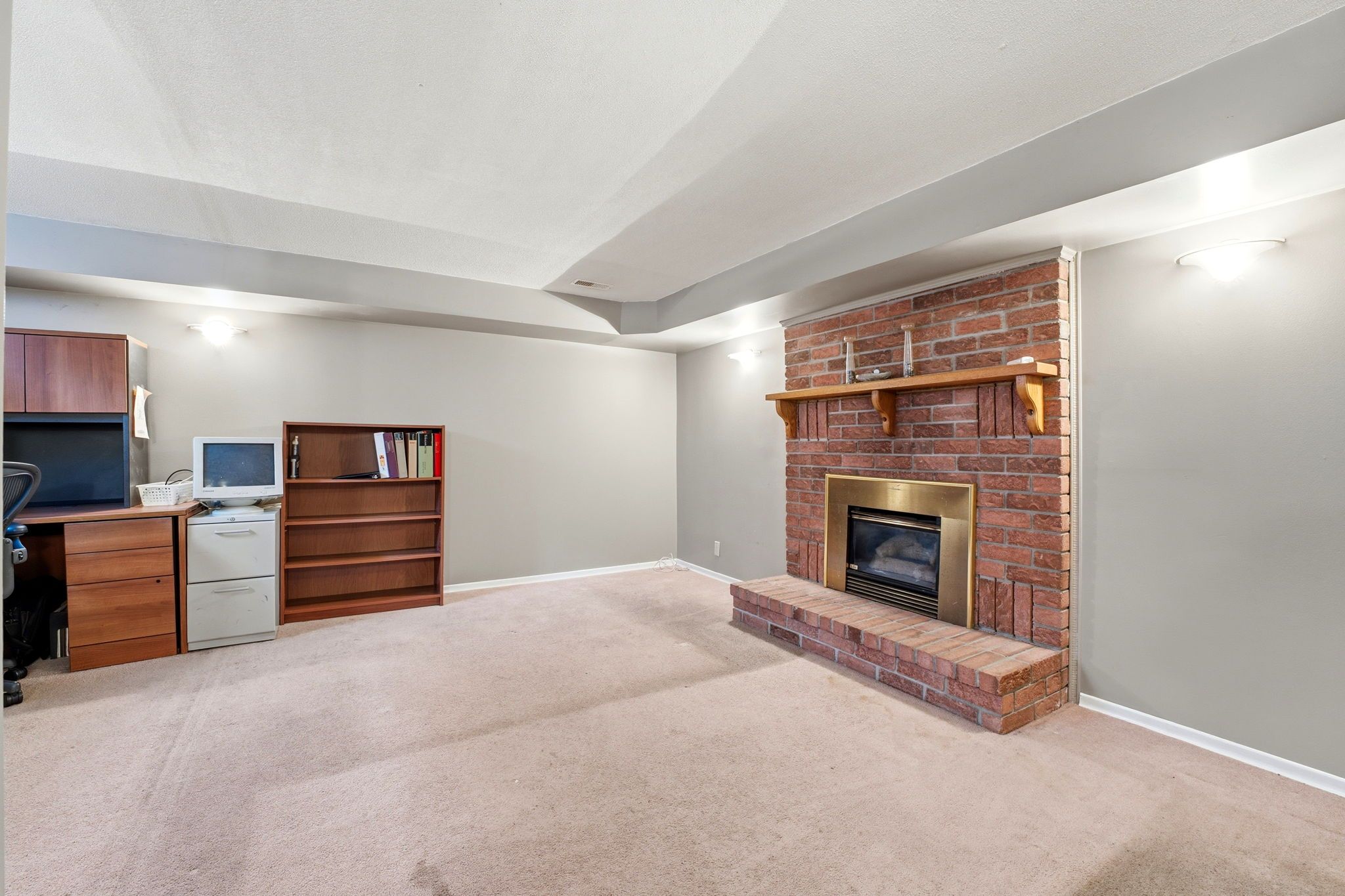 • Finished lower level with a rec room and cozy gas fireplace.