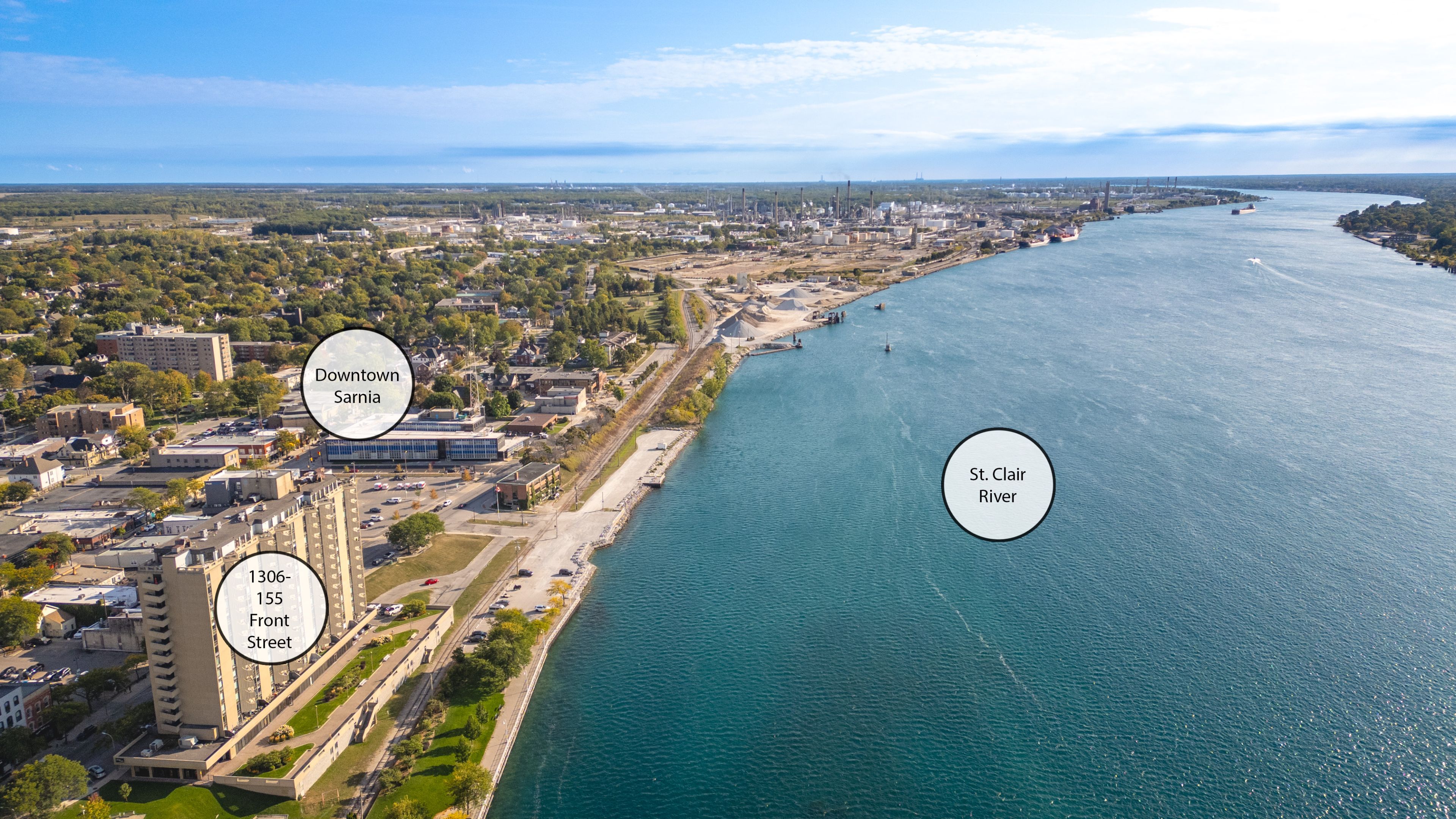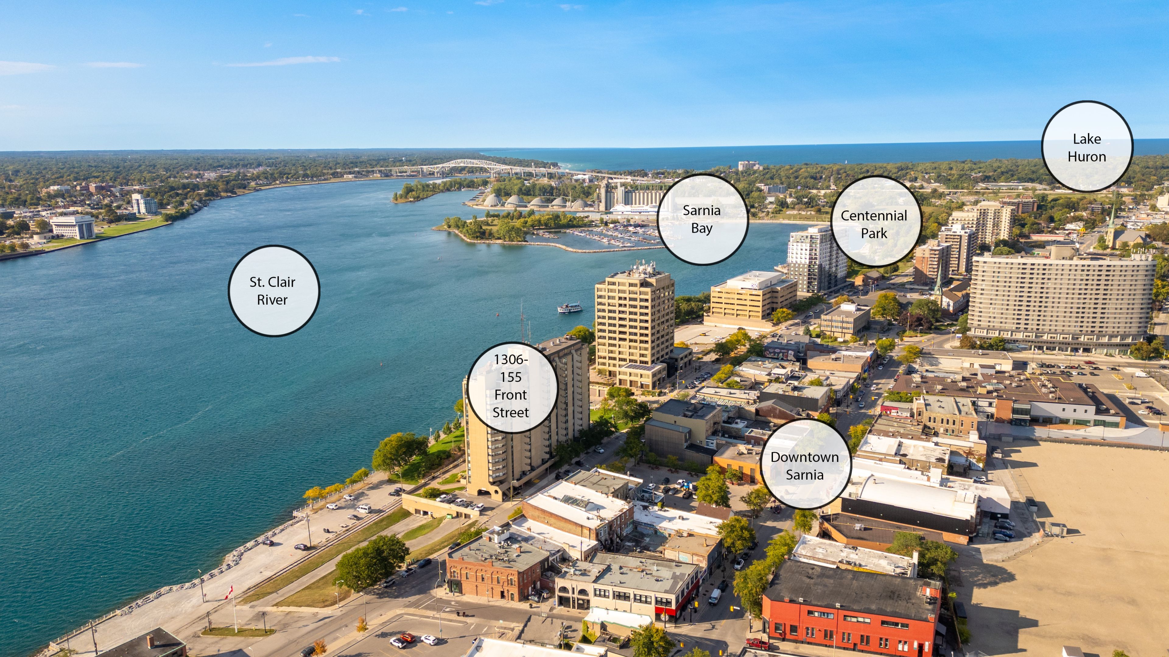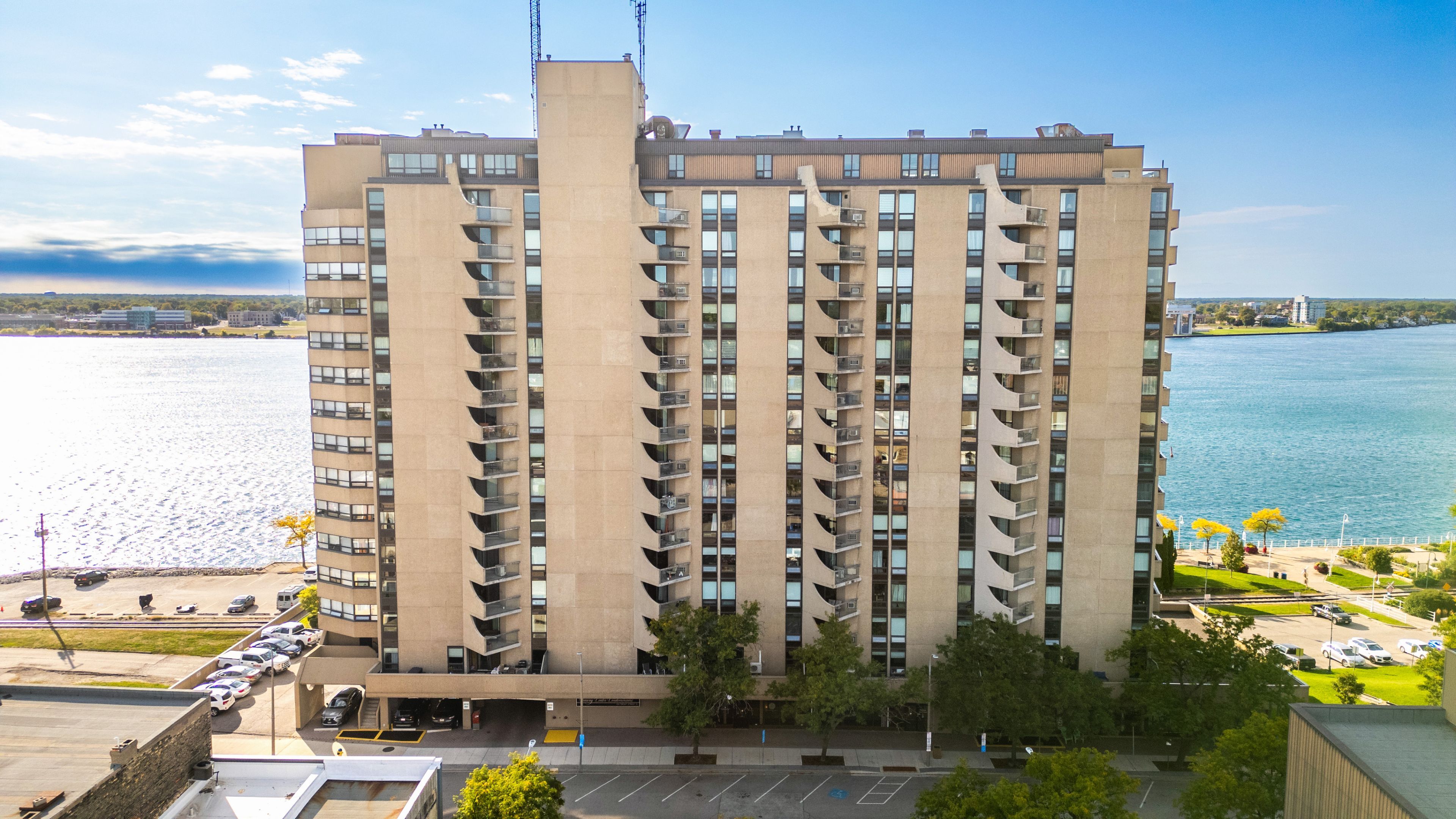 • Executive condo with panoramic views of St. Clair River and Bluewater Bridge.