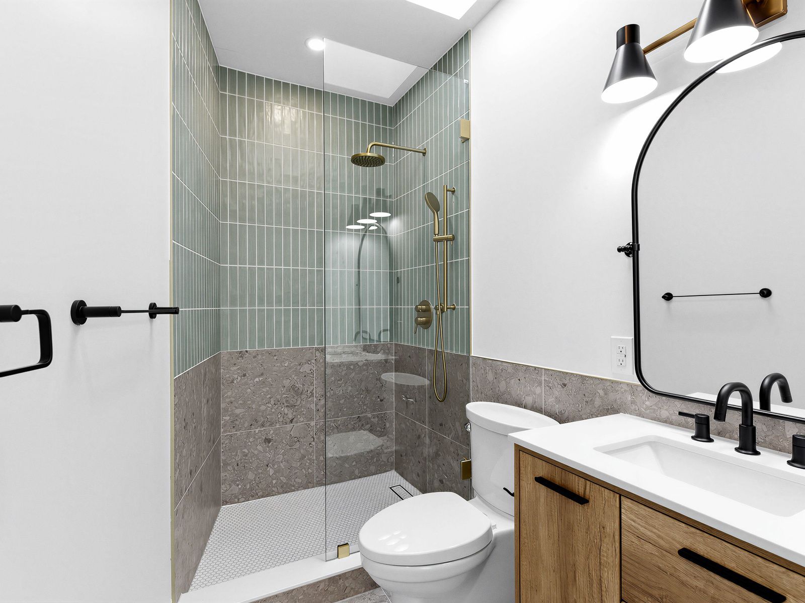 • Spa-inspired bathroom illuminated by a stunning oversized skylight.
