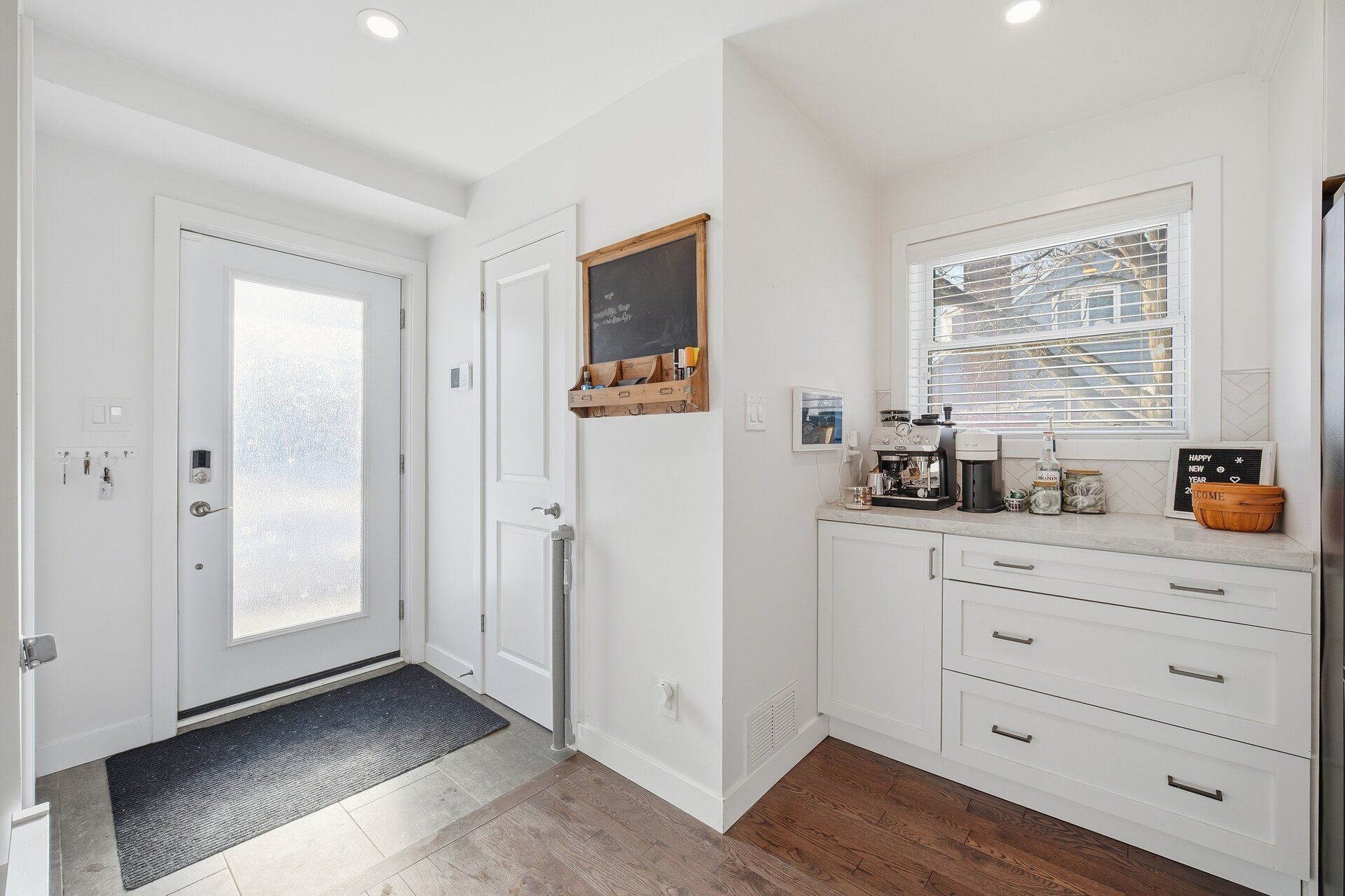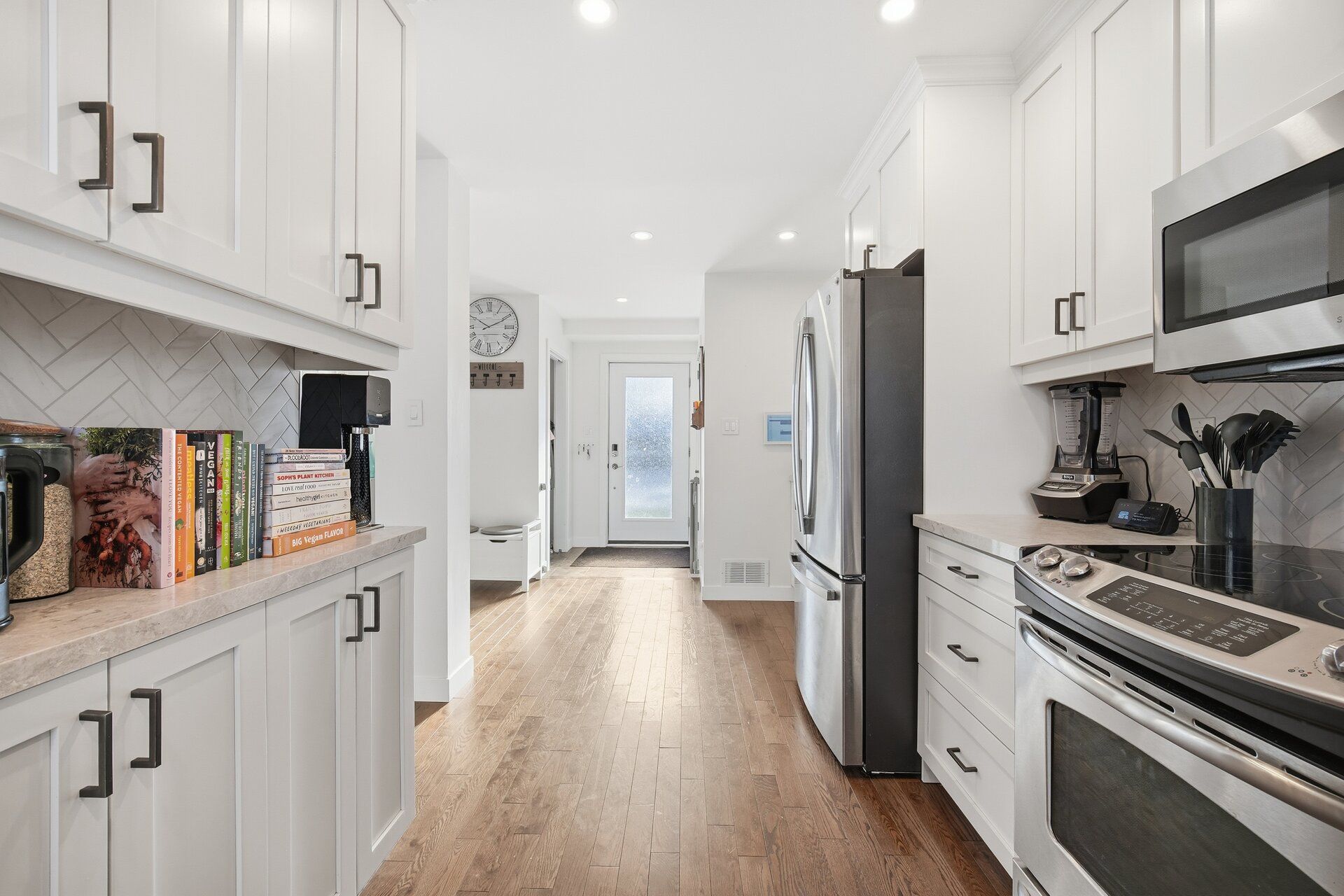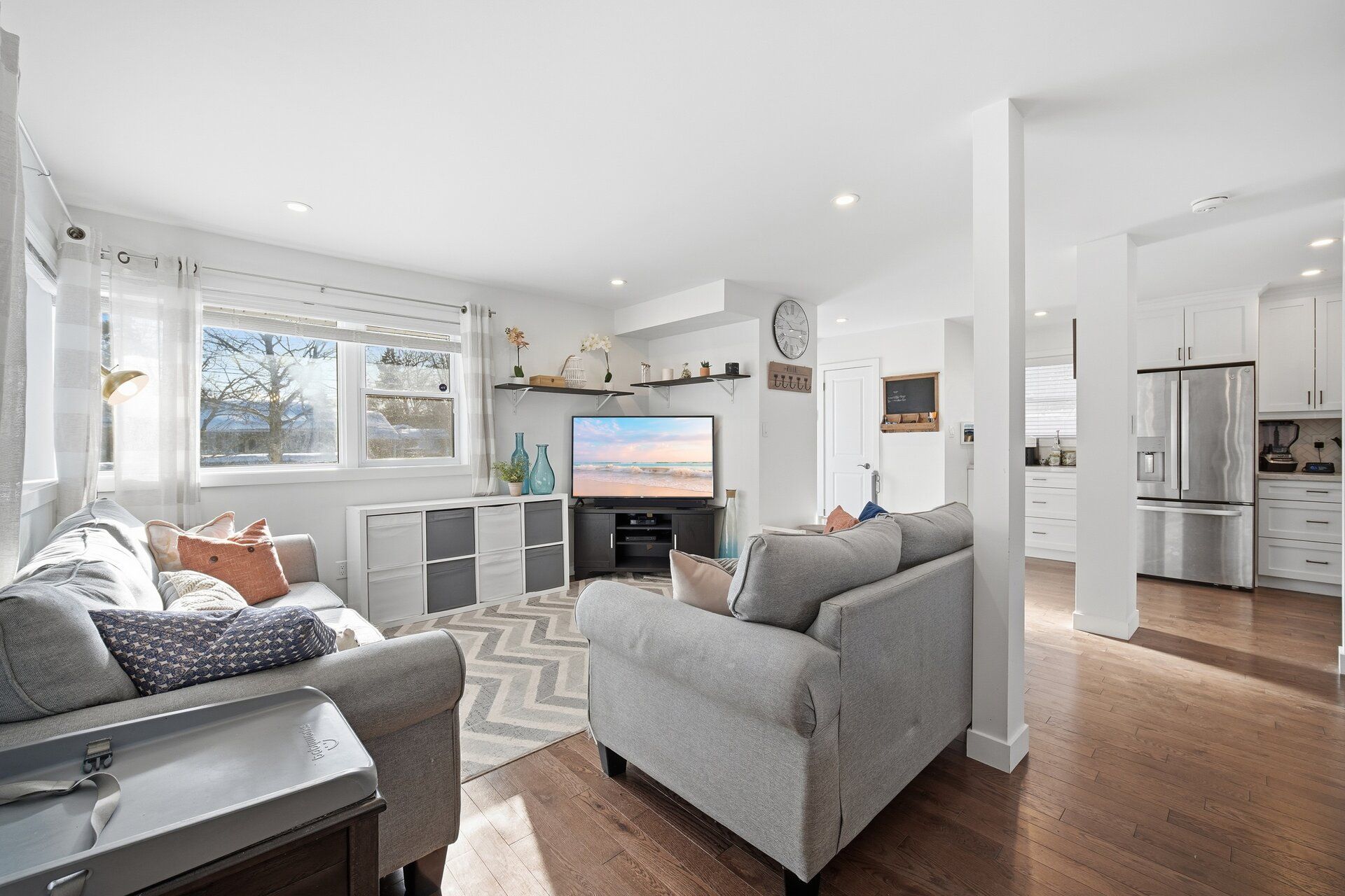 Welcome to 155 heslop - a gorgeous, fully renovated 2-storey home in the heart of milton that truly checks every box. This is the kind of home buyers wait for: thoughtfully upgraded, full of character, & completely move-in ready - no work required. Step inside to an inviting open-concept main floor where warmth & style instantly impress. A convenient front hall closet & powder room welcome you, while rich hardwood floors set the tone for elevated living throughout. The chef-inspired kitchen is a standout, featuring quartz countertops, an elegant herringbone backsplash, abundant cabinetry, & a dedicated coffee bar with loads of storage. & large windows let natural light pour in, creating a bright cheerful space you'll love starting your day in. The spacious family room feels open & airy thanks to beautiful corner windows, while the dining area adds serious charm with shiplap walls that deliver that coveted rustic-modern farmhouse feel. Upstairs, you'll find 2 generously sized bedrooms, both with deep closets & large windows. Back downstairs, a glass-panel back door offers easy access to the backyard seamlessly connecting indoor & outdoor living. A fully finished lower level expands your living space with a large family room - perfect for cozy movie nights - plus 2 additional bedrooms, ideal for kids, guests, or home offices. Plus a large laundry room with plenty of storage. Outside this home shines. The oversized lot is exceptional, measuring 70 ft across the front & approx 90 x 90 x 90 on the remaining sides - a rare find. The backyard is tranquil & private. A new deck (2023) & gazebo (2023) create the perfect setting for summer bbqs & family gatherings, while the fully fenced yard (2021) is ideal for kids & fur babies to roam freely. All of this in a prime, family-friendly neighbourhood, just steps to downtown milton, close to shopping, restaurants, schools, parks, & with easy access to highways. You'll love this home & want it for your own!