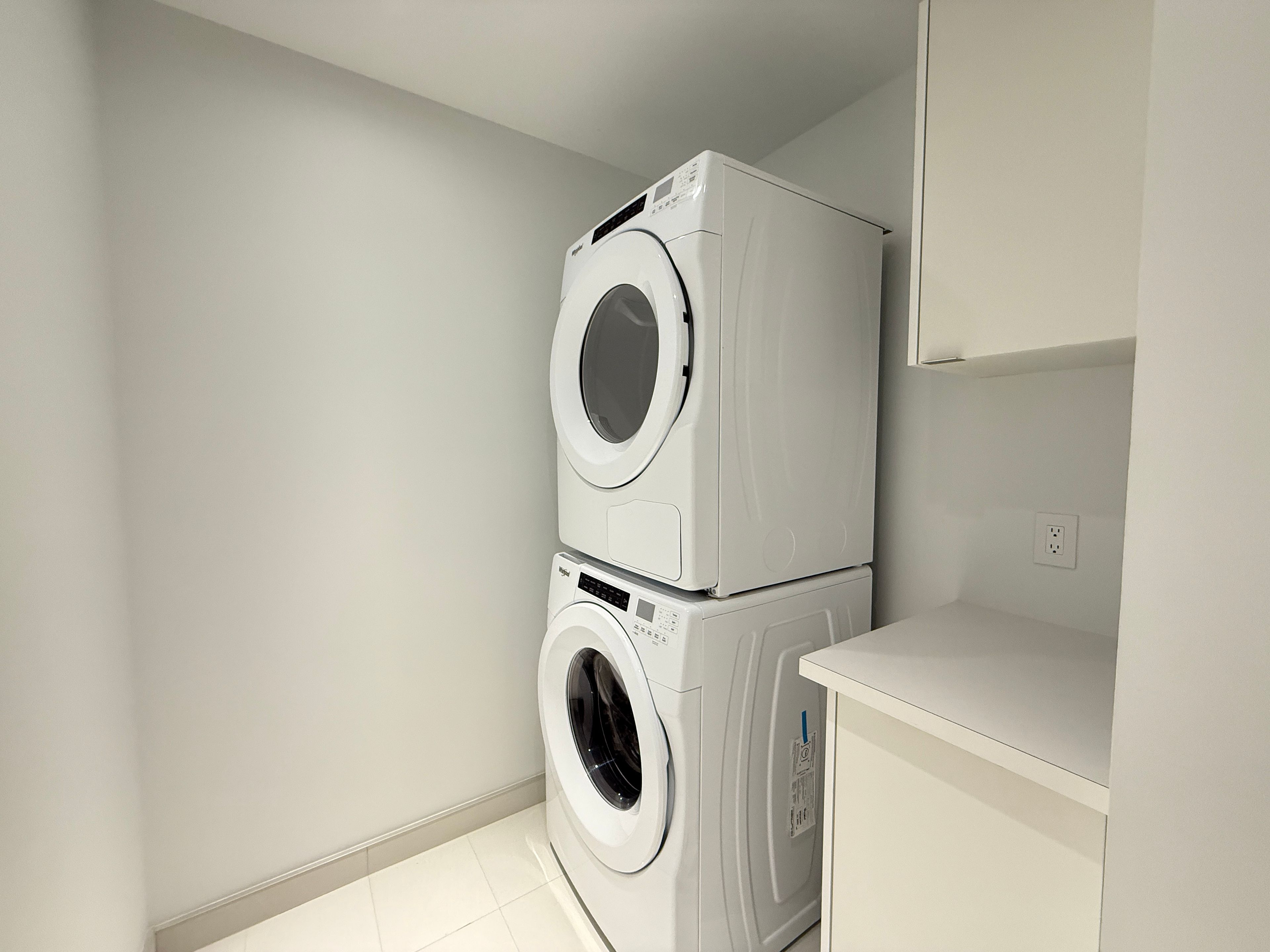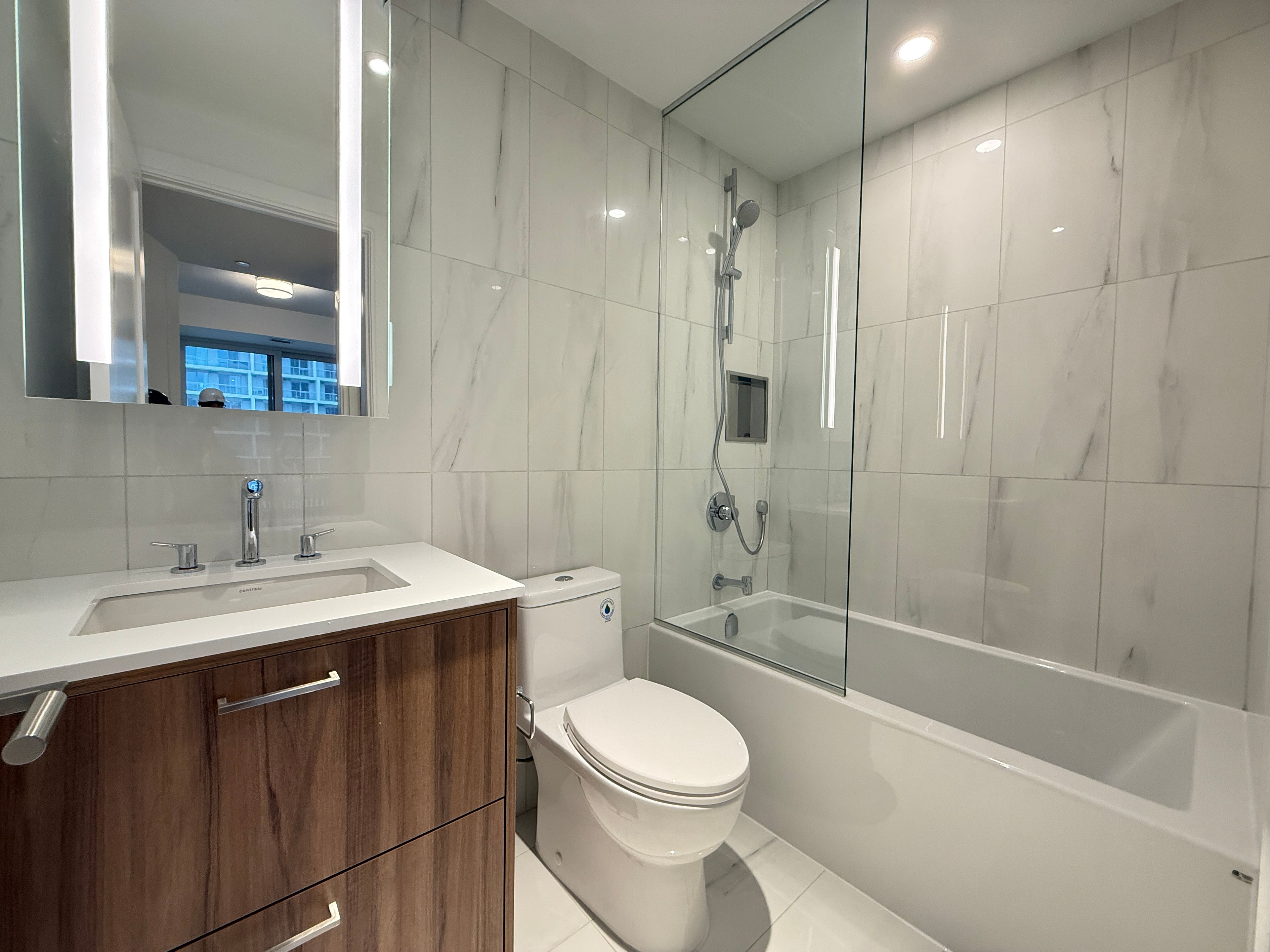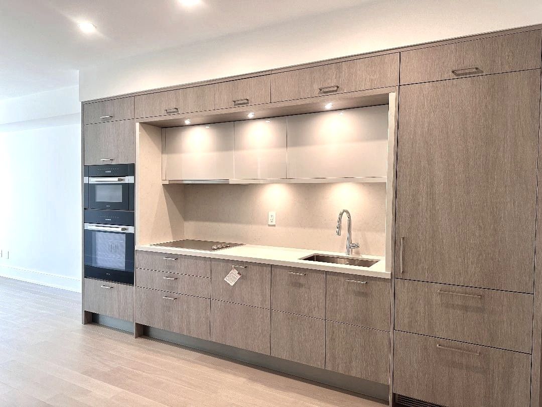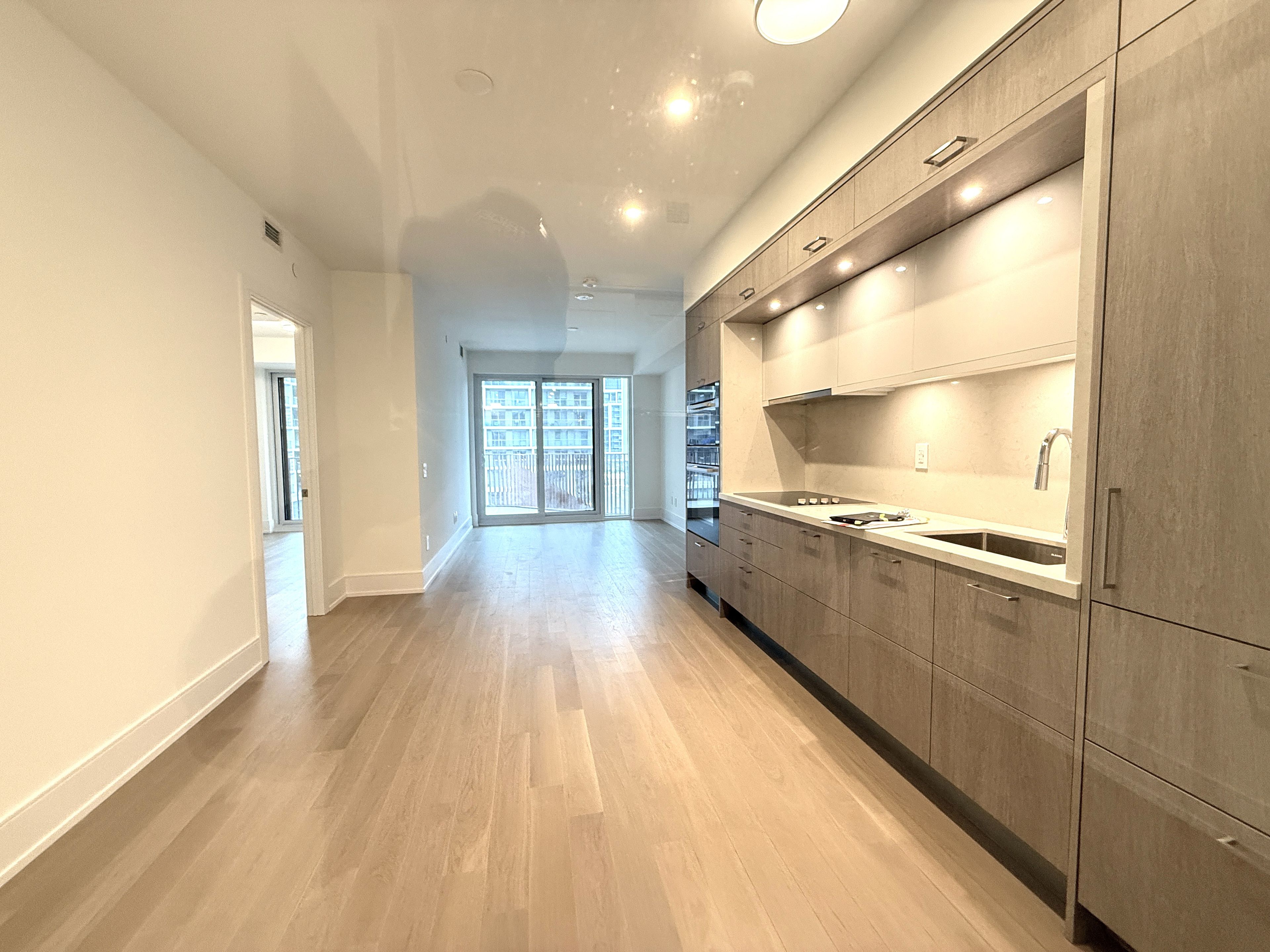Welcome to aqualuna - tridel's prestigious waterfront residence! Experience luxury living at its finest in this 2-bedroom, 2-bathroom condo suite, offering 840sf of elegantly designed living space with soaring 9-foot ceilings. The residence features hardwood flooring throughout, a premium kitchen equipped with built-in miele appliances, stone countertops and soft close cabinetry. The spacious living area seamlessly extends to a private terrace, where you can enjoy breathtaking views of the bayside community. The primary bedroom is a true retreat, boasting floor-to-ceiling windows, a walk-in closet, a luxurious 4-piece ensuite, and direct access to the balcony. The second bedroom is generously sized with a large closet. A large laundry room provides additional storage for added convenience. Exclusive amenities: residents of aqualuna will have access to an array of high-end amenities, including a state-of-the-art fitness center, a serene yoga studio, an elegant entertainment lounge, a versatile multi-purpose lounge, and two grand lobbies. Relax by the outdoor pool and terrace while taking in stunning lake views. Situated just steps from lake ontario, george brown college, and queens quay, this prime location offers easy access to the dvp, path network, downtown offices, and the vibrant leslieville community. Aaa non-smoking tenants only. No pets. The tenant is responsible for paying all utilities.