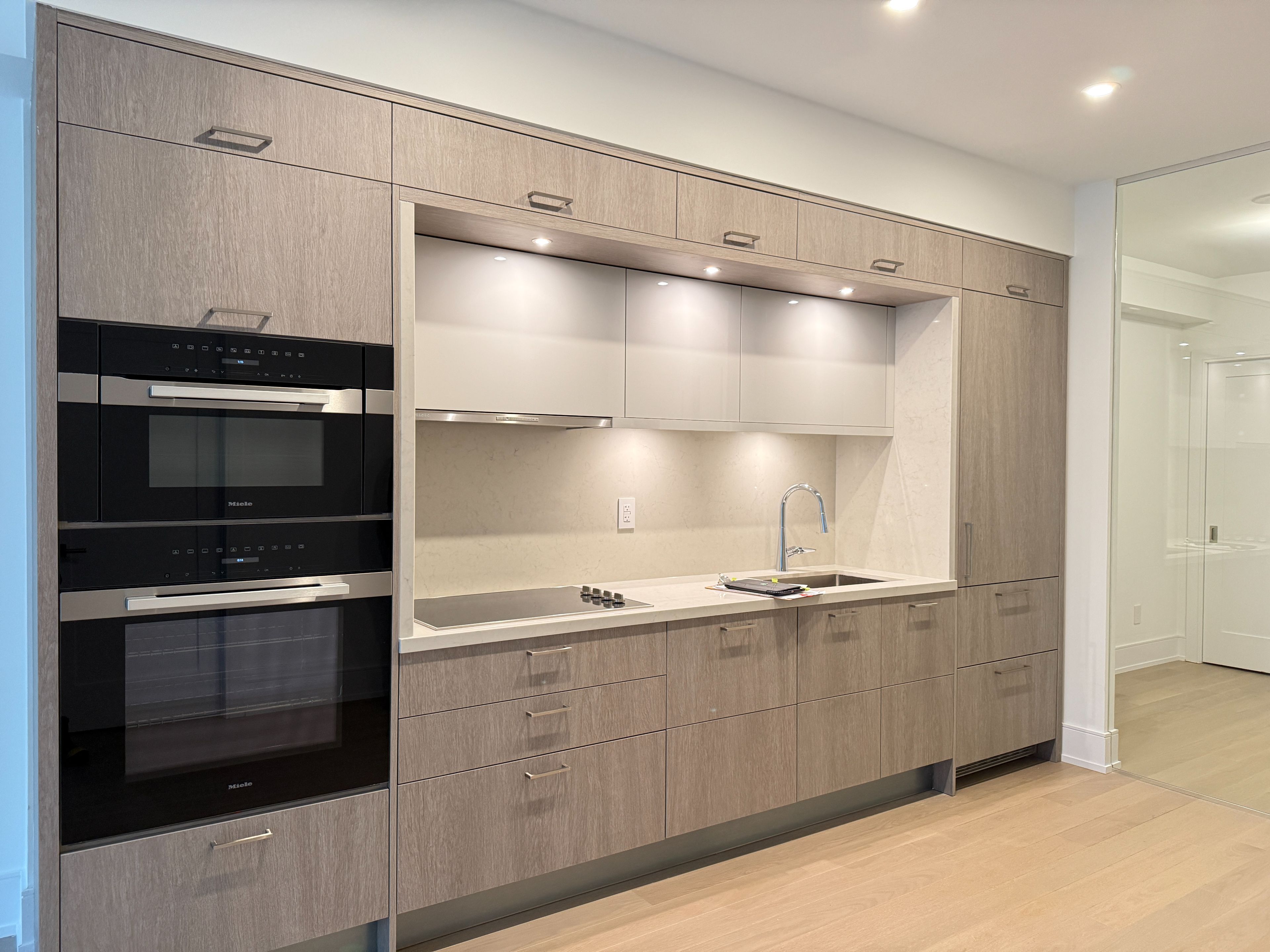 • Gourmet kitchen with built-in Miele appliances and stone countertops.