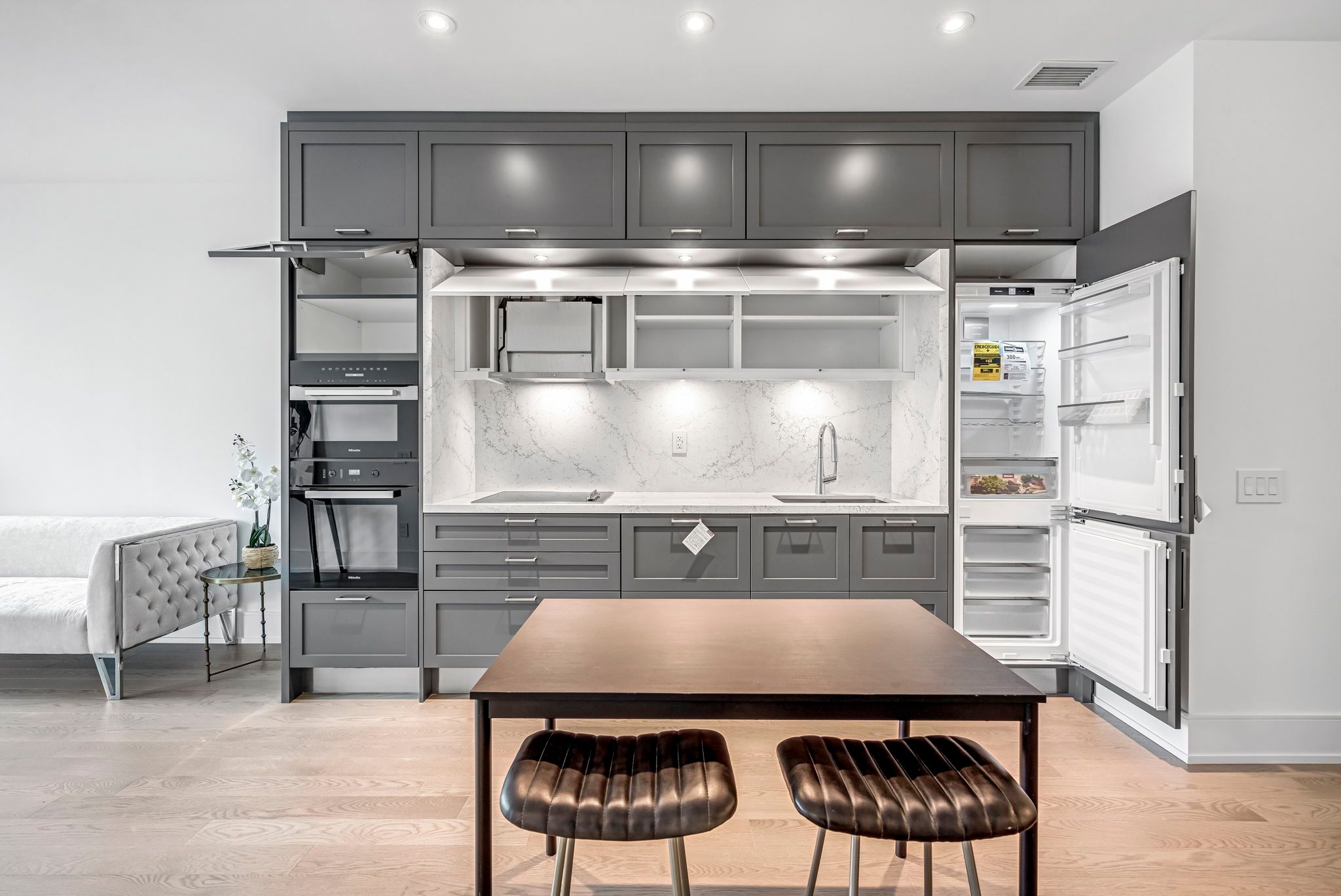 Welcome to aqualuna, toronto's iconic waterfront address. This brand new never lived in1bedroom plus den, 2 bath suite offers 809 sq ft of thoughtfully designed living space complemented by two private balconies with stunning city and lake views. Step inside to soaring9ft ceilings and engineered white oak hardwood flooring throughout. The open concept layout is both spacious and practical, blending style with functionality. The designer kitchen features irpinia cabinetry in a sleek two-tone finish, quartz countertops with a matching backsplash, under-cabinet lighting, a blanco undermount sink with hansgrohe faucet, and fully integrated miele appliances including fridge, cooktop, wall oven, speed oven, dishwasher, and hood fan. A whirlpool stacked washer and dryer add everyday convenience. The primary bedroom offers its own private balcony, custom closets with organizers, and a spa-inspired ensuite finished with sivec marble, large-format porcelain tile, and premium hansgrohe fixtures. A second full bathroom is equally stylish with graphite marble and matte black hex tile, providing comfort for residents and guests alike. Nestled within a 13 acre master planned community, aqualuna combines striking architecture with a serene lakeside setting. Smart home technology via tridel connect elevates the living experience, offering modern convenience and peace of mind. This is waterfront luxury at its finest, designed for those who value elegance, comfort, and lifestyle.***this is not anassignment sale***unit fully closed***parking available from tridel for $85,000. Ev parking available for $105,000.