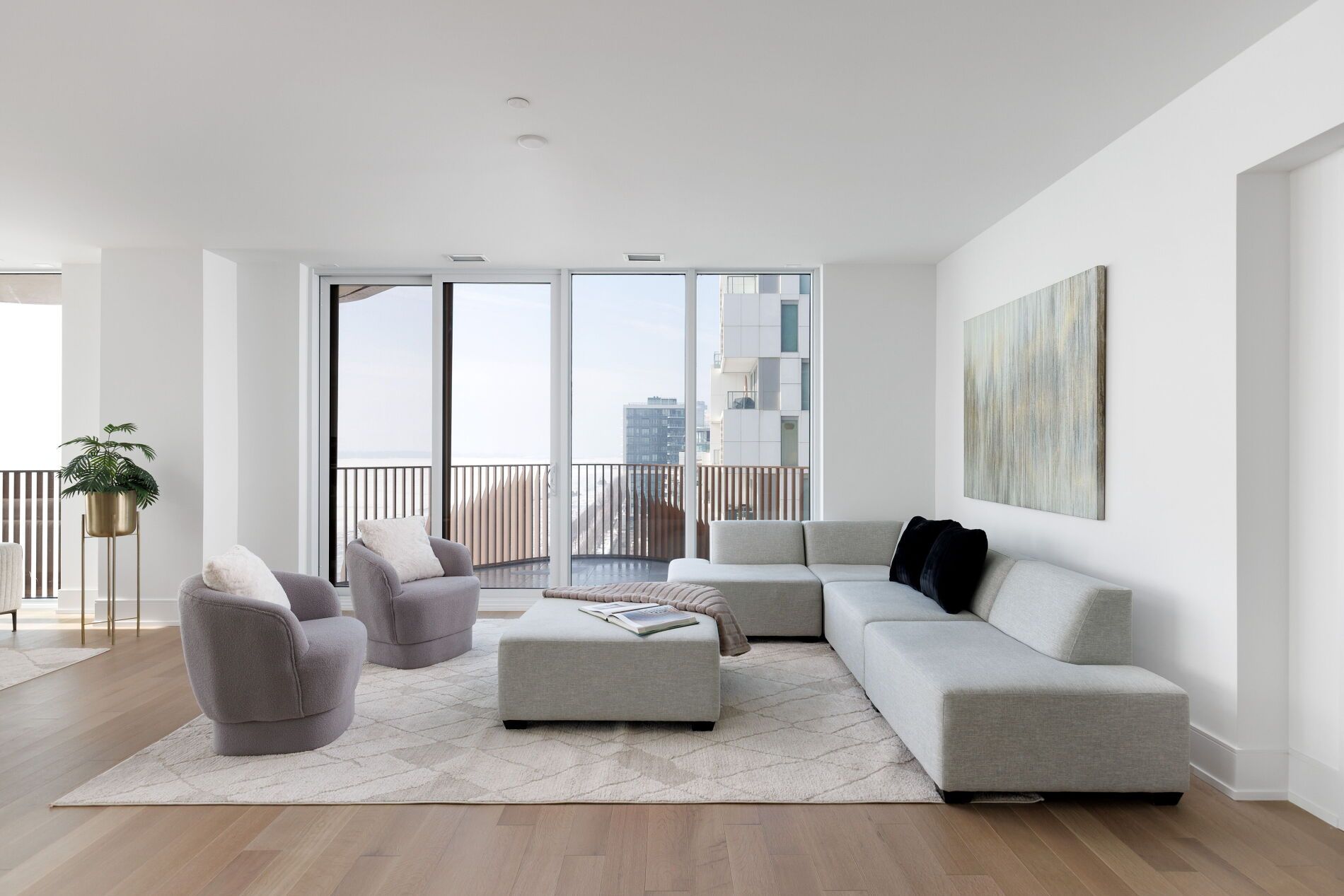 • Luxury amenities include pool, sauna, fitness studios, and party rooms.