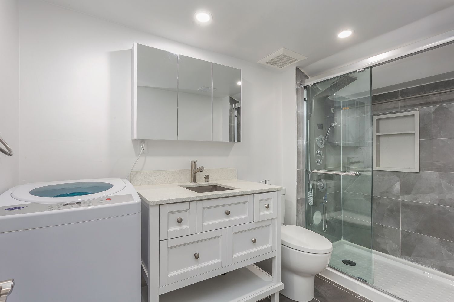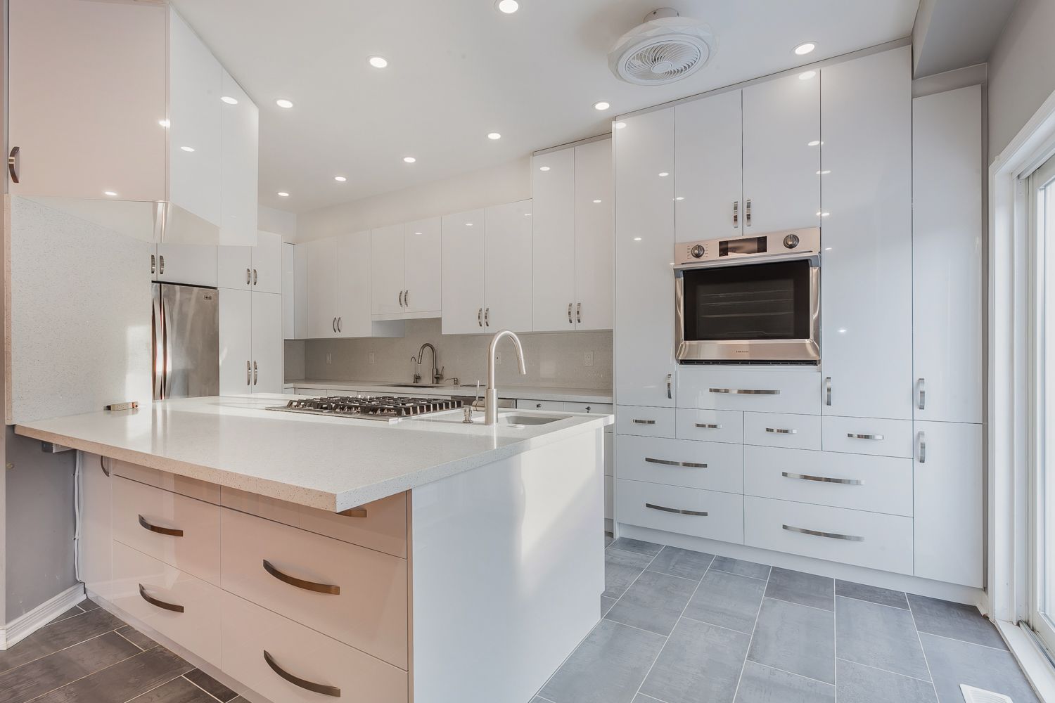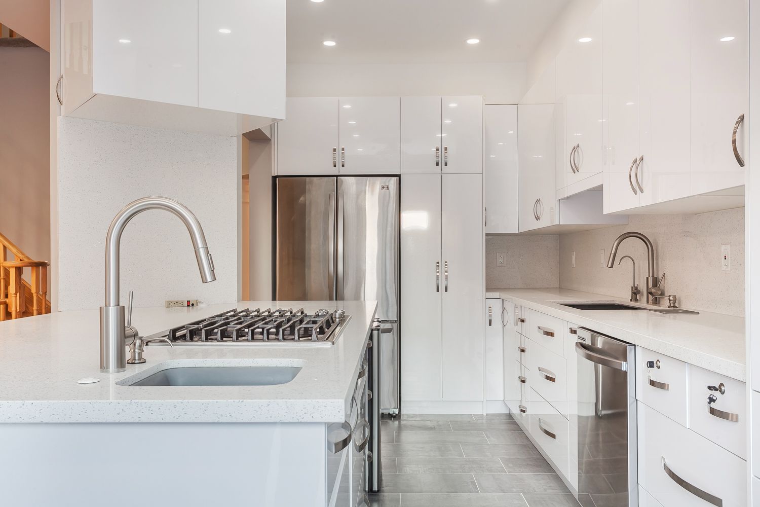 • Upgraded kitchen with custom cabinetry and gas cooktop for modern living.