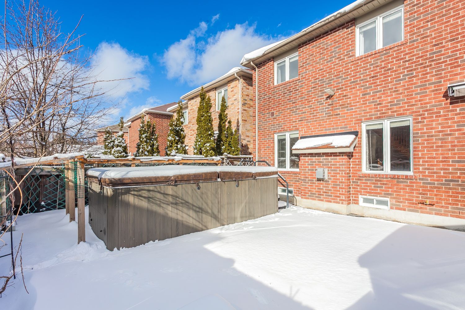 • Professionally landscaped backyard with swim spa and remote-controlled awning.