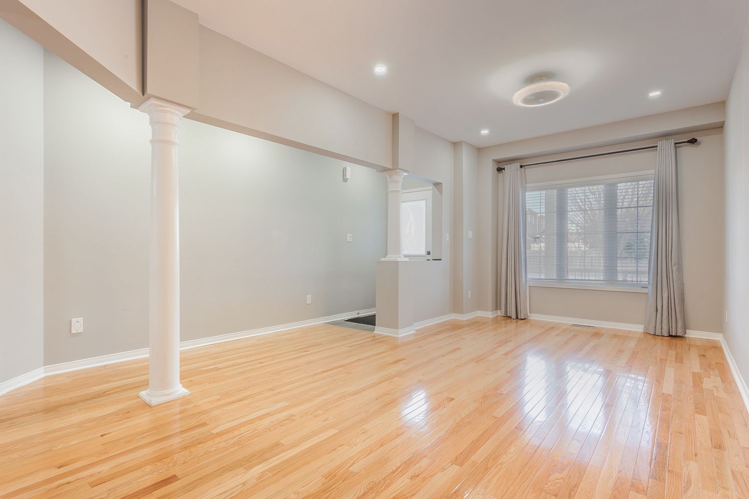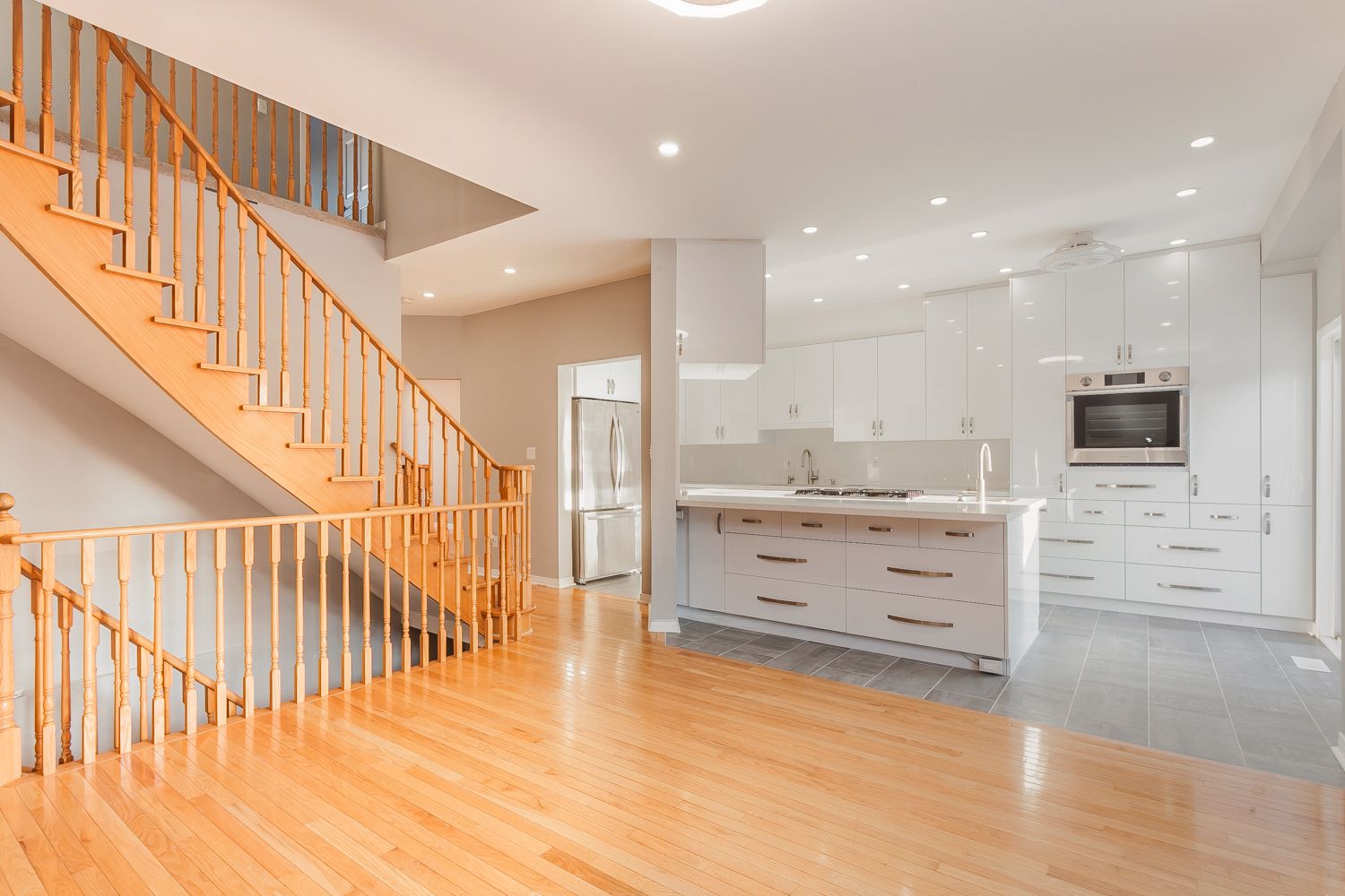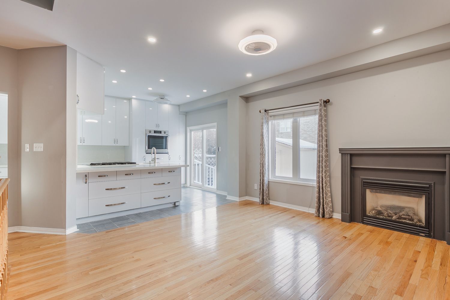 • Open-concept main floor with 9-ft ceilings and hardwood flooring.