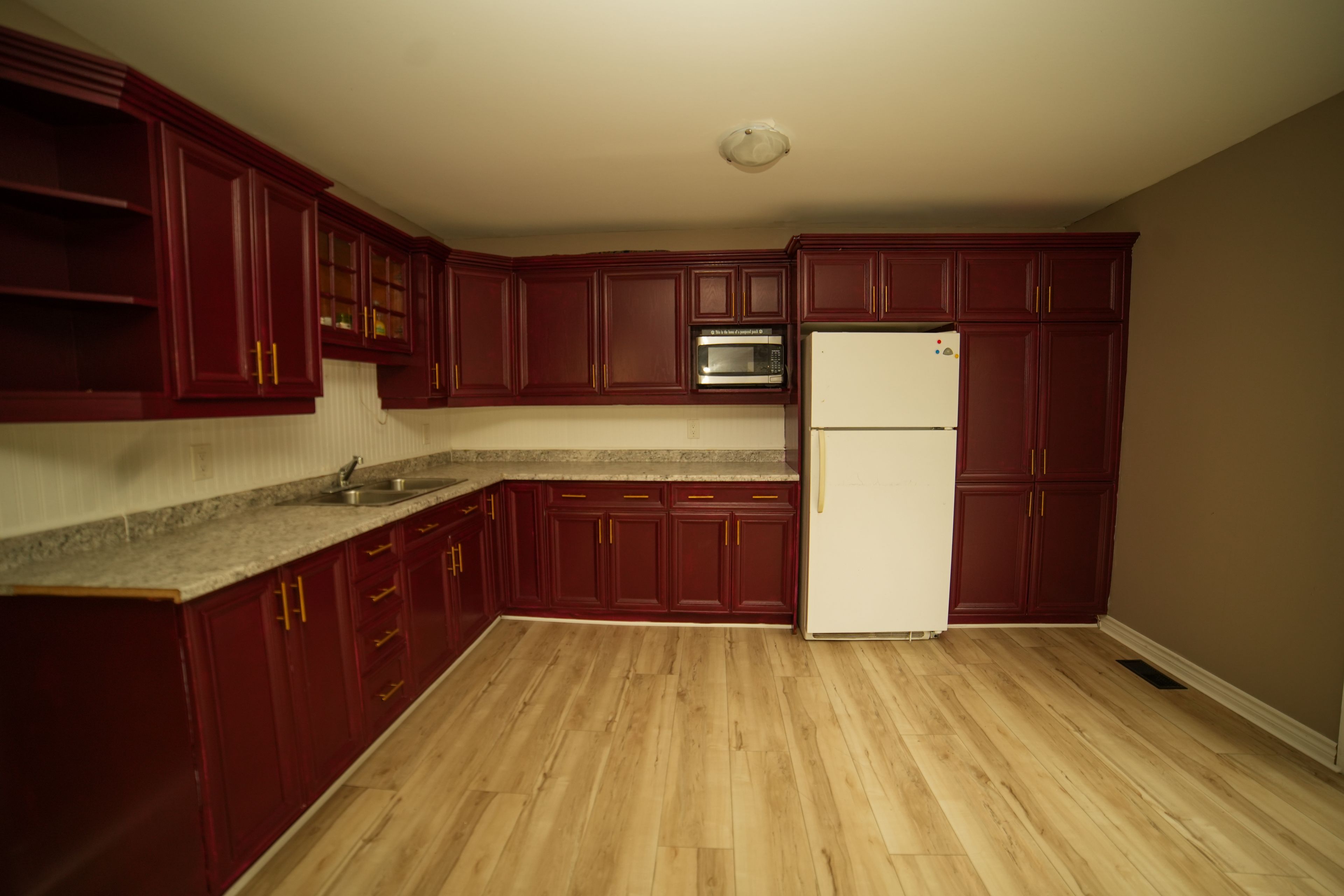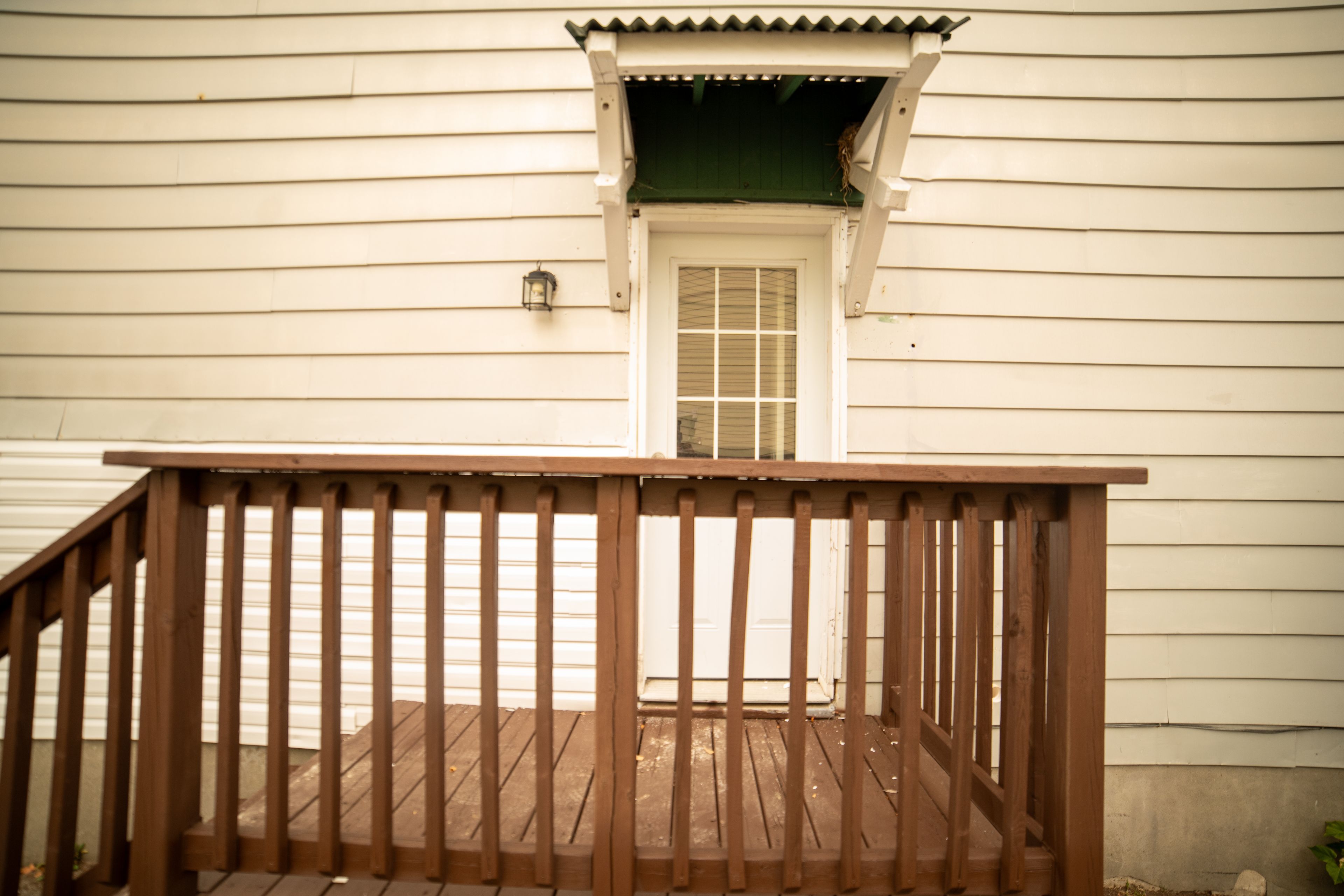 • Updated eat-in kitchen with patio doors leading to a deck.