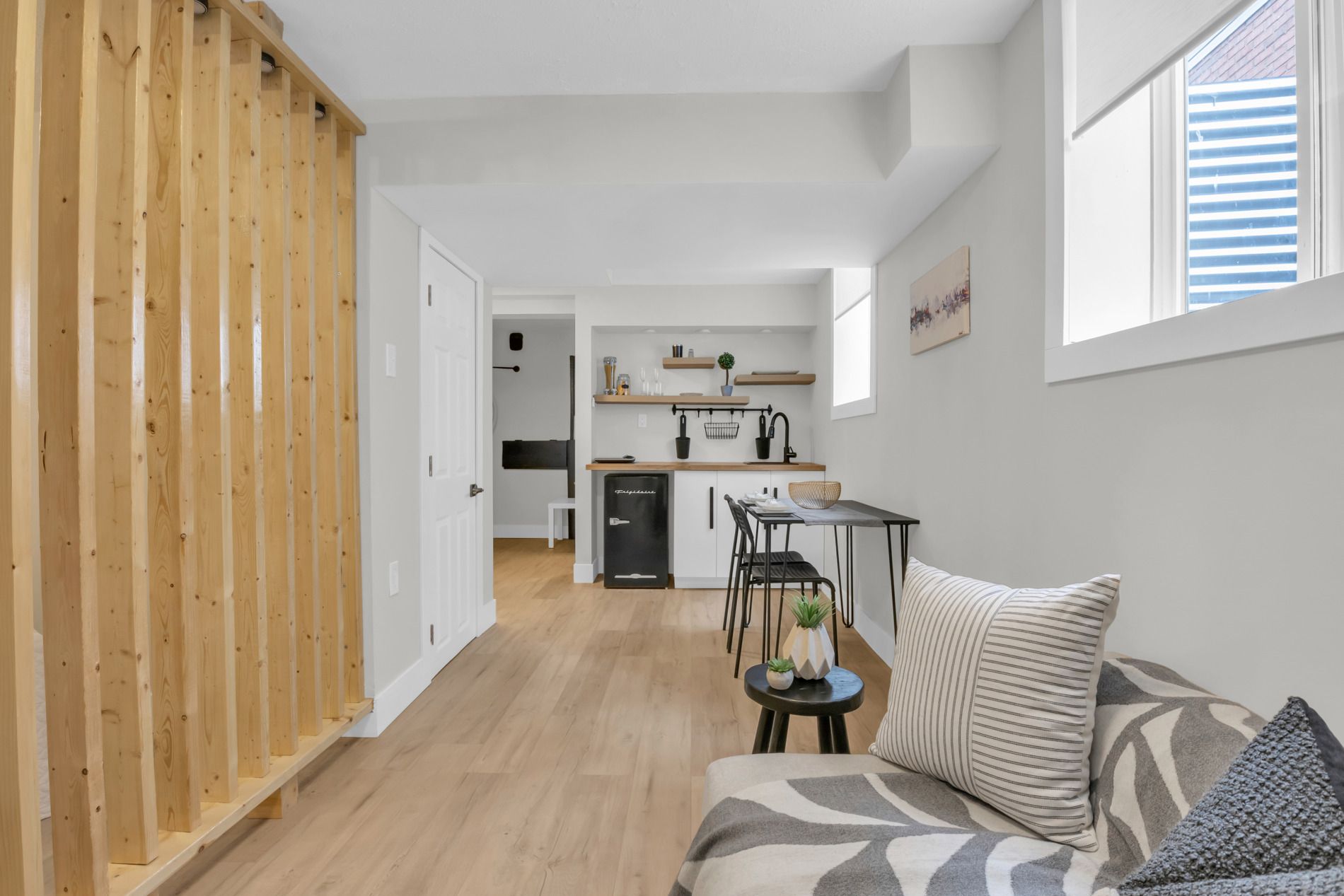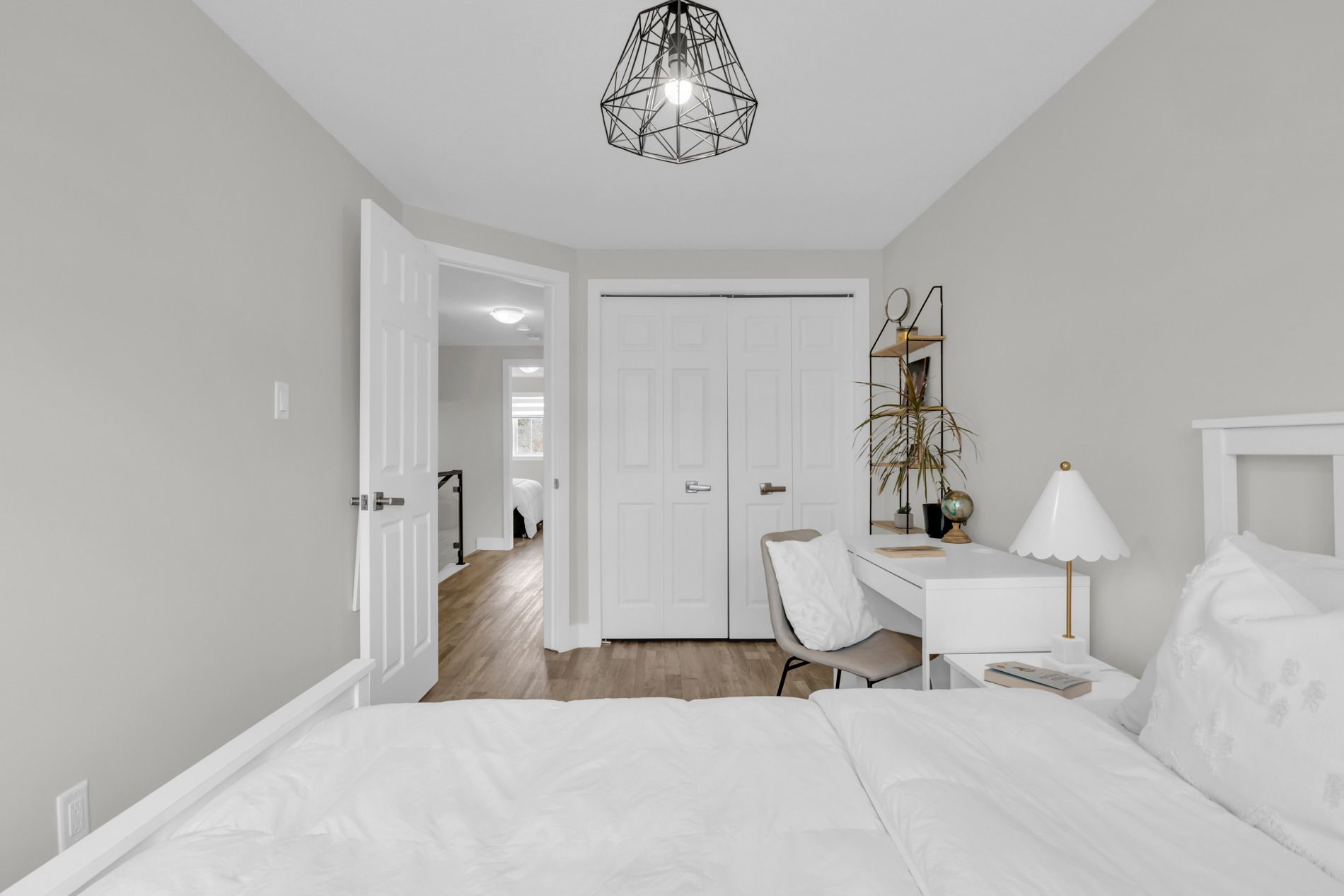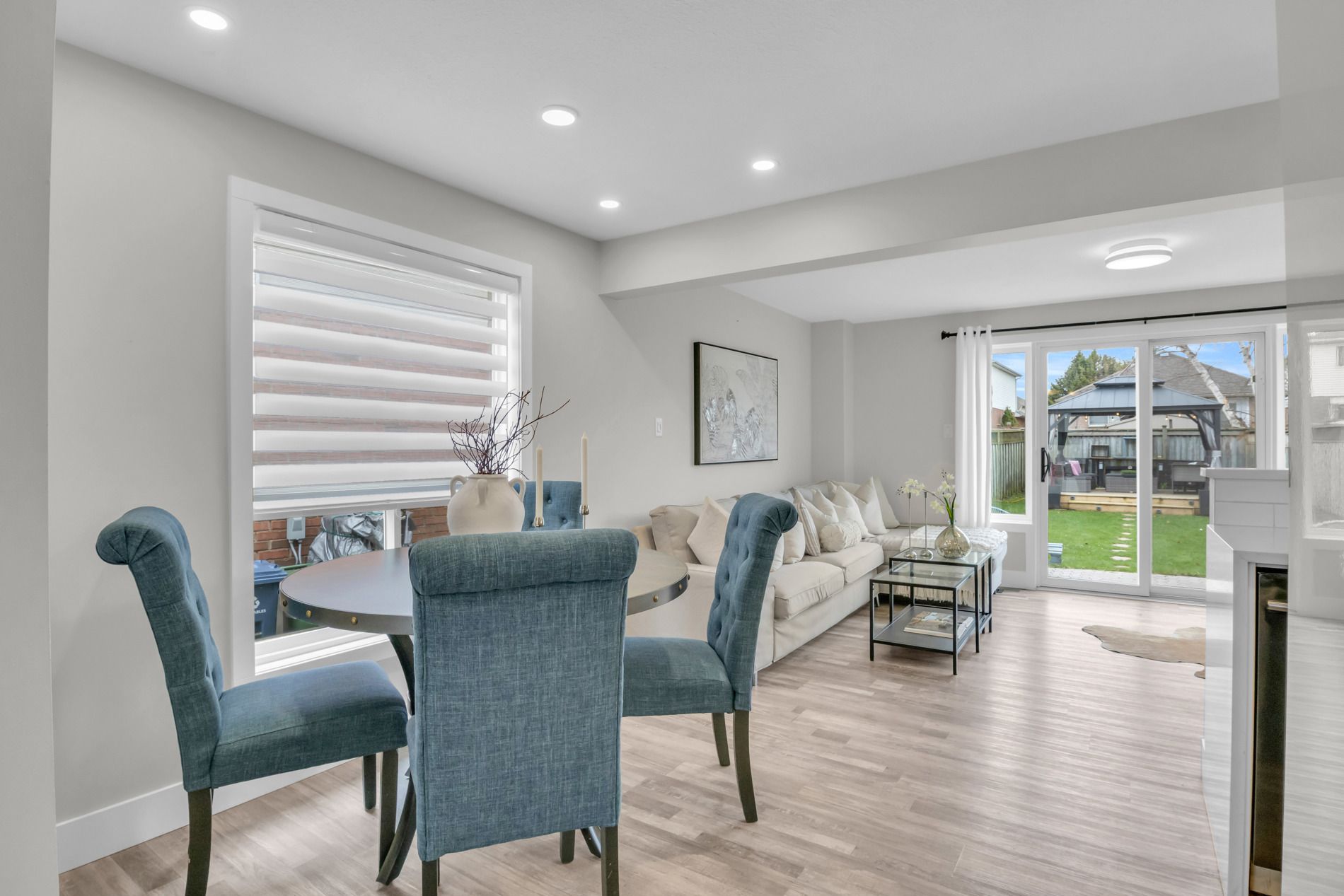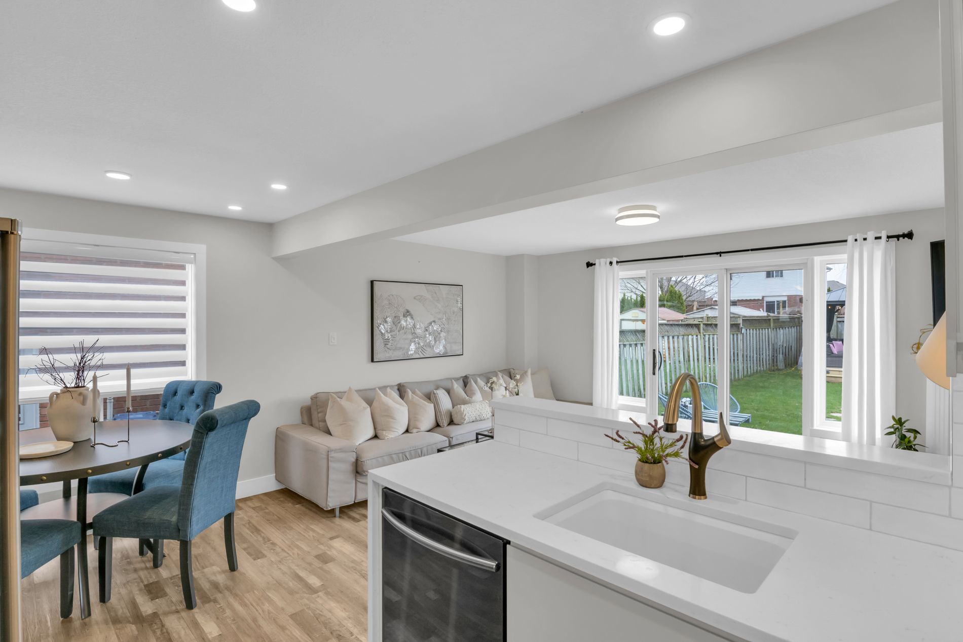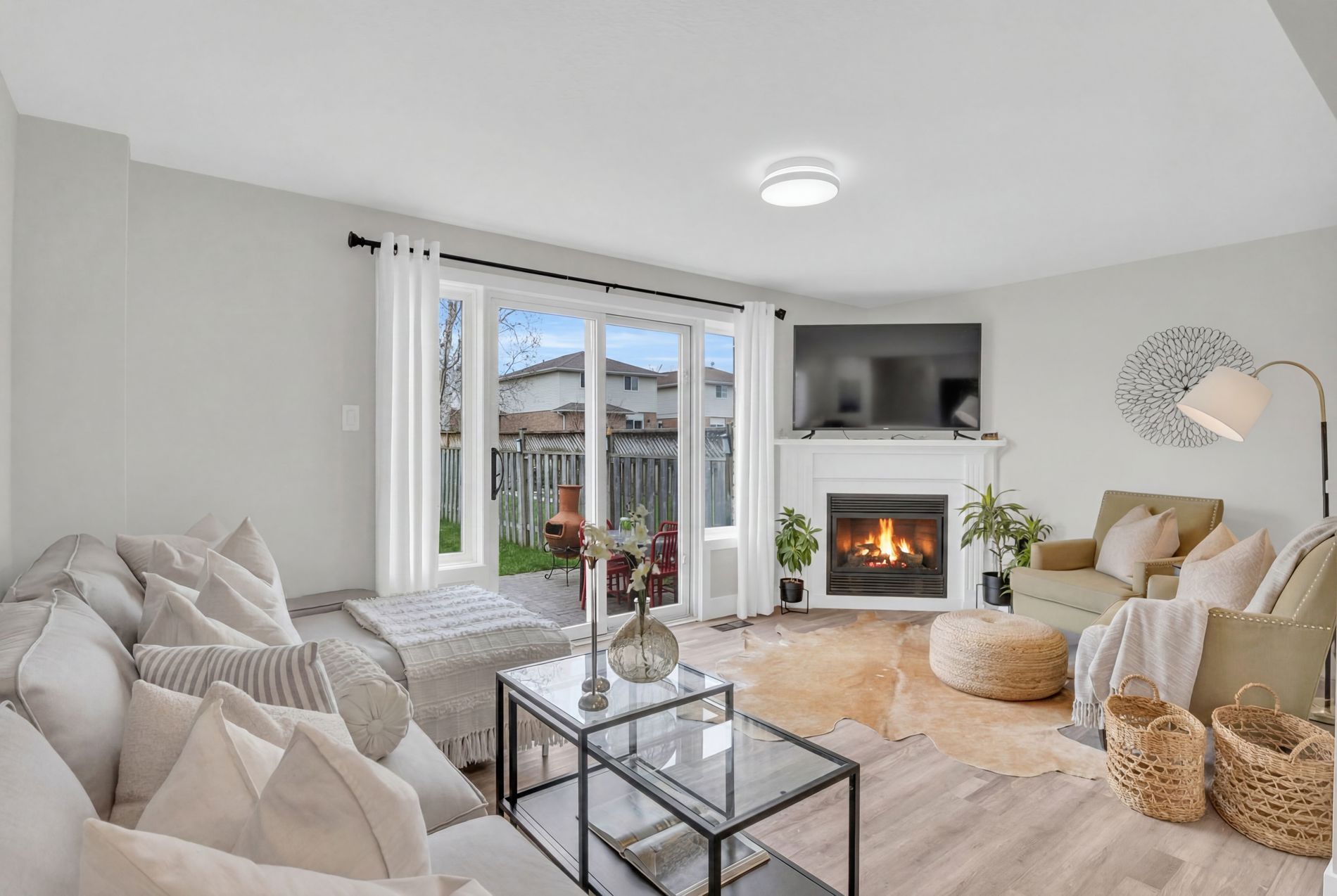Welcome to this beautifully upgraded semi-detached home in guelph's sought-after west end, offering a lifestyle defined by comfort, convenience, and modern family living. Ideally located within walking distance to nearby schools, parks, and quick access to highway 6 for commuters, costco, this home blends thoughtful upgrades with a modern design. The exterior has been meaningfully improved with a newer roof, upgraded fiberglass front entry door, modern garage door, and a fully insulated garage. Inside, the home features a bright and cohesive design with durable luxury vinyl flooring throughout, updated trim and baseboards, modern lighting, and a warm neutral palette that enhances natural light, anchored by a beautiful gas fireplace. The main level is designed for effortless flow between living, dining, and kitchen spaces, creating an inviting environment for both family life and entertaining. At the heart of the home is a modern european-style kitchen, thoughtfully designed with high-gloss cabinetry, waterfall quartz countertops, a sleek designer backsplash, and premium black stainless steel appliances including an induction cooktop and built-in oven. The clean lines, minimalist finishes, and efficient layout create a space that is as functional as it is visually striking-perfect for everyday meals or hosting. A modern cast iron railing with glass staircase leads you upstairs, the bedrooms offer comfortable retreats with updated doors, ample closet space, modern hardware, zebra blinds, and usb-integrated outlets for added convenience. The bathrooms have been fully renovated with spa-inspired finishes including glass showers, rain shower systems, floating vanities, and elegant tile work, bringing a boutique hotel feel into daily living. The stylish finished basement extends the living space with excellent versatility, ideal for a rec room, home office, gym, or guest suite, complete with a kitchenette for added functionality. This home is simply move-in ready!