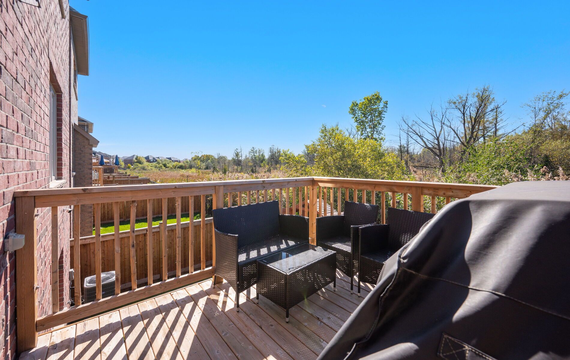 Loaded with upgrades and finished with no expense spared, this stunning 4-year-old detached home sits on a rare ravine walk-out lot and features a bright, spacious finished basement with 5" hardwood floors. Nestled on a quiet, family-friendly street in bradford's most desirable "summerlyn" neighbourhood, this is the ideal home for buyers seeking premium finishes, a private lot, and true move-in-ready living. The open-concept main floor features 8' solid interior doors, 7" hardwood flooring throughout; including kitchen, pot lights, and a generous family room with a waffled ceiling, gas fireplace, custom built-ins, and oversized windows framing the ravine. The chef's kitchen offers a large island with seating, extended upgraded cabinetry, stainless steel appliances, and a walk-out to the deck - perfect for everyday family meals and entertaining with a view. Upstairs, you'll find four bright and spacious bedrooms, convenient upper-level laundry, and a private primary suite with a walk-in closet and upgraded 5-piece ensuite overlooking the trees. The finished walk-out basement is a standout feature, offering a bright rec room, bedroom or office, wet bar, modern 3-piece bath, and flexible space for extended family, guests, or work-from-home needs. The fully fenced backyard adds privacy and function, while additional perks include a no-sidewalk lot for extra driveway parking, stylish décor, and close proximity to parks, schools, transit, and all of bradford's amenities. If you've been waiting for a move-up home with premium finishes, a ravine lot, and a finished walk-out basement, this is a must-see.