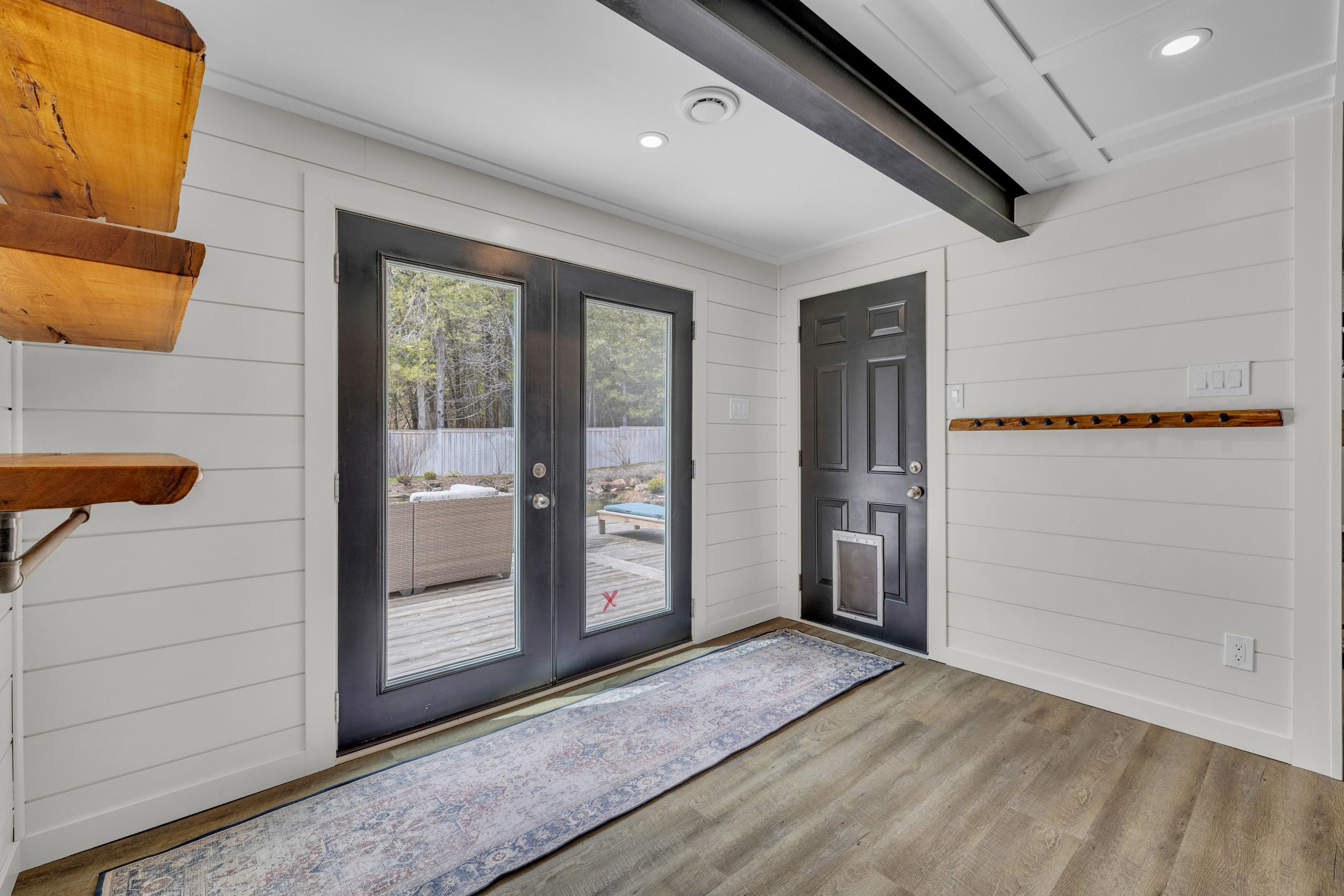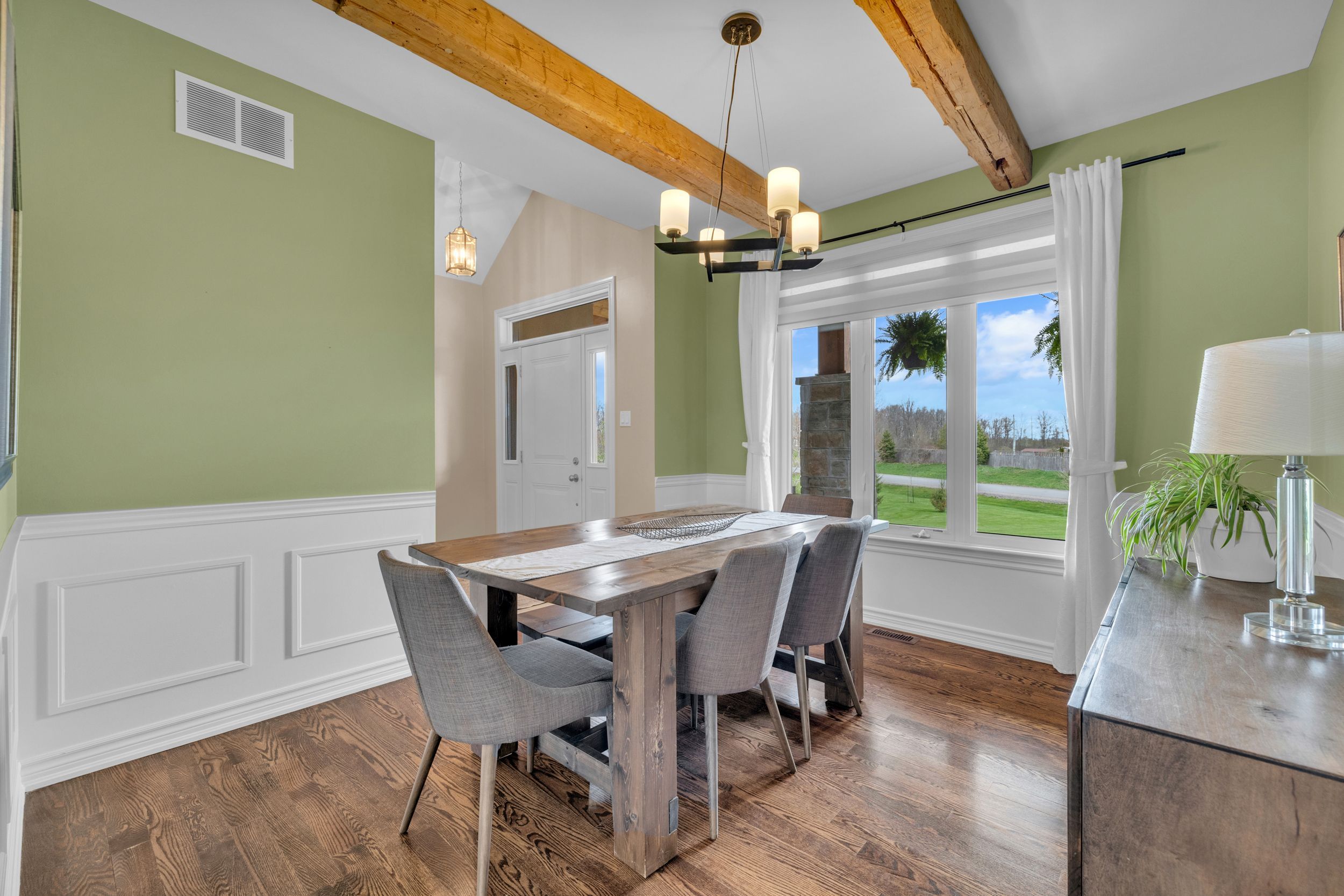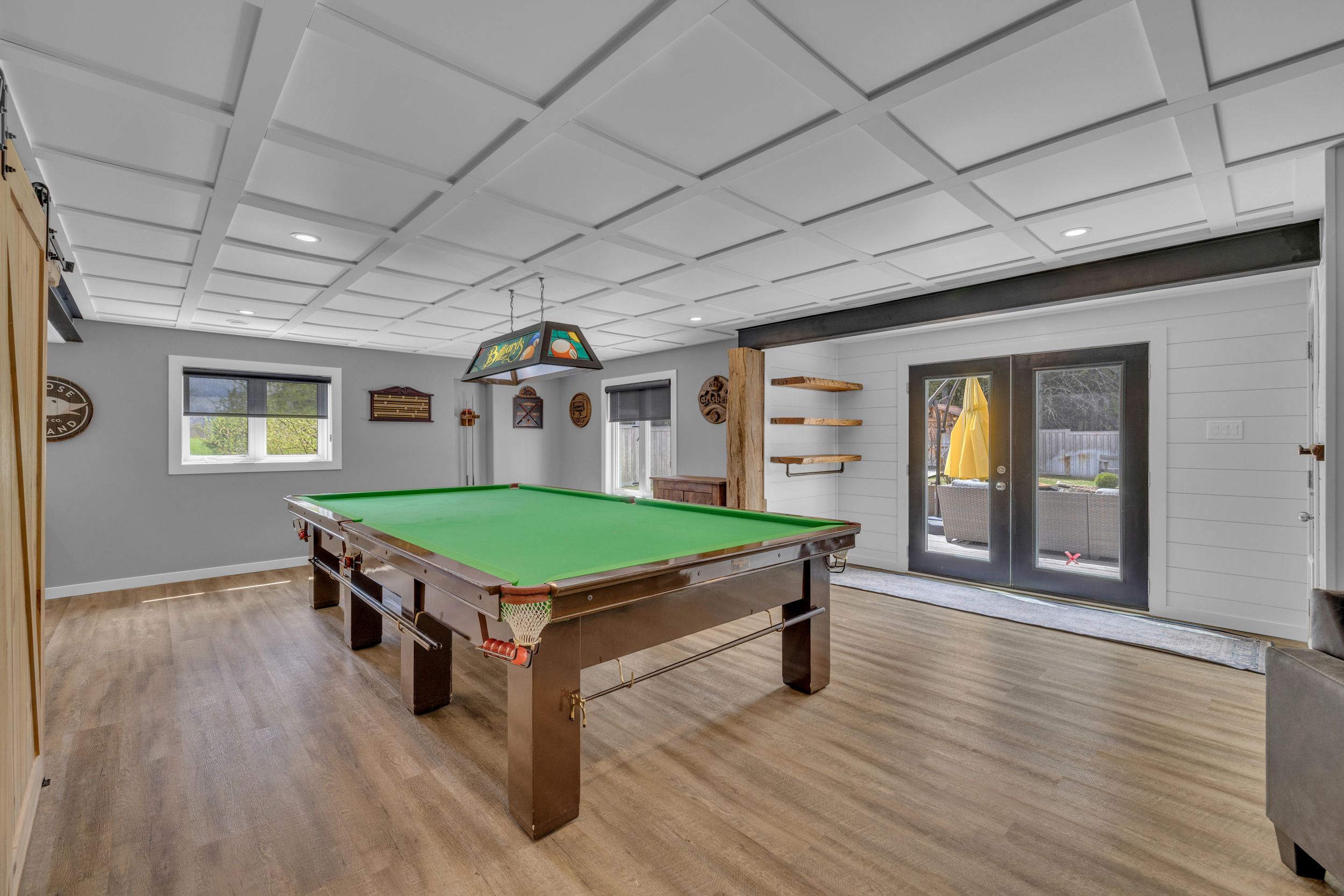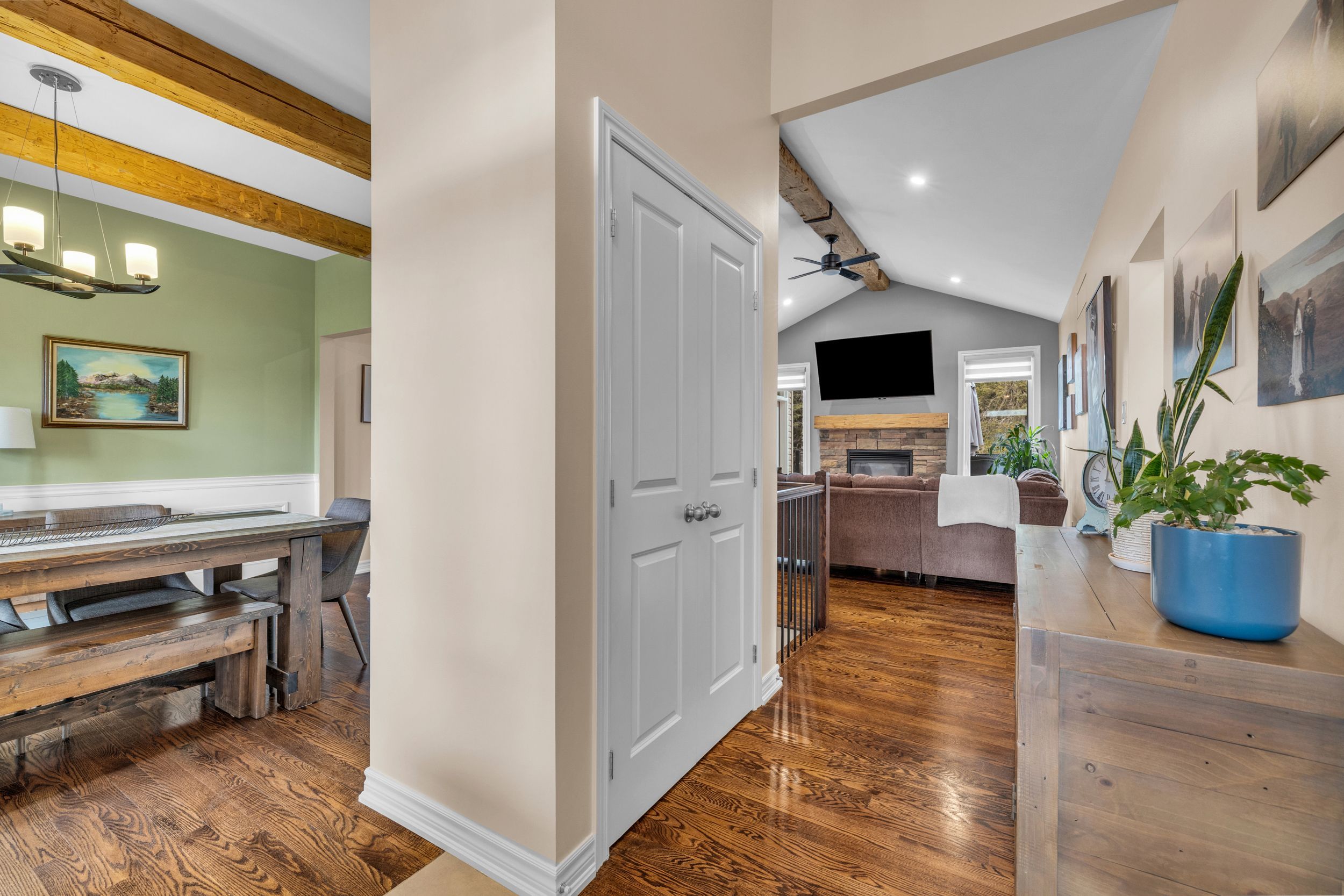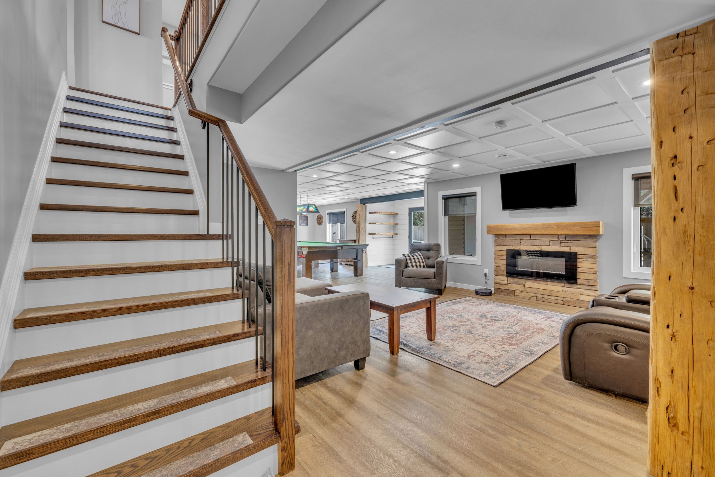 • Open-concept living and family rooms with timber accents.