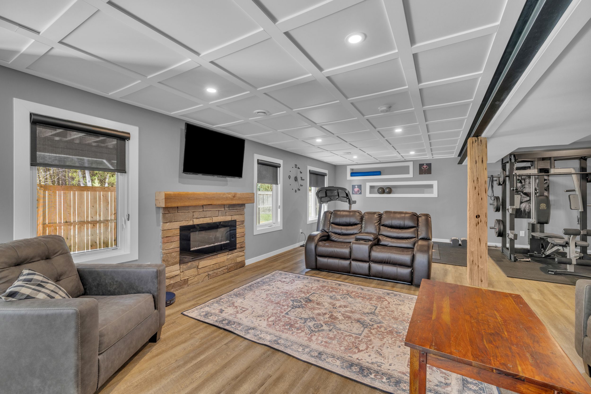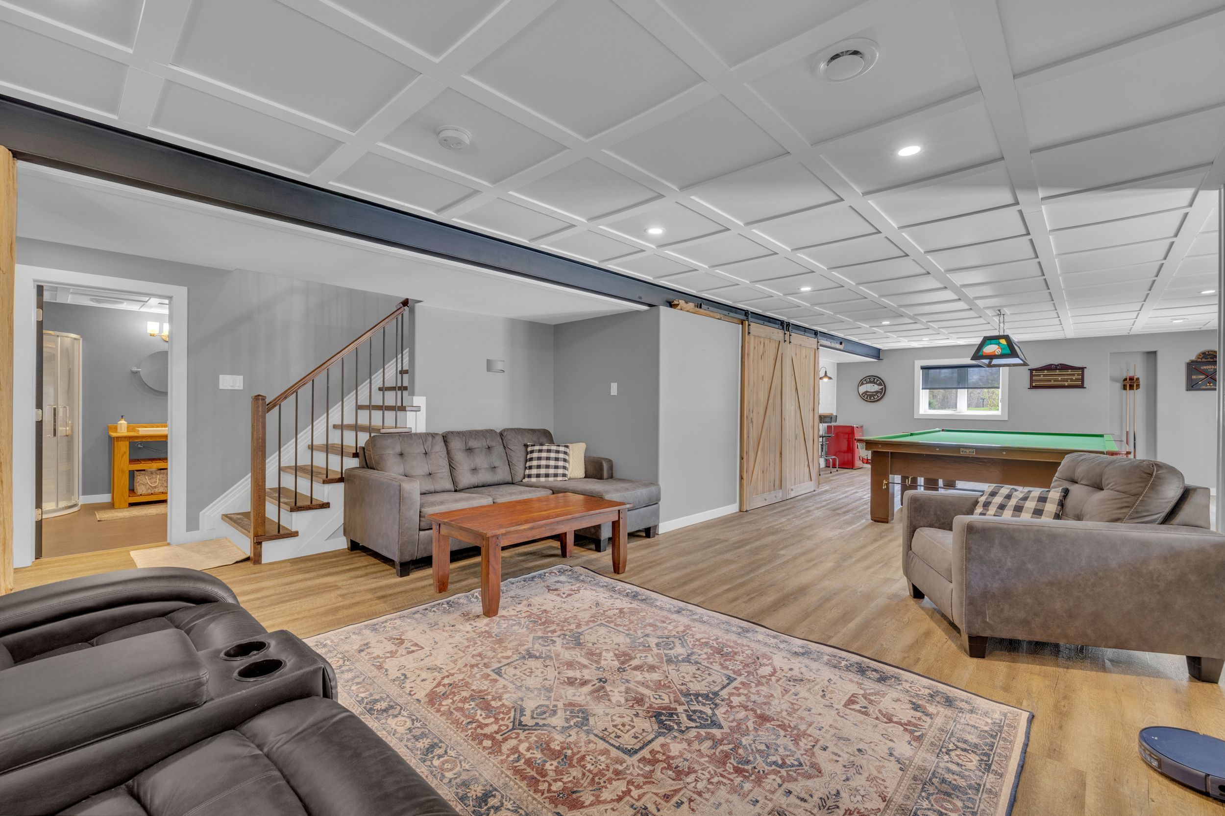 • Lower level with extra bedroom, game room, and sauna.