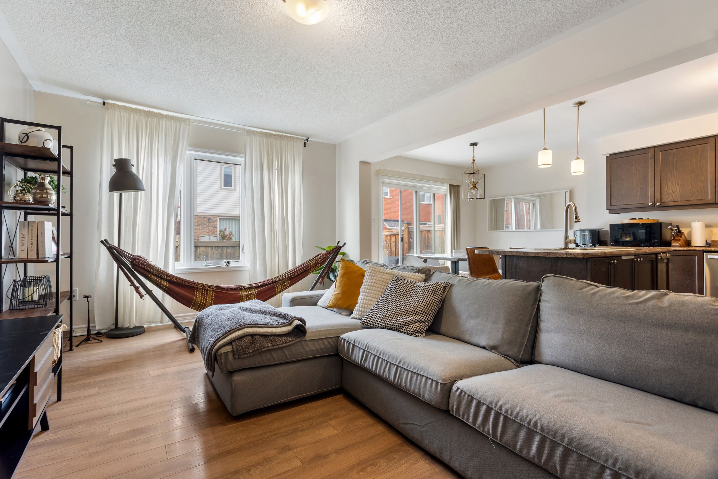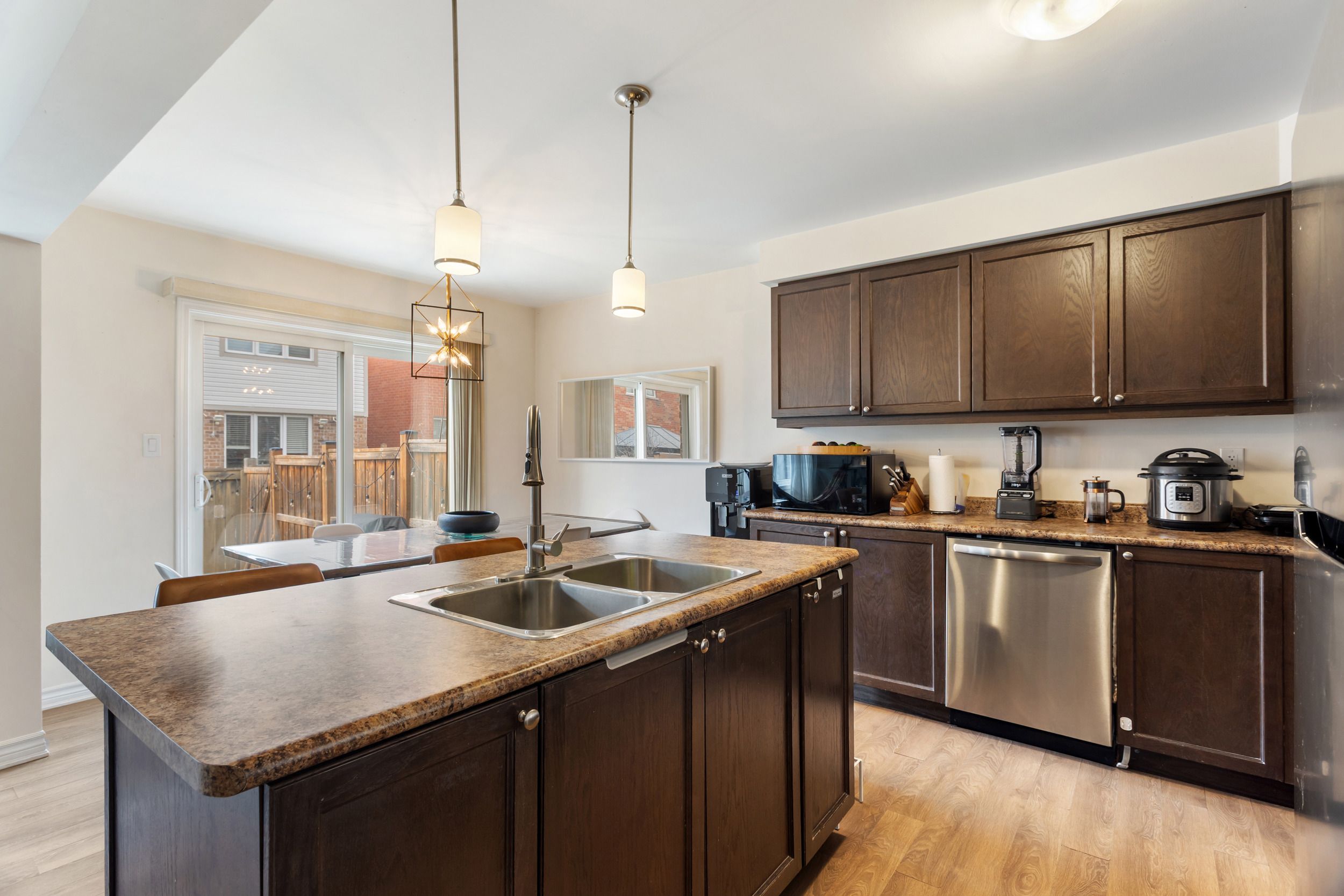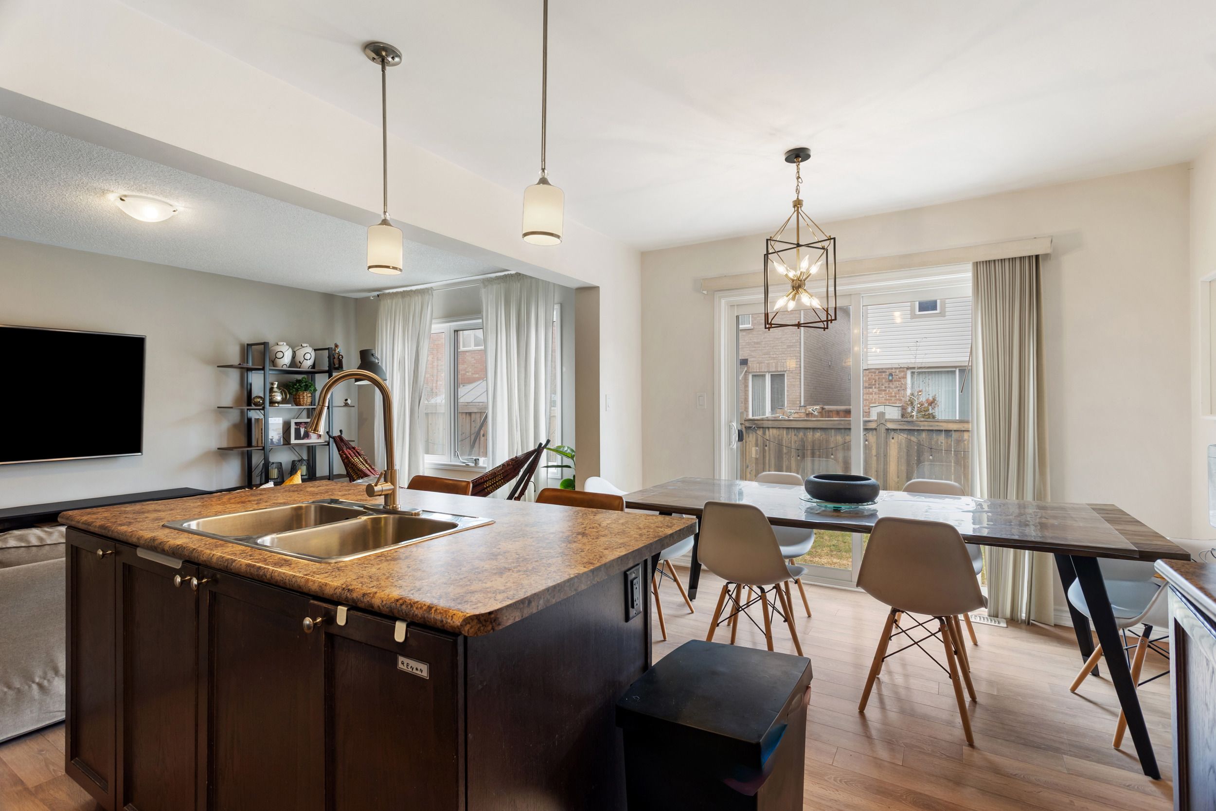Welcome to this mattamy-built, beautifully maintained freehold townhouse in one of milton's most desirable, family-friendly neighbourhoods. Bright, inviting, and thoughtfully laid out, this home offers stylish finishes and functional living spaces designed for everyday comfort. The main floor features an open-concept layout with warm flooring, a spacious living area, and a well-appointed kitchen complete with dark cabinetry, stainless steel appliances, ample counter space, and a large centre island with breakfast seating. The adjoining dining area is ideal for family meals and entertaining, with a walkout to the fully fenced backyard for easy indoor-outdoor living. Upstairs, you'll find generously sized bedrooms filled with natural light, offering flexibility for a growing family, guests, or a home office. The primary bedroom provides a comfortable retreat, while the additional bedrooms are well suited for children or multi-purpose use. A standout feature is the convenience of two full bathrooms on the upper level, making busy family mornings easier and adding extra comfort for everyday living . The unfinished basement offers excellent potential for future customization, whether you envision a recreation room, home gym, workspace, or simply want the benefit of added storage. Outside, the private fenced backyard provides a great setting to relax, entertain, or enjoy summer evenings with family and friends. With attractive curb appeal, a private driveway, and an attached garage, this home is move-in ready with space to grow. Ideally located close to parks, shopping, transit, and everyday amenities, this home is especially appealing for families thanks to its proximity to schools and its setting within a welcoming, established community. This home is a fantastic opportunity to own a well-kept townhouse in the heart of milton.