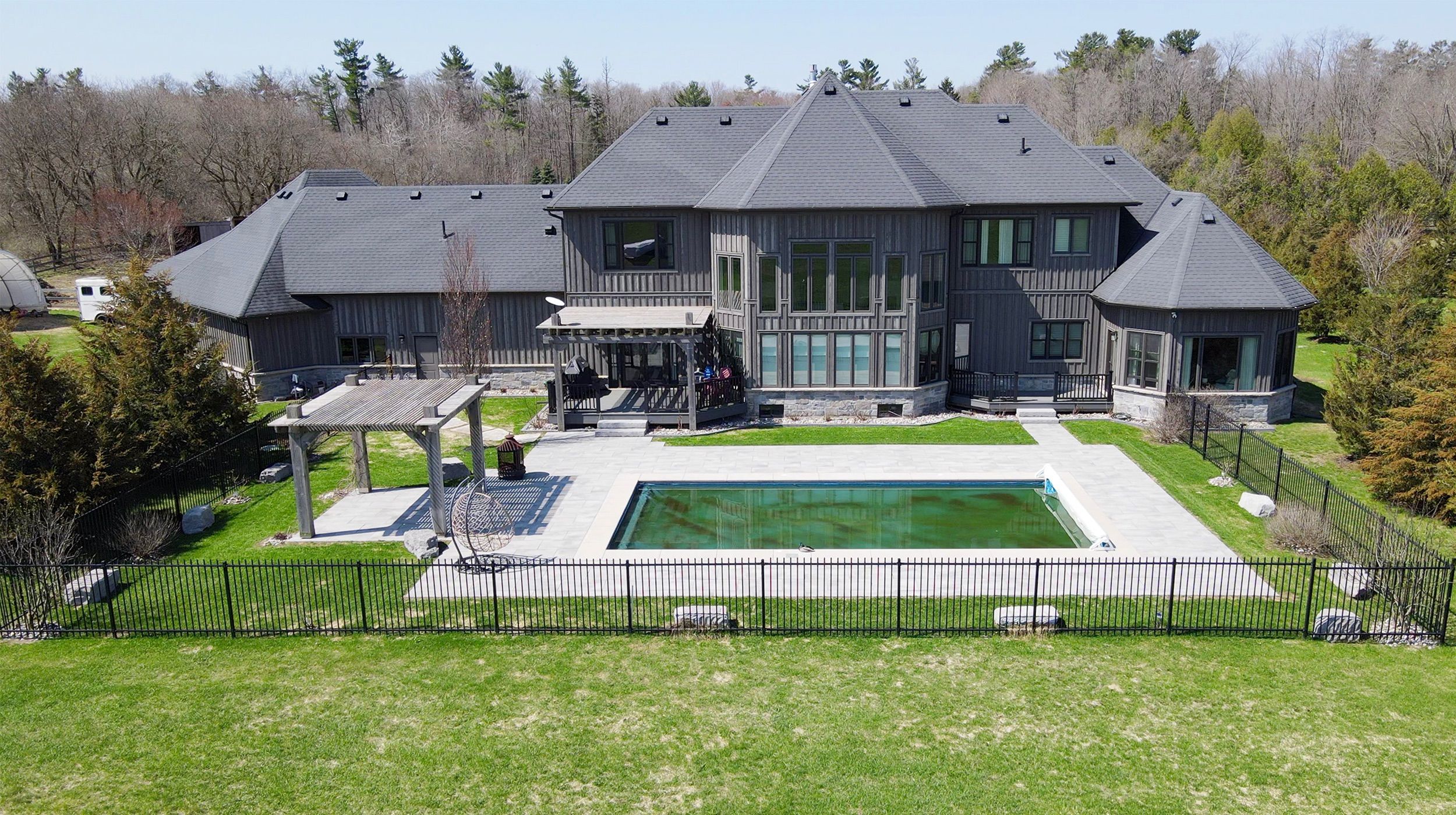 This is the one! Set on 13 acres of private land, this exceptional estate offers unmatched space, privacy, and lifestyle. Located in a prestigious area of stouffville, just minutes from shopping, schools, amenities, and a 10-minute drive to highway 404. The home features a gourmet chef's kitchen, perfect for entertaining or daily culinary enjoyment. The soaring 2-storey great room showcases a floor-to-ceiling 2-sided stone fireplace and a dramatic wall of windows overlooking the lush grounds. The primary suite serves as a serene retreat, complete with a built-in dressing room and a spa-like ensuite. Originally 4 bedrooms, can be converted back. Designed for recreation and wellness, the residence includes a sauna and a spacious basement ideal for a games room, exercise area, and recreation space. Car enthusiasts will value the oversized 3-car garage with tons of space for storage. Geothermal heating and cooling provide savings on utilities. Outdoors, enjoy the heated in-ground saltwater pool or take a short walk to the horse paddocks with two run-in shelters. A seamless blend of leisure and equestrian lifestyle. A rare opportunity to own a private estate that combines refined living, luxury amenities, and expansive land in one exceptiolnal property.