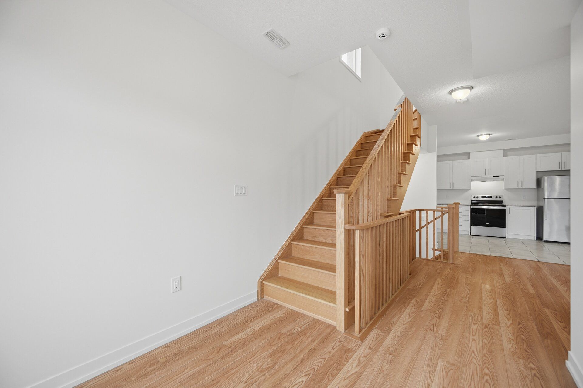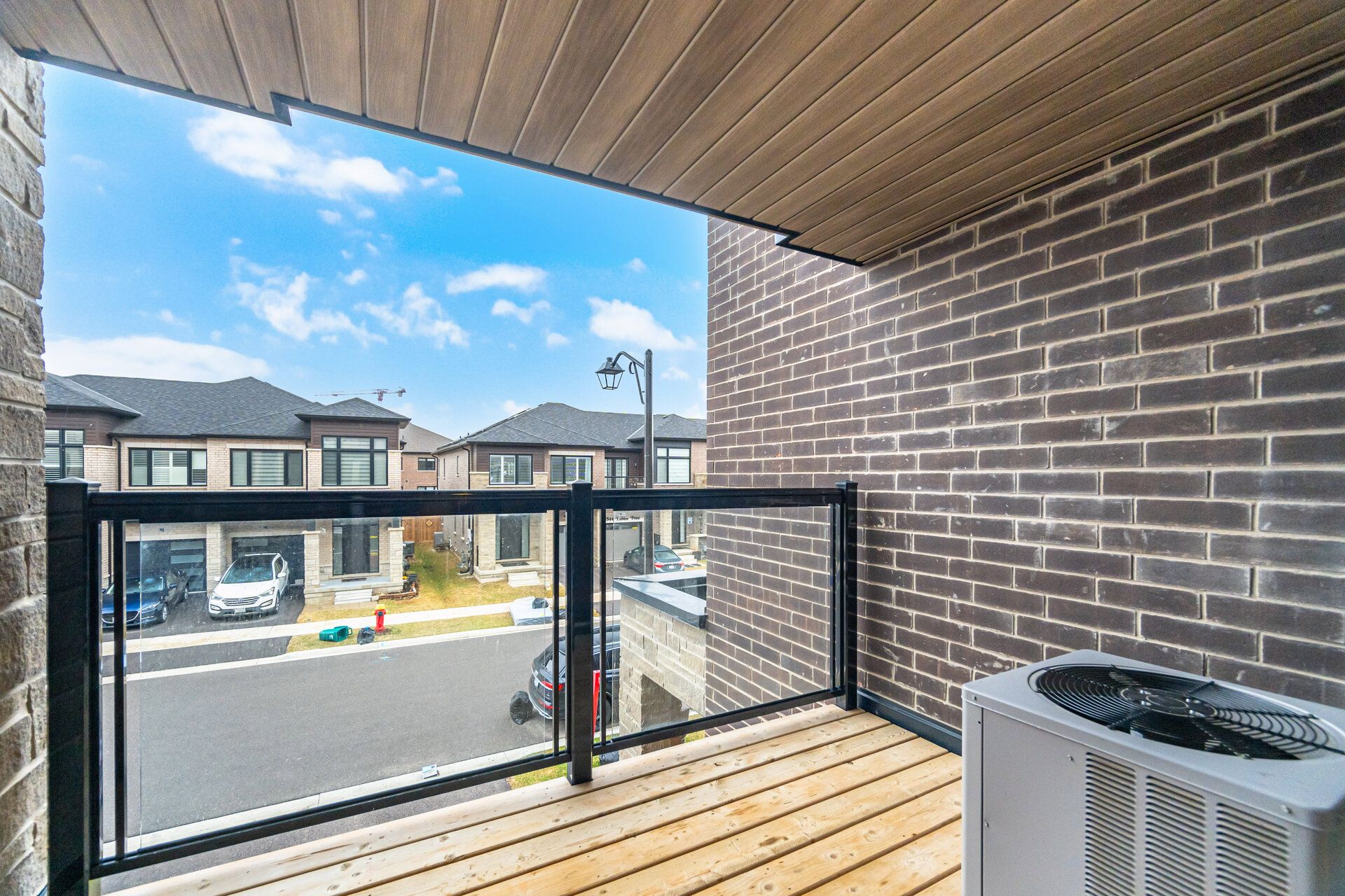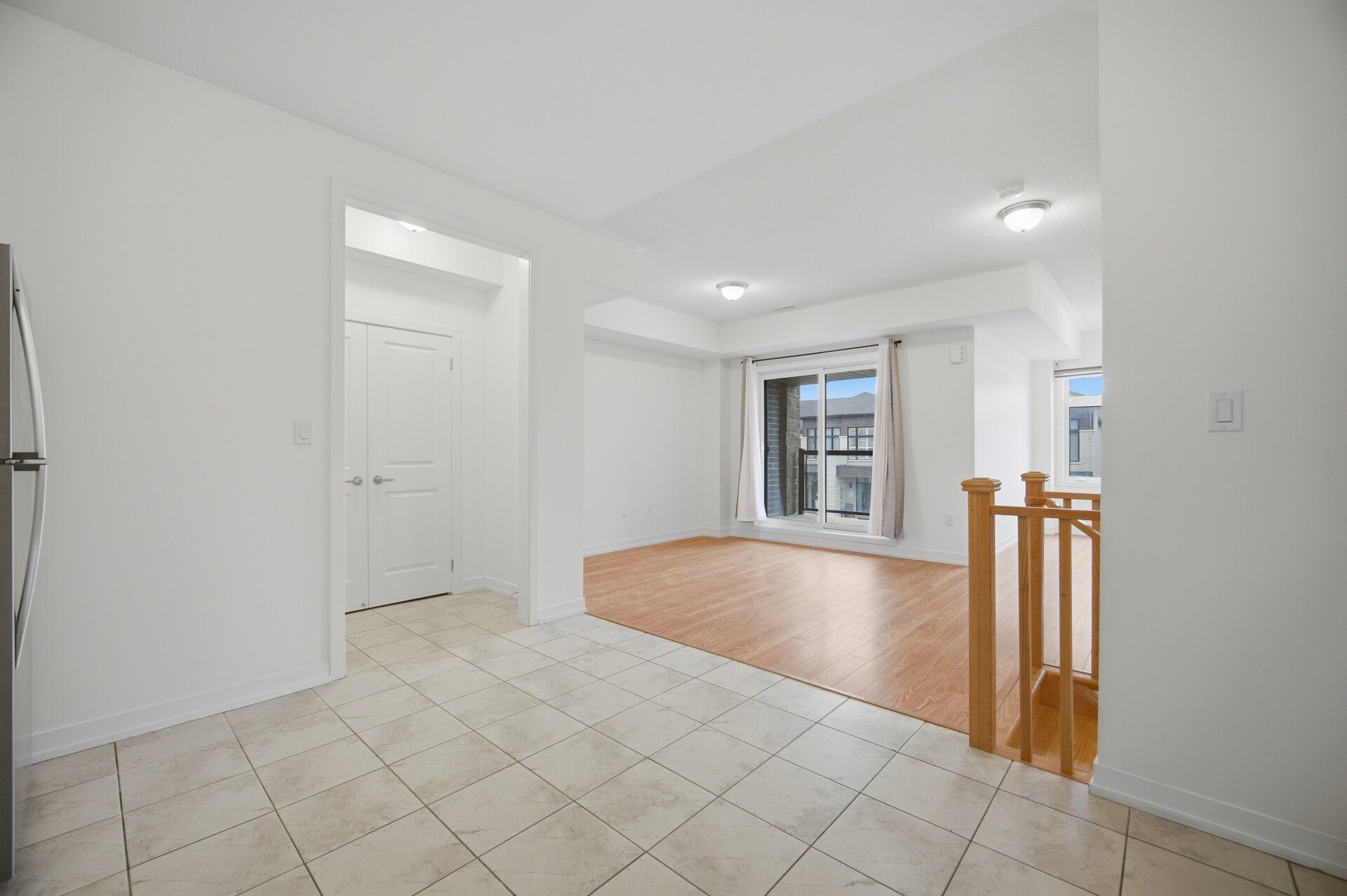 Stunning new freehold 3-storey executive townhome by premont homes! Located in one of milton's newly developed and highly sought-after communities, this beautifully designed home offers over 1,600 sq. Ft. Of elegant living space. Featuring 3 spacious bedrooms plus a versatile den and 2. 5 bathrooms, this home showcases 9 ft. Ceilings and gleaming hardwood floors on the main level with a modern open-concept layout. The gourmet kitchen is equipped with a large island, upgraded cabinetry, and quartz countertops-perfect for both everyday living and entertaining. The primary bedroom includes a luxurious 5-piece ensuite and a walk-in closet. Ideally situated close to parks, scenic trails, top-rated schools, and all essential amenities. Priced to sell-don't miss this exceptional opportunity!