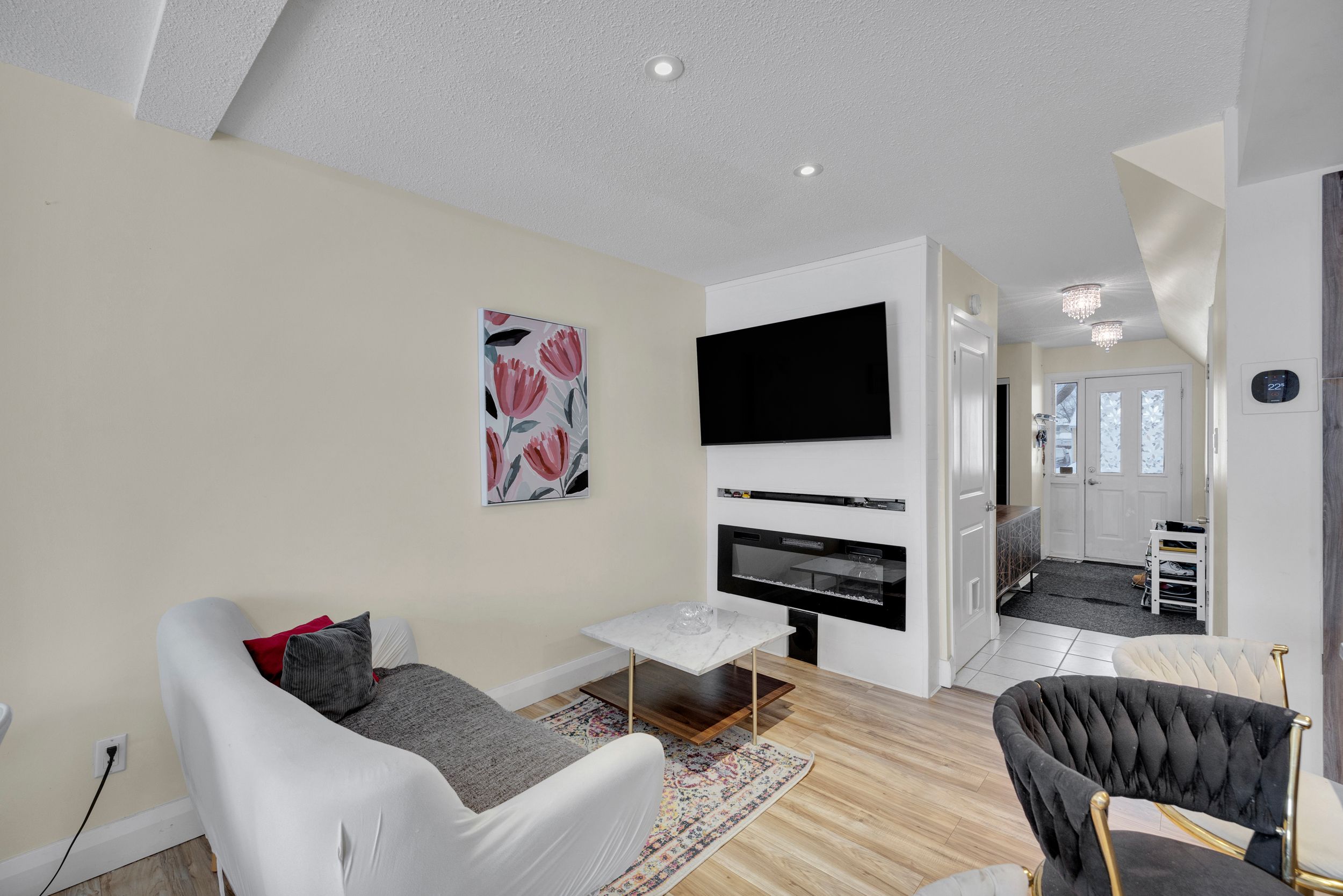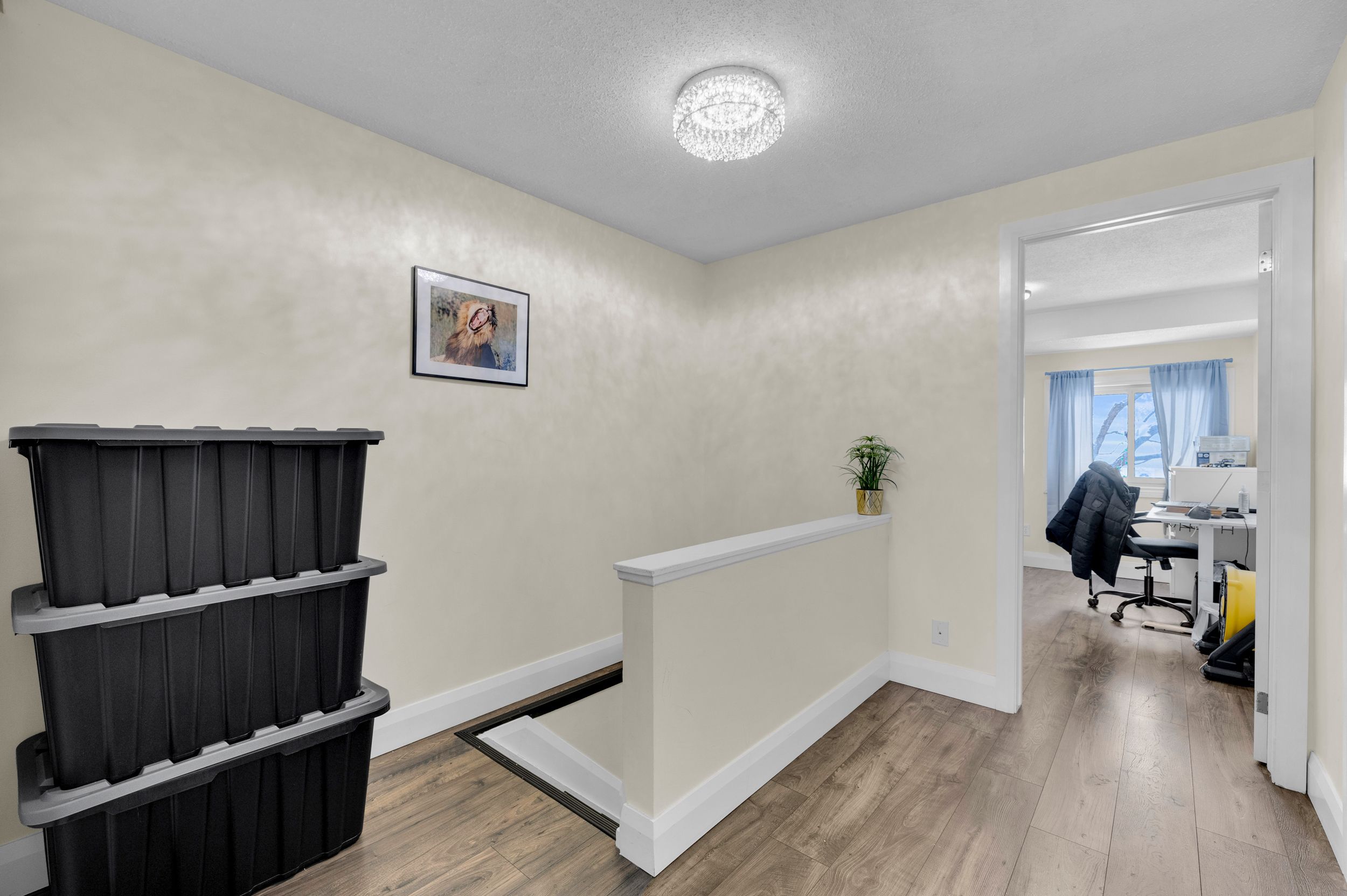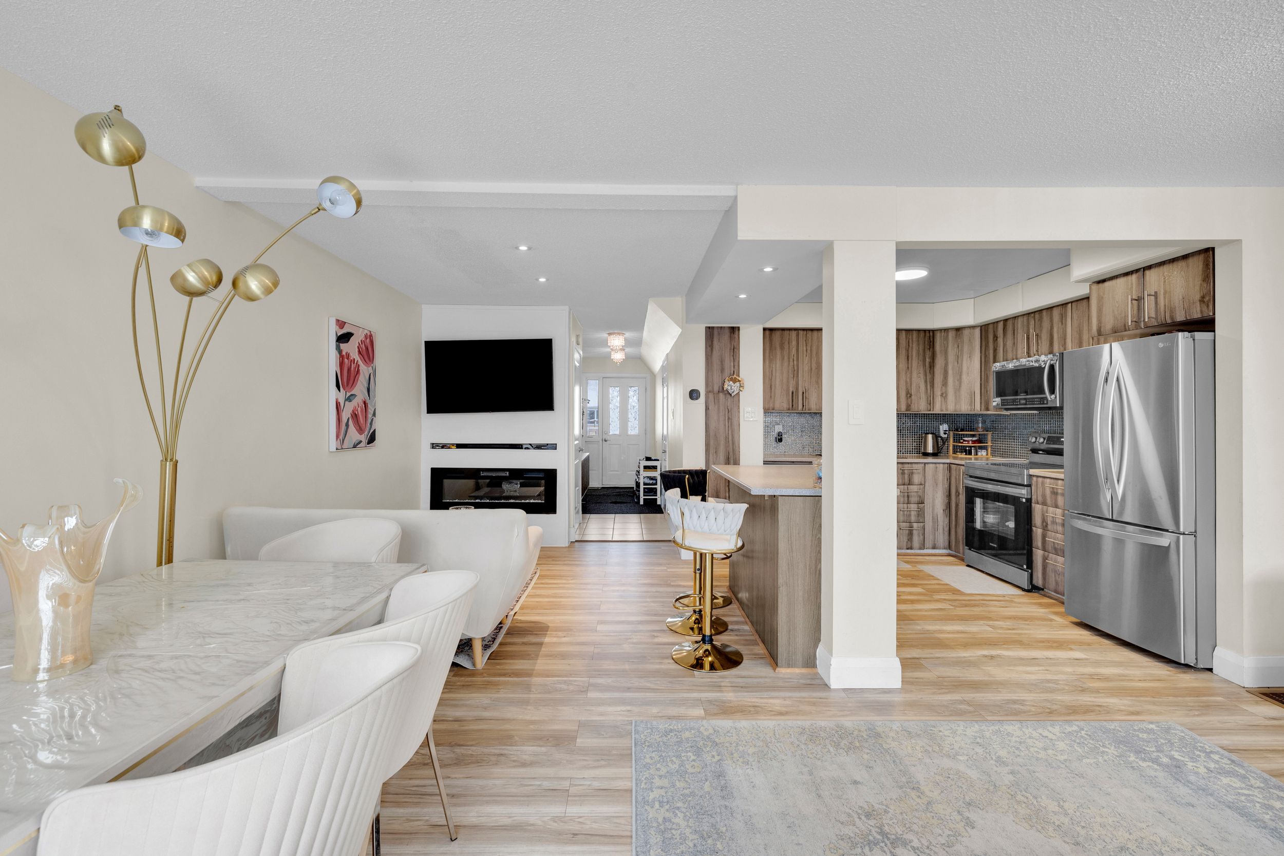 Minutes from great shopping, restaurants, schools and airport. Main level consists of an open concept kitchen/dining/living area with custom cabinets, adjustable island, stainless appliances, and custom living room blinds (2016). Upstairs you will find a spacious landing with a generous primary bedroom, full bath, and 3 large bedrooms. The lower level includes a 3 piece bath with laundry and a sizeable recreation/family room (2020/2021). The fenced backyard has a multi-level patio and gazebo with easy access to the field and play structure