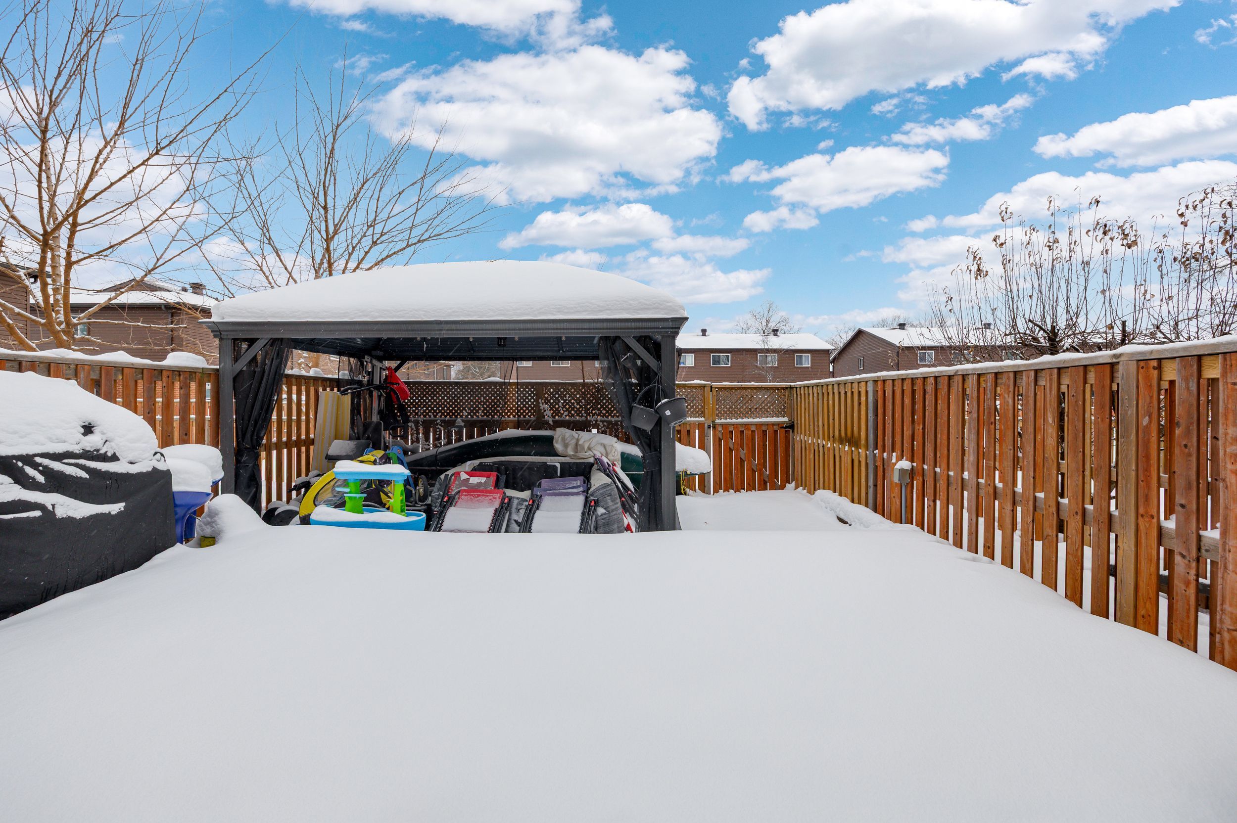 • Fenced backyard with multi-level patio and gazebo for outdoor enjoyment.
