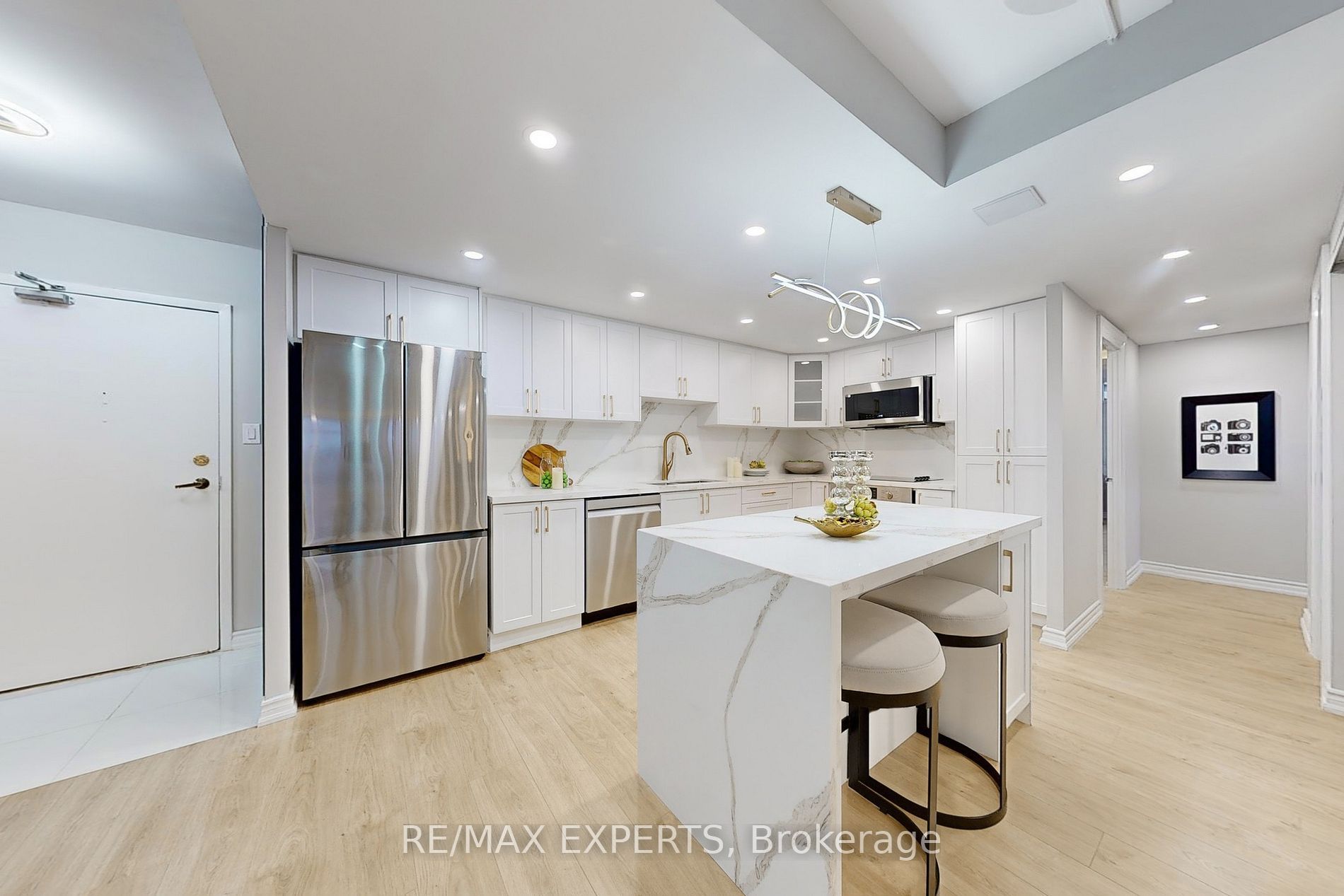 Welcome to tridel's skymark 2, a beautiful corner unit that offers lots of space, natural light, and a very comfortable layout. Featuring 3 bedrooms and 3 bathrooms, a large open balcony, two ensuite bathrooms, and extra-large ensuite storage, making it perfect for families or anyone who wants room to spread out. The entire unit has been fully renovated from top to bottom with quality finishes, giving it a fresh, modern feel. One of the best features is that the maintenance fees include everything-all utilities plus rogers high-speed internet, cable tv, and home phone. The unit also comes with two tandem parking spots, new windows, a new balcony door, and 24-hour gatehouse security for added peace of mind. The building offers amazing amenities, including indoor and outdoor pools, tennis and squash courts, a gym, sauna, games and billiards rooms, media and lounge areas, and beautiful gardens with walking trails and a waterfall. The location is very convenient, with ttc, shopping plazas, no frills, banks, restaurants, a hospital, and seneca college all within walking distance. Easy access to highways 404, dvp,401, and 407 makes getting around the city simple. This is a great opportunity to enjoy a spacious, well-kept home in a well-managed building with everything you need close by. A wall has been added in the living room to make the 3rd bedroom****