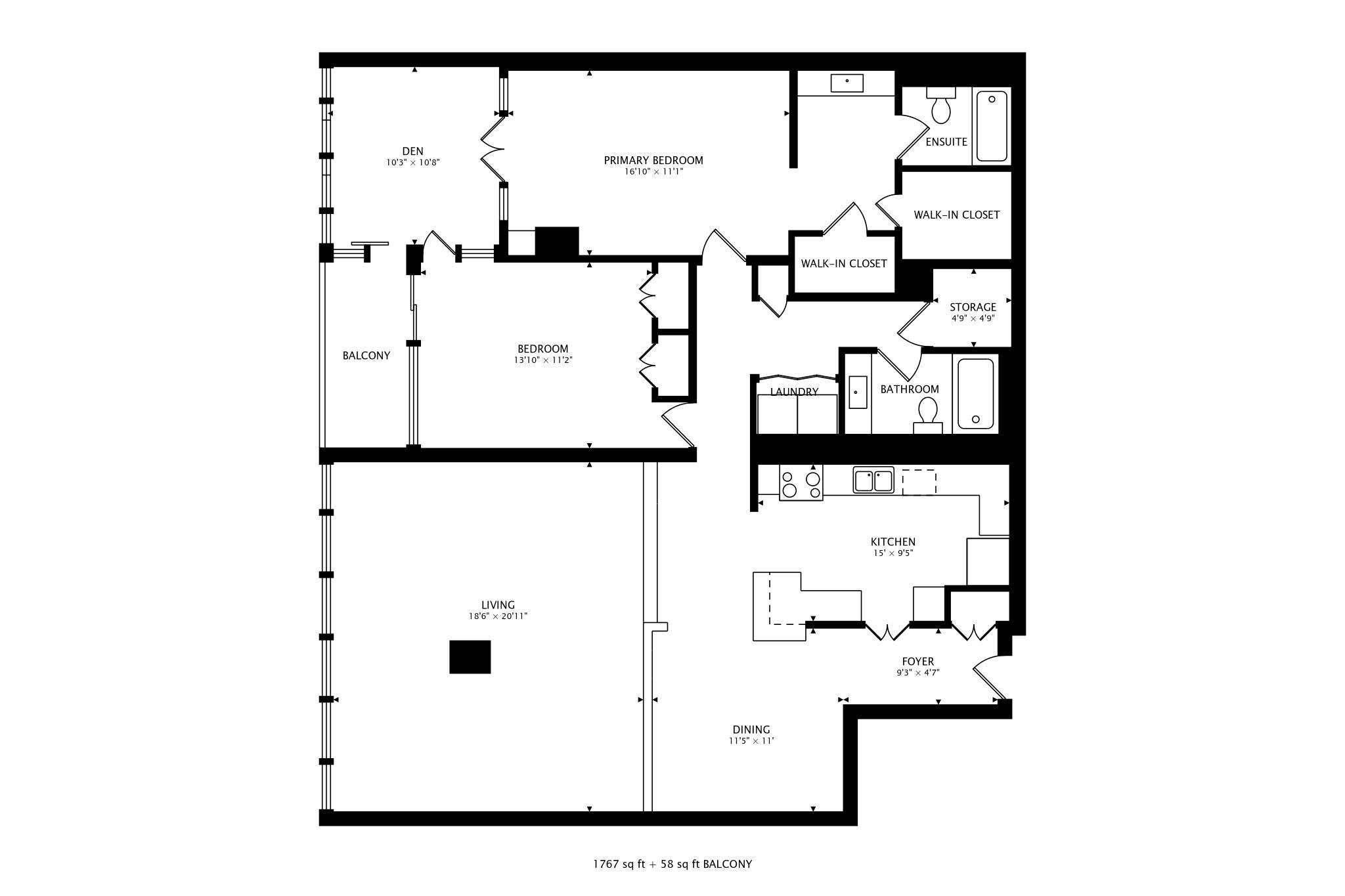 • Spacious 2+1 bedroom suite with over 1,700 sq ft on the 27th floor.