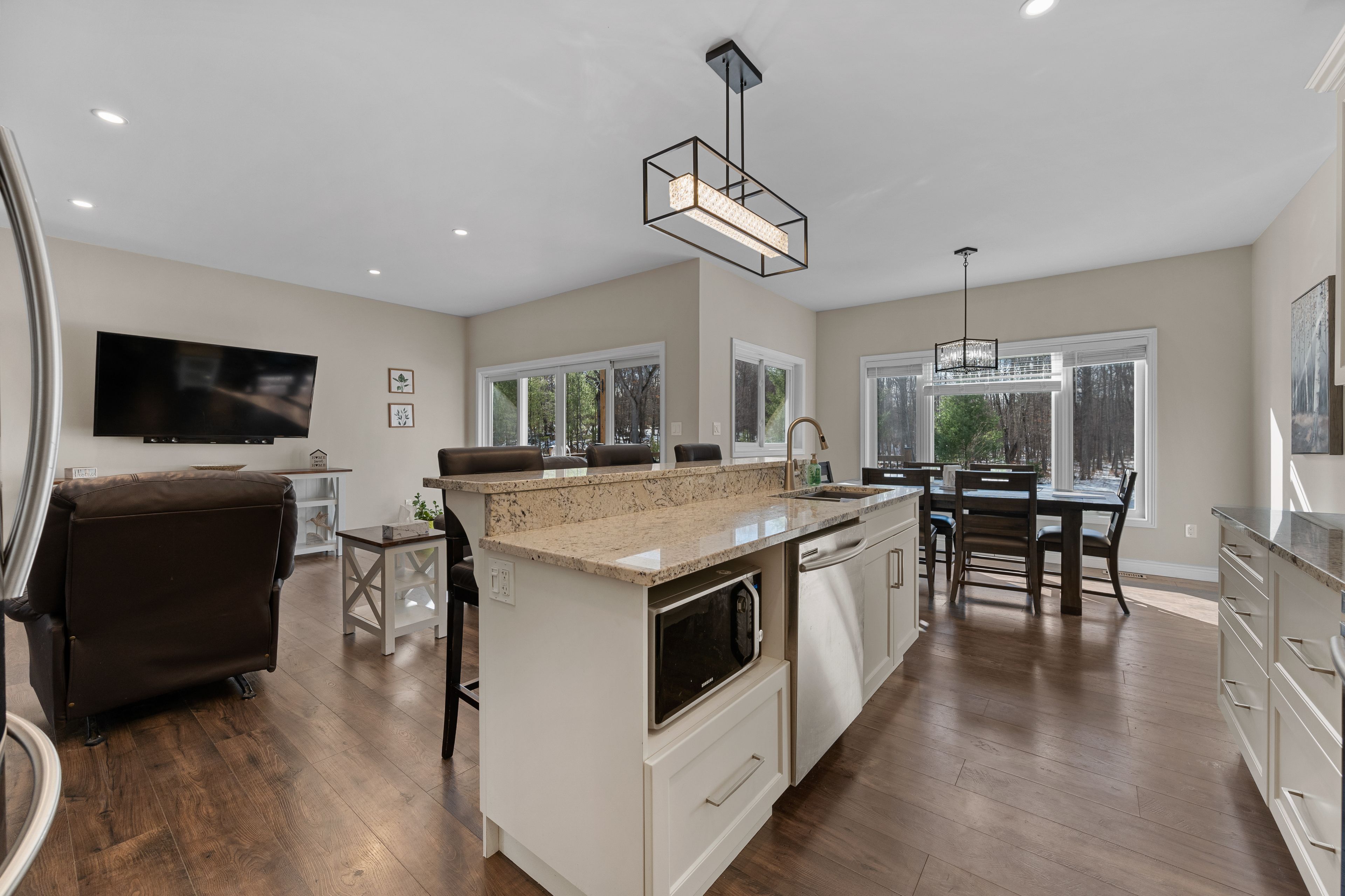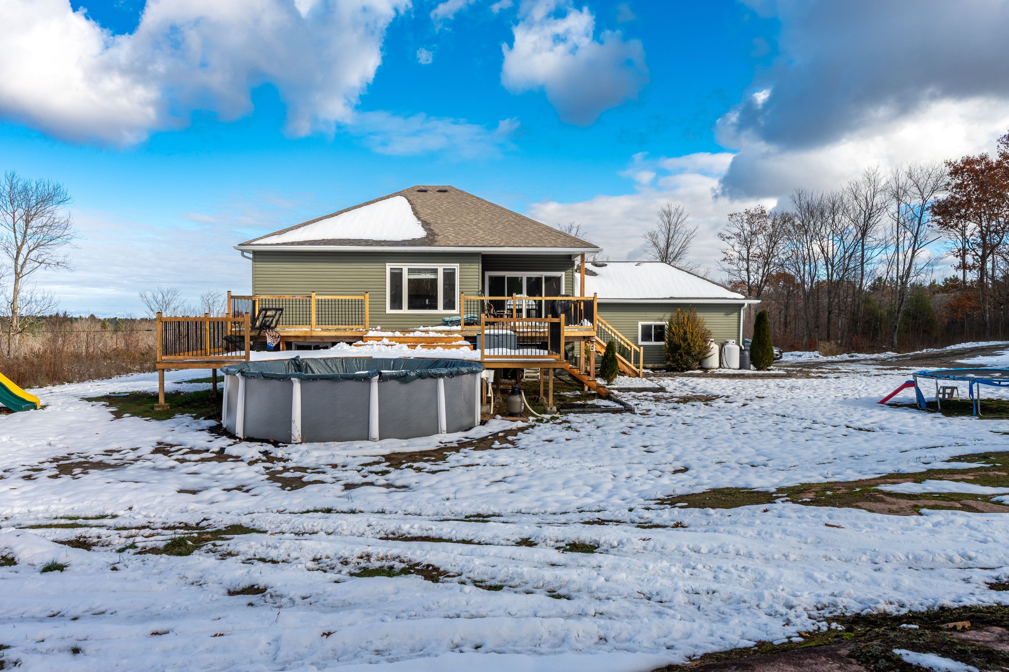 Welcome to 1557 long lake road - a stunning raised bungalow, built in 2019 and thoughtfully designed to offer the perfect blend of modern elegance and quiet country living. Nestled on a beautifully treed 1-acre lot and located just minutes from long lake, this home truly is a slice of paradise. Boasting over 1,500 sq. Ft. On the main level, the inviting open-concept layout is ideal for family gatherings and entertaining. Oversized windows throughout the entire home bathe the space in natural light while capturing serene countryside views. The impressive eat-in kitchen features upgraded cabinetry, granite countertops, and stainless steel appliances all next to a walk in pantry people dream of. Featuring 3+2 bedrooms and 2. 5 baths, including a spacious primary suite complete with a walk-in closet and a private recently renovated 3-piece ensuite. The fully finished basement extends your living space with a generously sized rec room with fireplace, two additional bedrooms, a large laundry area, recently finished 2 pc bathroom, and extra storage. Step outside and enjoy the many outdoor features, including a charming covered front porch with composite decking, a two-tiered deck installed in 2025, and an above-ground pool added in 2023. With both a 2-car attached garage and a 1-car detached garage, there is no shortage of parking or workspace. Don't miss your chance to own this exceptional home that truly offers the best of both worlds-modern comfort and peaceful country charm with enough room for the entire family in every stage. Schedule your viewing today and experience all this property has to offer!