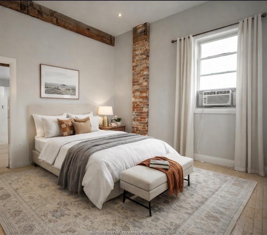 Charming upper unit featuring original hardwood floors, exposed brick, stunning modern fixtures and high ceilings. Enjoy the large bedroom with a built-in custom wardrobe! Located in vibrant walkerville, close to parks, cafes, and downtown amenities. $1,500 + hydro