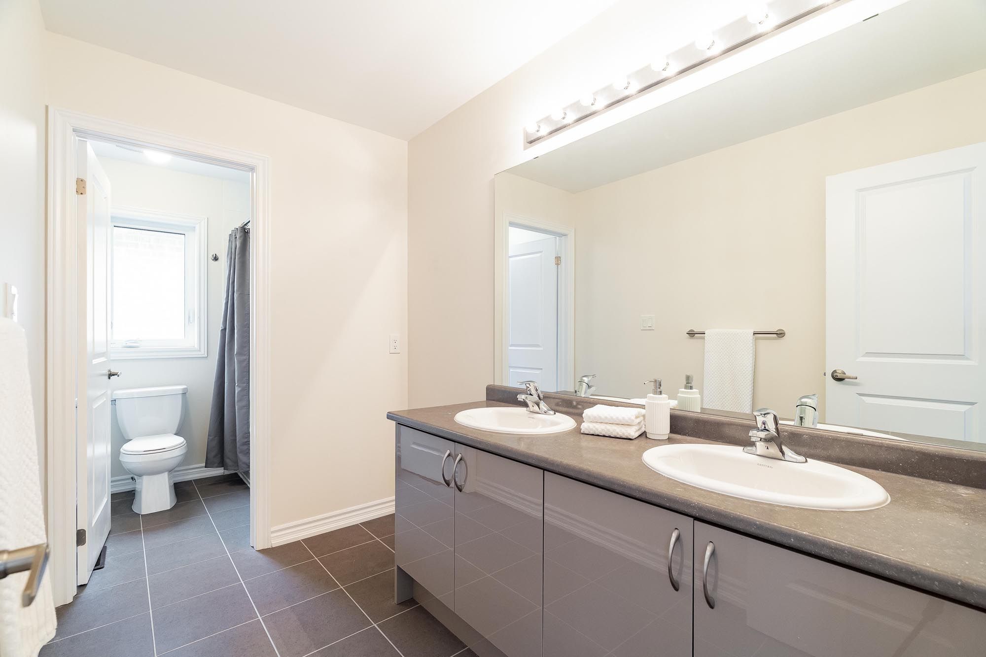 Top 5 reasons you will love this home: 1) rare and remarkable opportunity never before offered for sale, gently lived in and lovingly maintained by its original owners, further complemented by a mike holmes inspections review at the time of purchase, with minor items thoughtfully addressed and full documentation available 2) step inside to discover nearly 2,800 square feet of beautifully curated living space where 9' ceilings and ambient pot lighting create an inviting atmosphere, anchored by a stunning oak staircase with metal pickets, an impressive kitchen with granite countertops and an upgraded oversized sink, elegant hunter douglas silhouette blinds including automated blackout features, and a serene primary suite complete with a tray ceiling and an ensuite with a frameless glass shower 3) designed with modern living in mind, this home offers remote-monitored security, wifi-enabled garage access, smart locks, and intuitive climate control, alongside cameras, motion detection, and water monitoring to create a space that feels both effortlessly convenient and exceptionally secure 4) from the moment you arrive, the exceptional curb appeal sets the tone with extensive unilock stonework framing the driveway, walkways, and porch, complemented by thoughtfully landscaped garden beds and a custom retaining wall, while the all-brick exterior paired with sleek glass railings delivers a timeless yet modern aesthetic 5) completing the home is a fully fenced backyard offering privacy and outdoor enjoyment, along with practical upgrades including an enhanced sump pump, a water filtration system, a discreet built-in central vacuum system, and a full suite of included appliances, while also benefiting from a prime location in a growing community with the future orbit go transit system planned nearby, adding long-term convenience and value. 2,793 above grade sq. Ft. Plus an unfinished basement. *please note some images have been virtually staged to show the potential of the home.