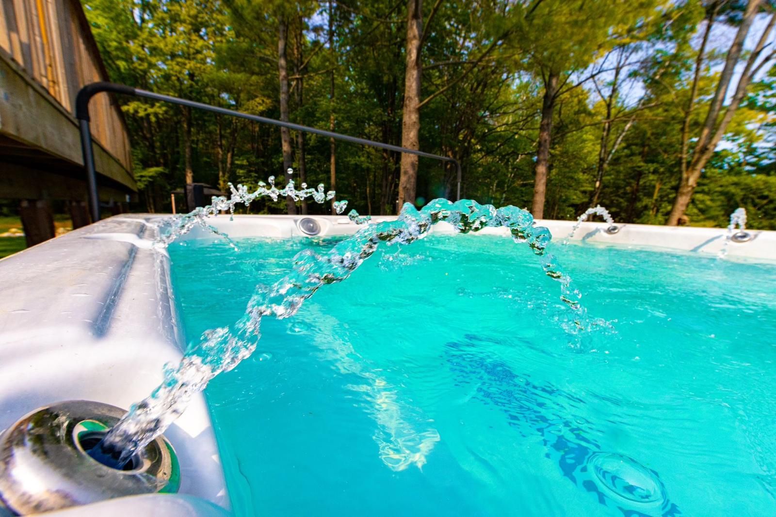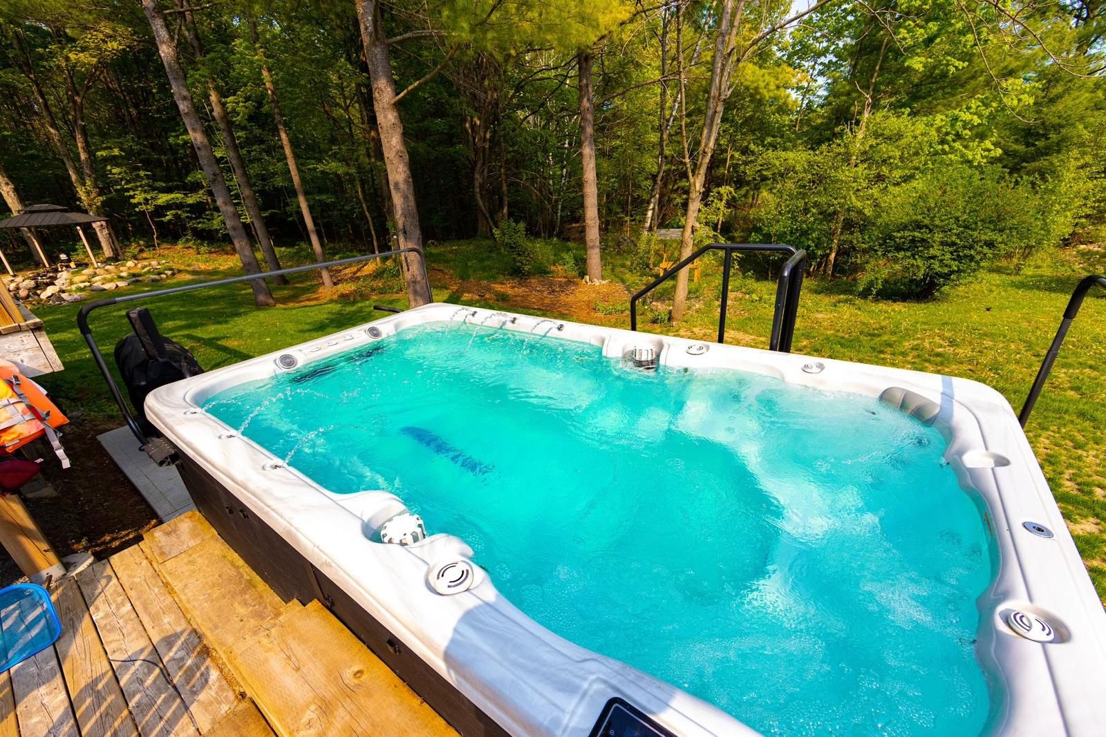 • Relax in the hot tub and enjoy the koi fish pond.