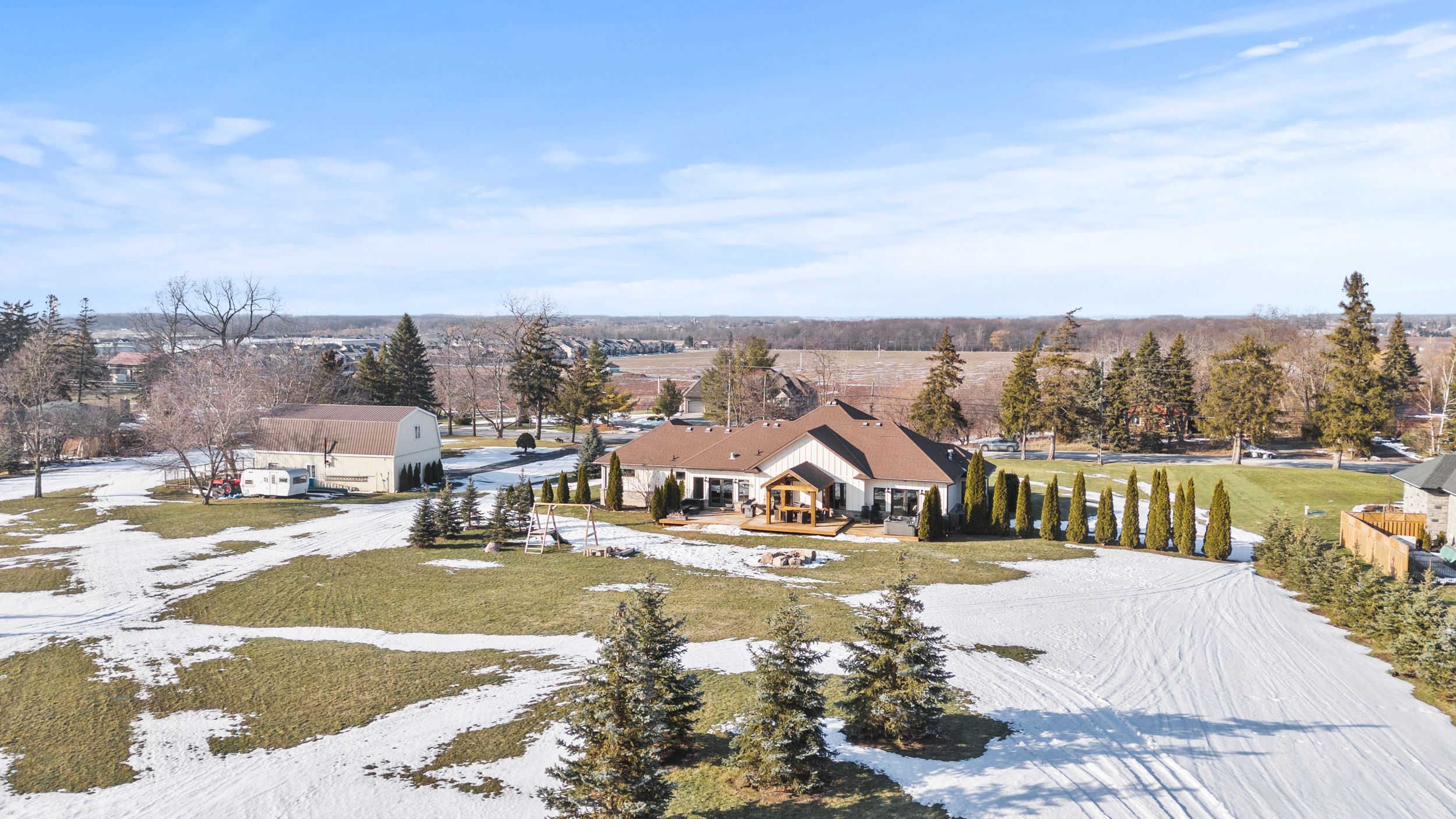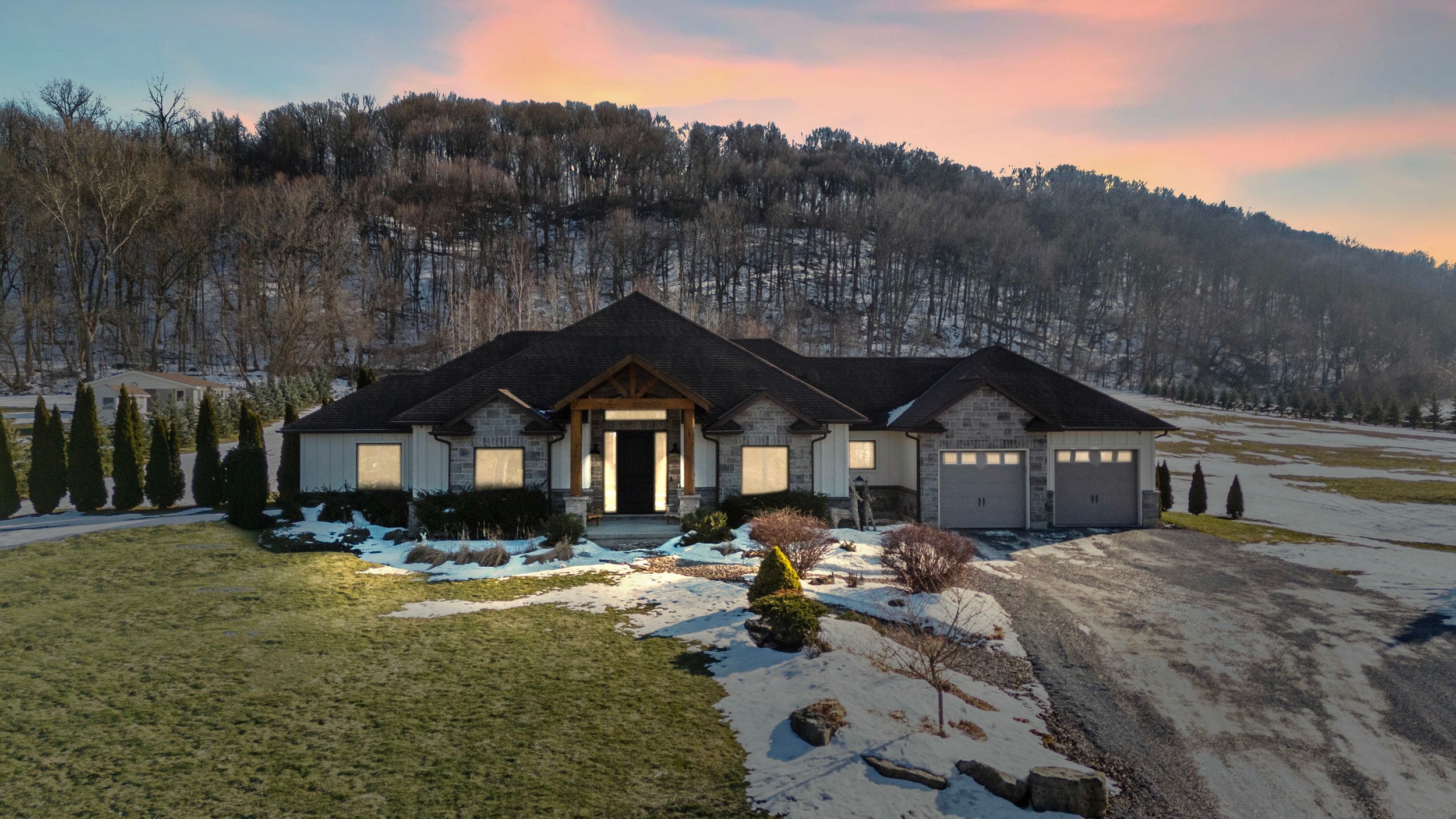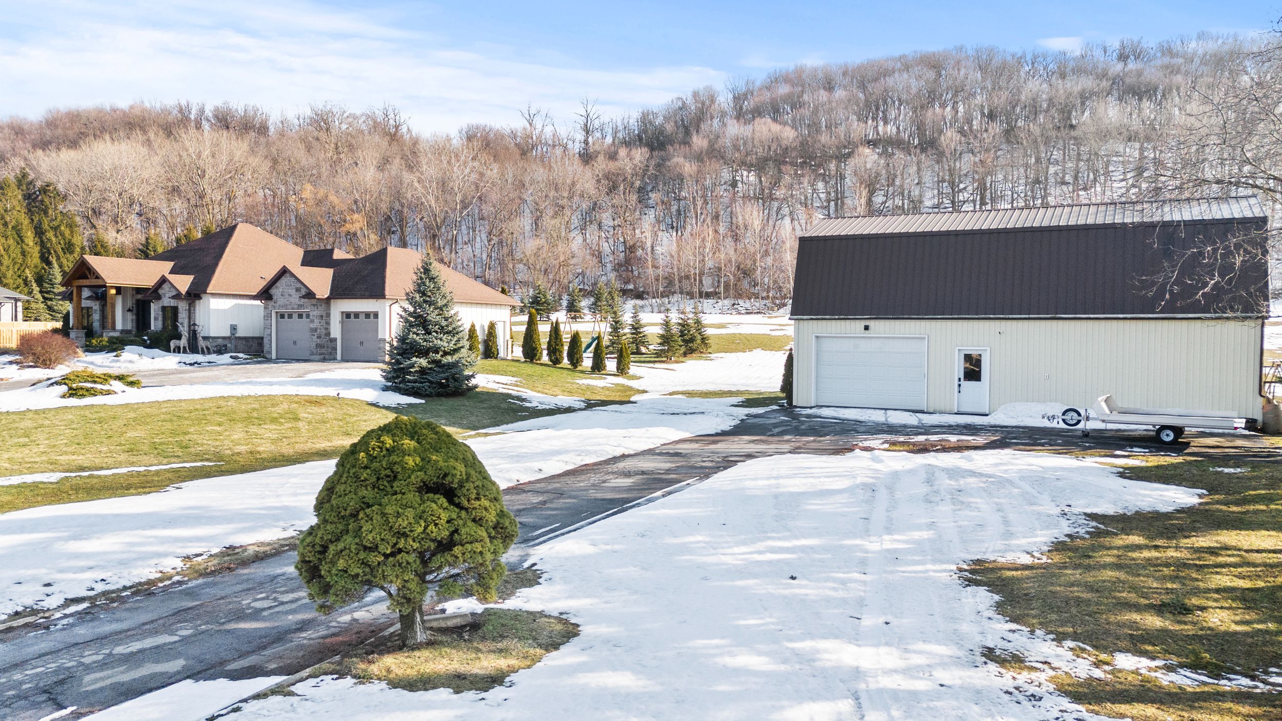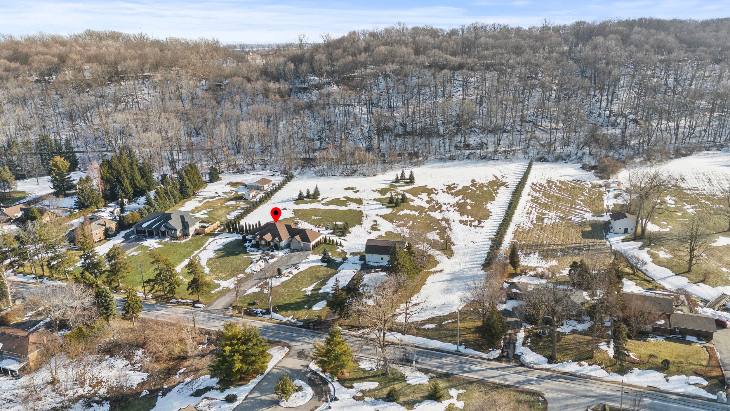 Welcome to 1559 york road in st. Davids - 5 private acres backing onto the niagara escarpment with incredible views, total privacy, and serious long-term upside. This custom-built bungalow (2010) offers over 4,000 sq ft of finished space has over 345ft of frontage, over 600ft depth and was designed for muskoka-like living and entertaining. The main floor is open, bright, over 2500sqft and anchored by a huge great room with vaulted pine ceilings, hickory floors, and a floor-to-ceiling stone fireplace. The kitchen is built for hosting with custom cabinetry, stainless appliances, built-in oven, warming drawers, and a large island with a 6-burner gas cooktop and extra prep sink. The primary bedroom is its own private retreat with a three-sided fireplace, heated floors, jacuzzi tub, and french doors to the backyard. The finished lower level has a separate entrance, 9 ft ceilings, in-floor heating, a bedroom, and full bath - perfect for an in-law setup, extended family, or flexible living space. Step outside to a massive deck, multiple seating areas, and panoramic escarpment views that make this property feel like a private resort. The property also includes a 1,080 sq ft two-storey barn that can be used for a workshop, storage, or hobby space! Huge bonus and major value add: the area where the barn sits can potentially be permitted for a secondary dwelling, creating the opportunity for a future guest house, multi-generational living, or income potential (buyer to complete their own due diligence regarding approvals). Opportunities like this on escarpment properties are rare. All of this just minutes to the qew, the u. S. Border, and niagara-on-the-lake wine country. Space, privacy, flexibility, and future potential - exactly what today's buyers want!