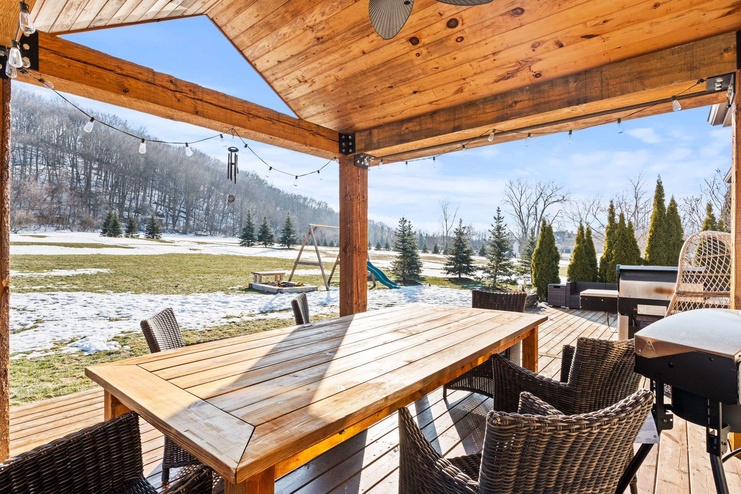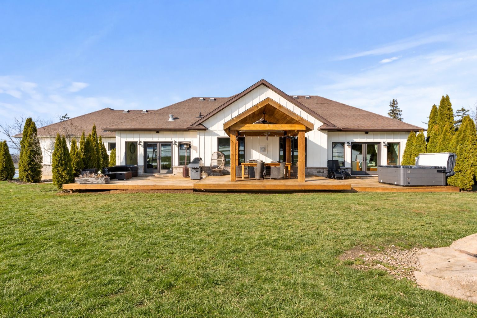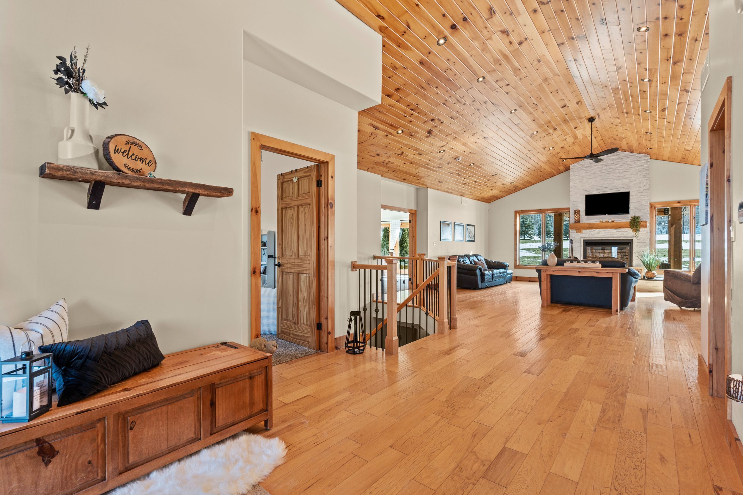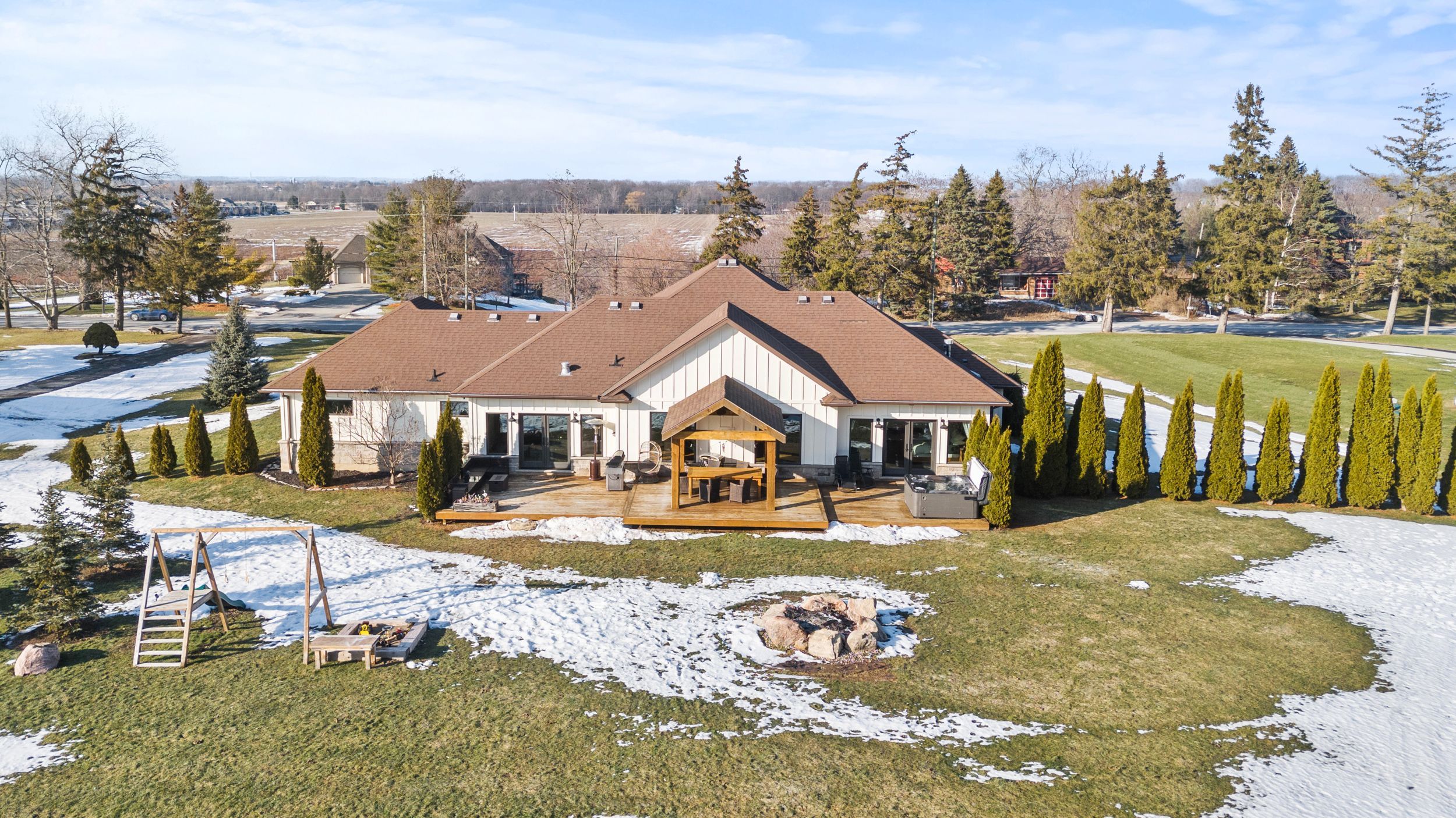 Welcome to 1559 york road in st. Davids - 5 private acres backing onto the niagara escarpment with incredible views, total privacy, and serious long-term upside. This custom-built bungalow (2010) offers over 4,000 sq ft of finished space has over 345ft of frontage, over 600ft depth and was designed for muskoka-like living and entertaining. The main floor is open, bright, over 2500sqft and anchored by a huge great room with vaulted pine ceilings, hickory floors, and a floor-to-ceiling stone fireplace. The kitchen is built for hosting with custom cabinetry, stainless appliances, built-in oven, warming drawers, and a large island with a 6-burner gas cooktop and extra prep sink. The primary bedroom is its own private retreat with a three-sided fireplace, heated floors, jacuzzi tub, and french doors to the backyard. The finished lower level has a separate entrance, 9 ft ceilings, in-floor heating, a bedroom, and full bath - perfect for an in-law setup, extended family, or flexible living space. Step outside to a massive deck, multiple seating areas, and panoramic escarpment views that make this property feel like a private resort. The property also includes a 1,080 sq ft two-storey barn that can be used for a workshop, storage, or hobby space! Huge bonus and major value add: the area where the barn sits can potentially be permitted for a secondary dwelling, creating the opportunity for a future guest house, multi-generational living, or income potential (buyer to complete their own due diligence regarding approvals). Opportunities like this on escarpment properties are rare. All of this just minutes to the qew, the u. S. Border, and niagara-on-the-lake wine country. Space, privacy, flexibility, and future potential - exactly what today's buyers want!