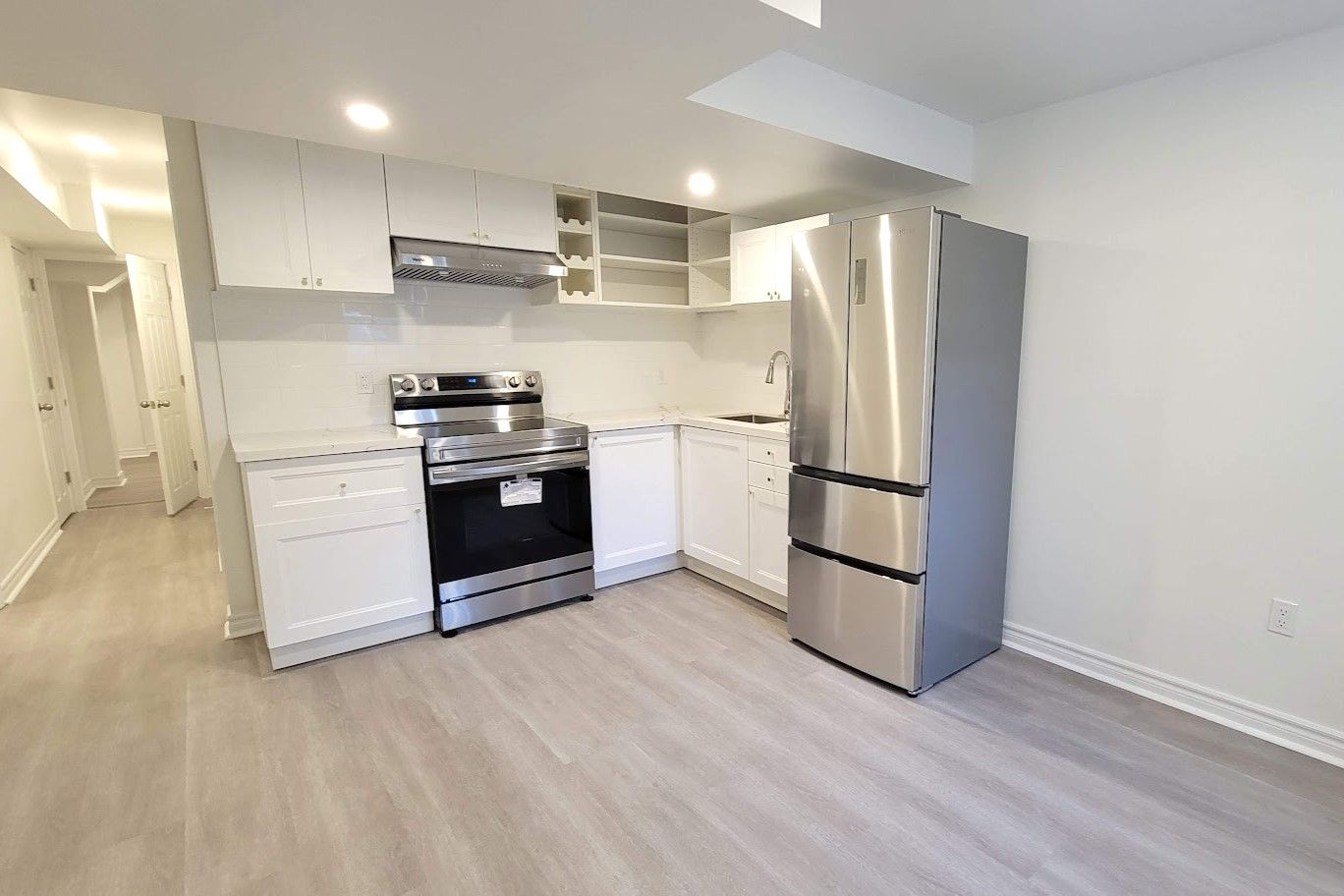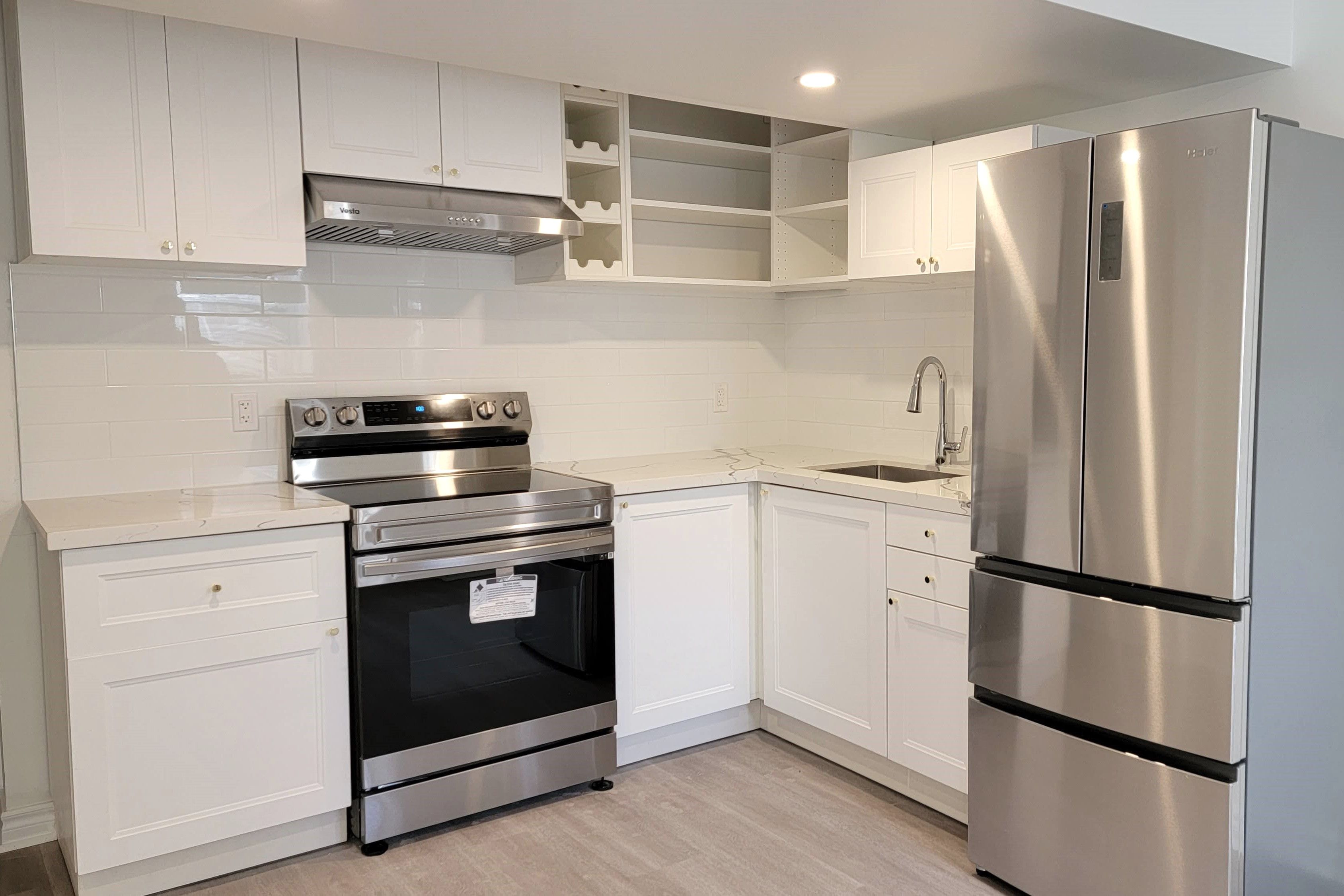 1+den basement apartment with a private separate entrance, located in a sought-after and family-friendly neighbourhood. Ideally situated close to schools, shopping, parks, and everyday conveniences, offering both comfort and convenience. The unit features a modern kitchen complete with quartz countertops and stainless steel appliances, along with durable laminate flooring throughout. One parking space is included on the driveway. Heat, hydro, and water are all included in the rent for added value and ease. Shared laundry facilities available. An excellent option for young professionals or a small family seeking a clean, comfortable place to call home.