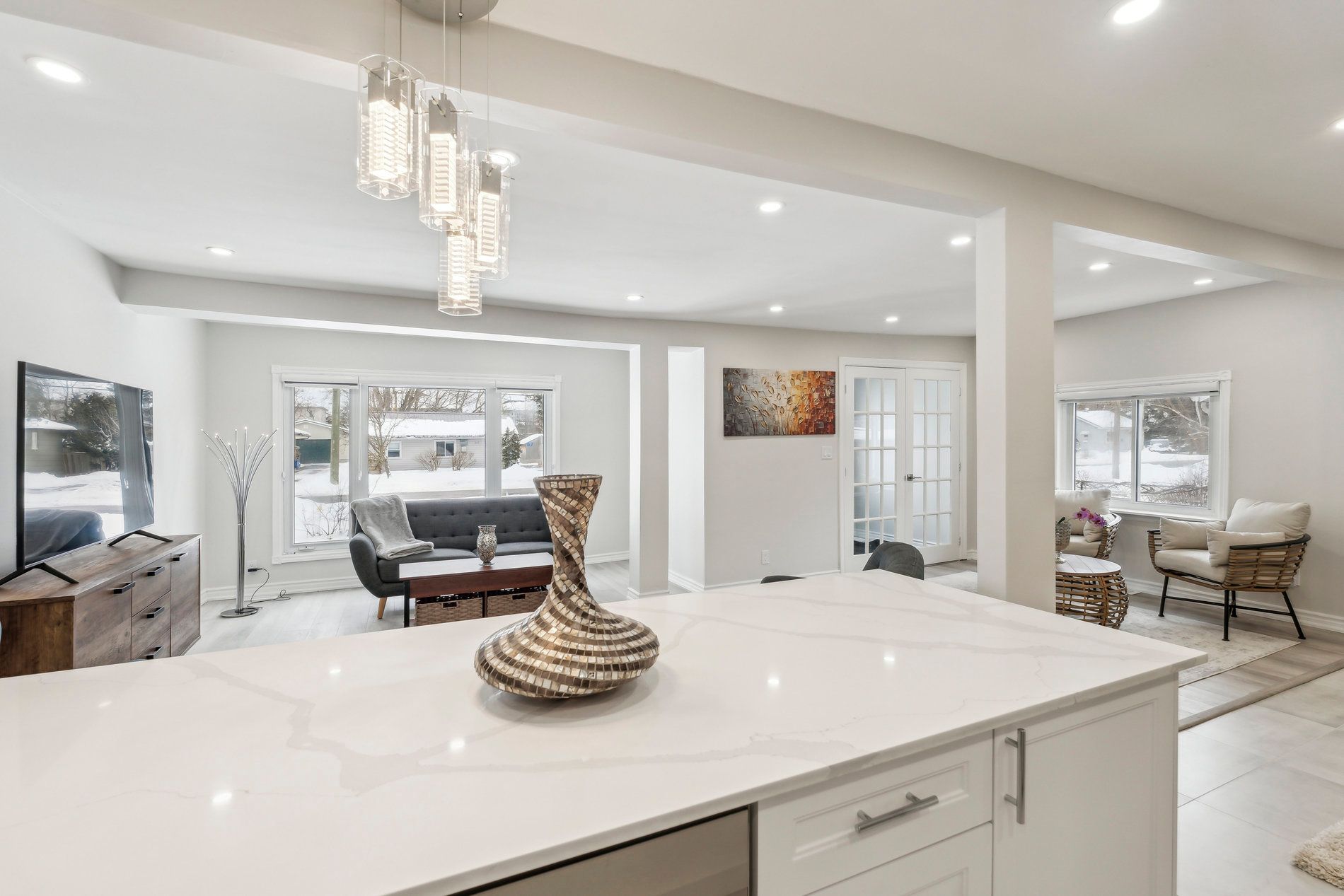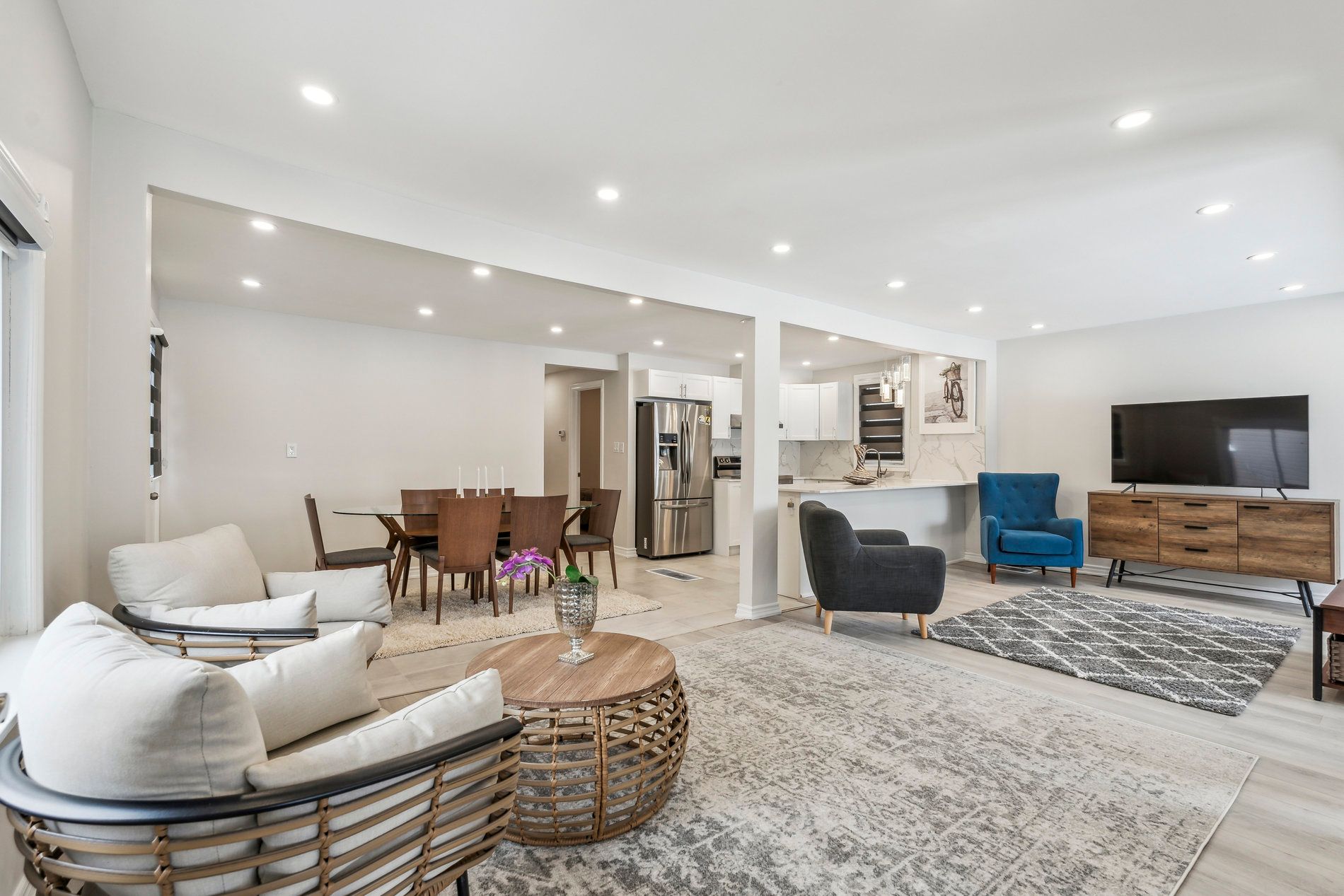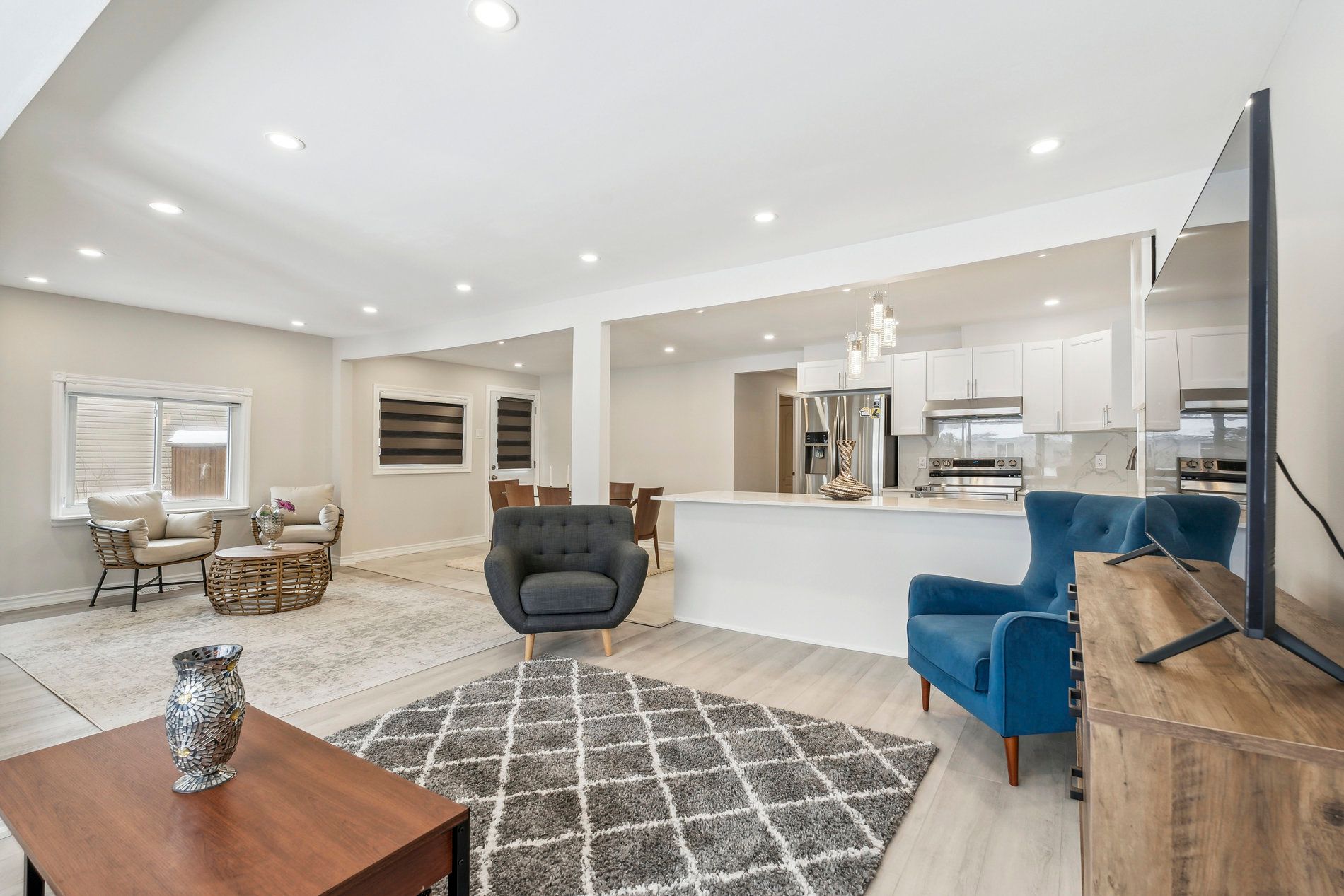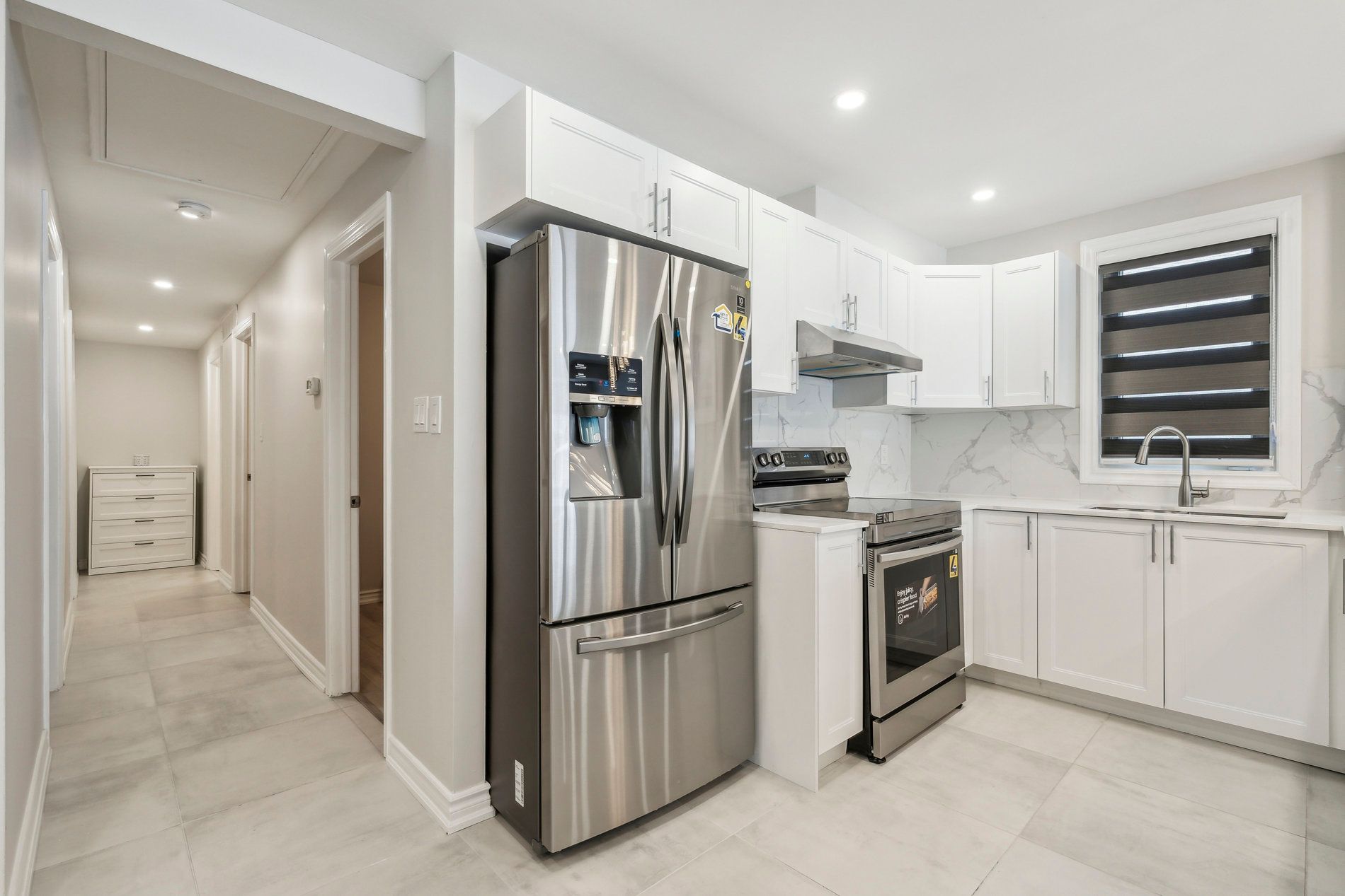 Welcome to this beautifully updated, move-in-ready home designed for modern living. Featuring new laminate flooring throughout, the home offers a seamless and contemporary feel. The fully renovated kitchen is a standout, featuring new cabinetry, elegant quartz countertops, and sleek stainless-steel samsung appliances, including a fridge, stove, and dishwasher. Smooth ceilings with recessed pot lights enhance the bright and inviting atmosphere, while stylish zebra blinds provide both privacy and sophistication. This charming home offers three generously sized, sun-filled bedrooms. The primary bedroom serves as a private retreat, complete with a renovated 3-piece ensuite and patio doors leading directly to the backyard, perfect for quiet mornings or relaxing evenings. A second upgraded bathroom adds convenience for the family and guests. Step outside to an extra-deep backyard, ideal for entertaining, summer barbecues, children's play, pets, or simply enjoying outdoor living. Additional features include newer interior doors, updated bathrooms, a dedicated laundry room, and a large attic offering excellent potential for additional living space or ample storage . Conveniently located close to schools, shopping, parks, and all essential amenities, this home truly offers comfort, style, and functionality. Completely move-in ready-just unpack and enjoy. A fantastic opportunity not to be missed.