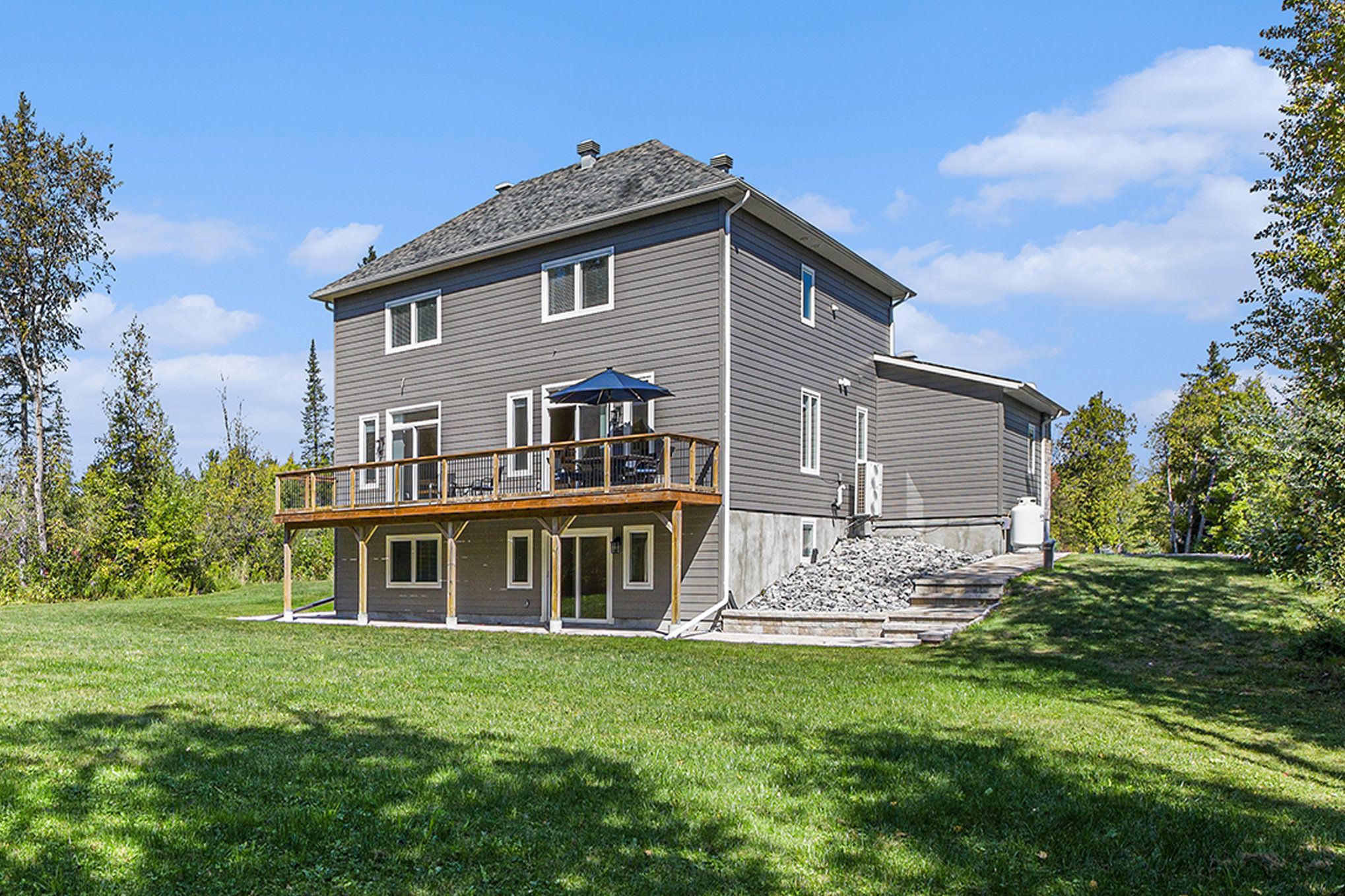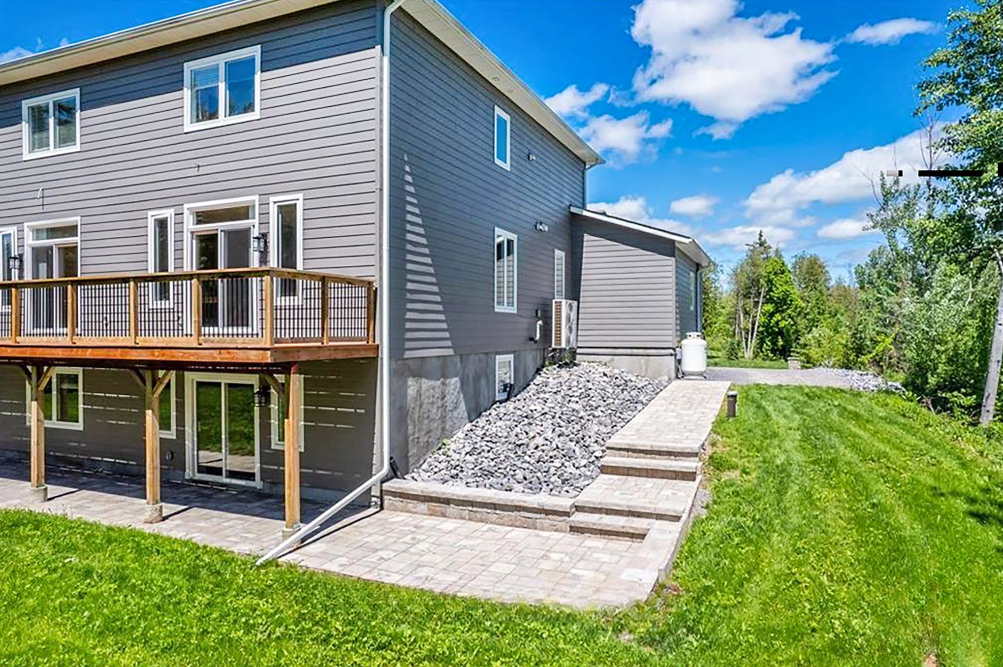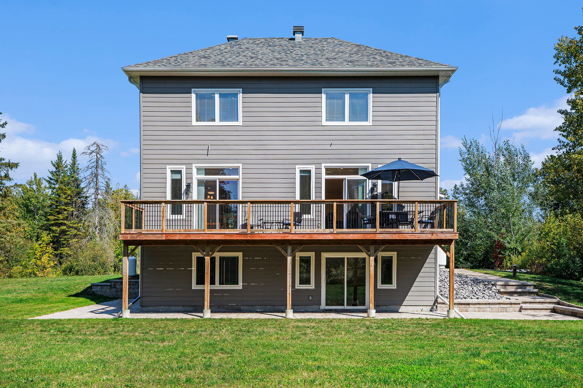 This executive residence situated on a private 2-acre lot offers the rare opportunity of two fully self-contained custom homes under one elegant roof, providing the perfect solution for large families, multi-generational living, or generating rental income. Behind its striking cut-stone exterior are two complete dwellings, each with its own private entrance, separate utilities, and finished to the highest standards. The primary residence features 3+1 bedrooms and 4 bathrooms, while the secondary residence offers 1+1 bedrooms and 2 bathrooms, each with open-concept layouts designed for both comfort and entertaining. Both homes boast true chef-inspired kitchens with quartz counters, cappuccino bars, smart fridges, and premium appliances, along with hardwood flooring on the main and second levels, custom railings, and heated bathroom floors with european-style bidet toilets. Walkout lower levels in each unit provide spacious media rooms, additional bedrooms, full baths, and direct access to interlock patios that extend the living space outdoors. Lower-level stairs are finished with berber carpeting and high-grade plank flooring, ensuring durability and style throughout. Every detail has been carefully considered, including individually controlled heating systems in each room for personalized comfort, an efficient heat pump with propane backup, and a double attached garage with ample space for two cars plus storage. Lightly lived in and essentially brand new, this home offers unmatched flexibility and can easily be reconfigured for seamless flow between the two units, creating one expansive family residence if desired. With its luxury finishes, practical design, and rare dual-home layout, this property presents an unparalleled opportunity truly two homes for the price of one on a private country setting.