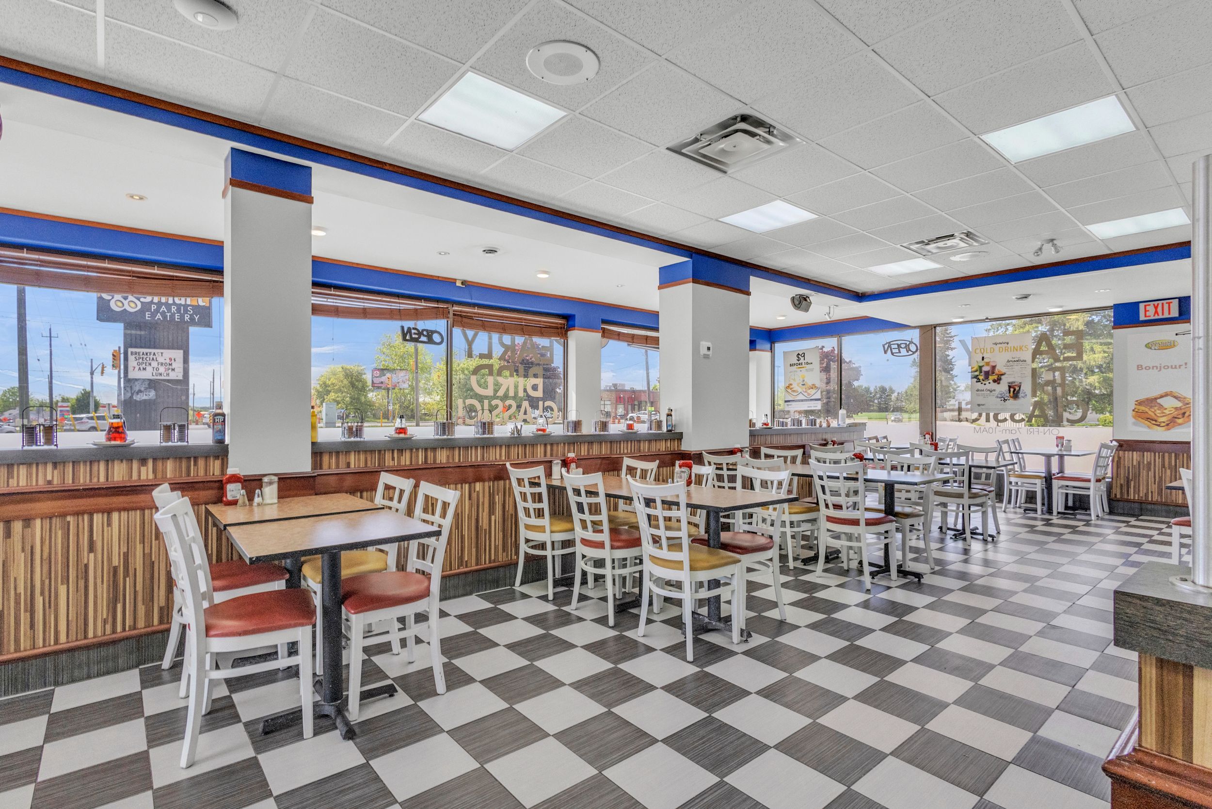Exceptional opportunity to acquire a well-established restaurant at one of the county's busiest intersections, offering high visibility and strong foot traffic. Operating daily from 7:00 am to 3:00 pm, the business serves a popular breakfast and brunch menu with dine-in, takeout, and delivery options. Approximately 1,700 sq ft with seating for 64 indoors plus additional patio seating. Ample on-site parking available. Turn-key operation with growing sales, low food costs, affordable franchise fees, and strong profit margins. Low monthly rent of $5,860 including tmi and hst, with a long-term lease in place. Training and support provided. Ideal opportunity for both new and experienced operators.