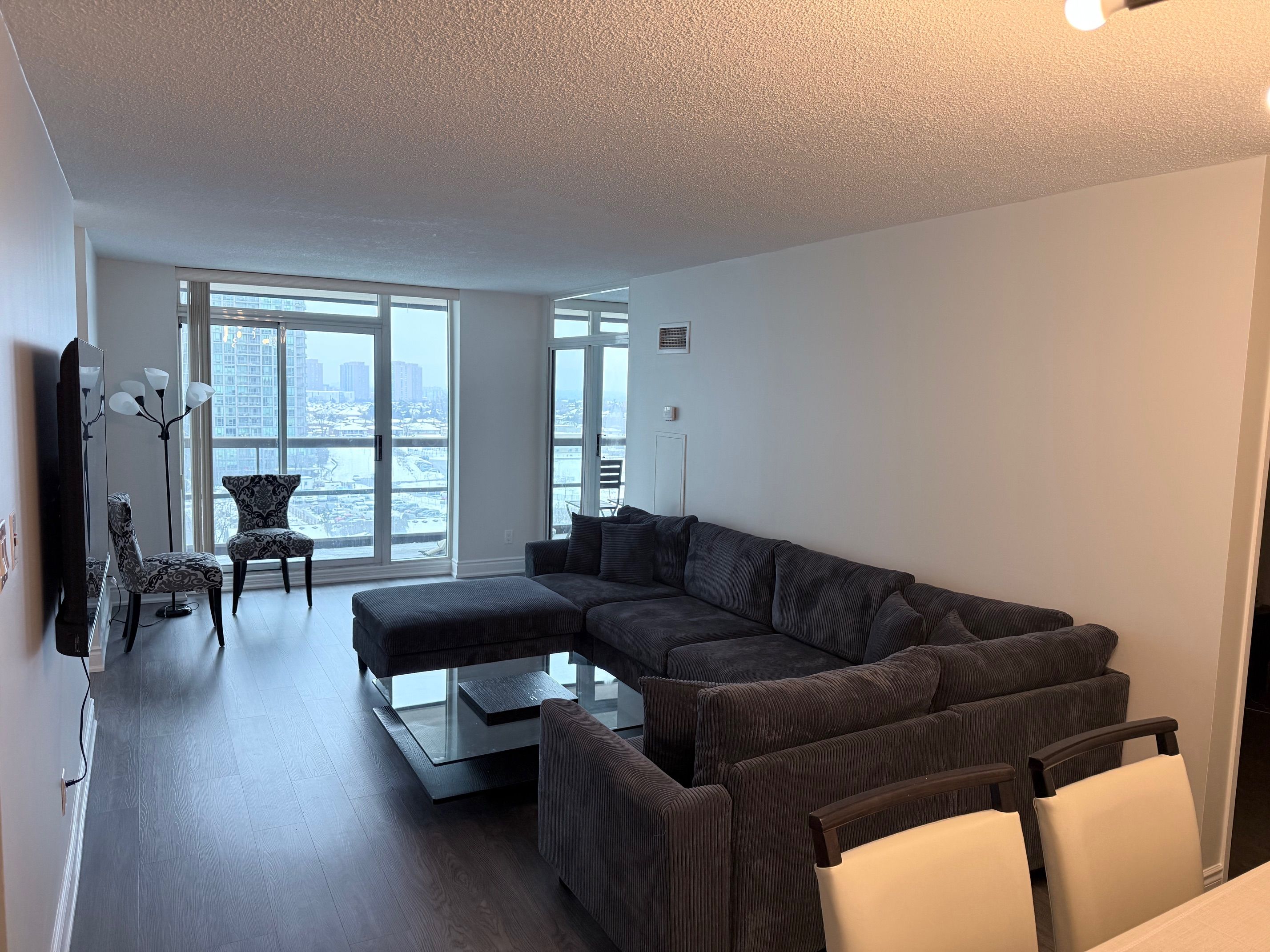 Presenting a fully furnished, gorgeous 2-bedroom plus den suite that is immaculate andspacious, offering approximately 1200 sq. Ft. Of comfortable living. This home features twomodern 3-piece bathrooms, stylish wall paint colours, and upgraded laminate flooring in theliving / dining areas, bedrooms and den. The kitchen is fully equipped for all your culinaryneeds, and opens onto a generous balcony with southern views. Residents enjoy a wealth of building amenities, including an indoor pool, exercise room, a hugeparty room, bbq area, and more. Centrally located, the property provides easy access to hwy 403 and qew, square one mall, transit, and shopping, making it ideal for convenience and lifestyle.