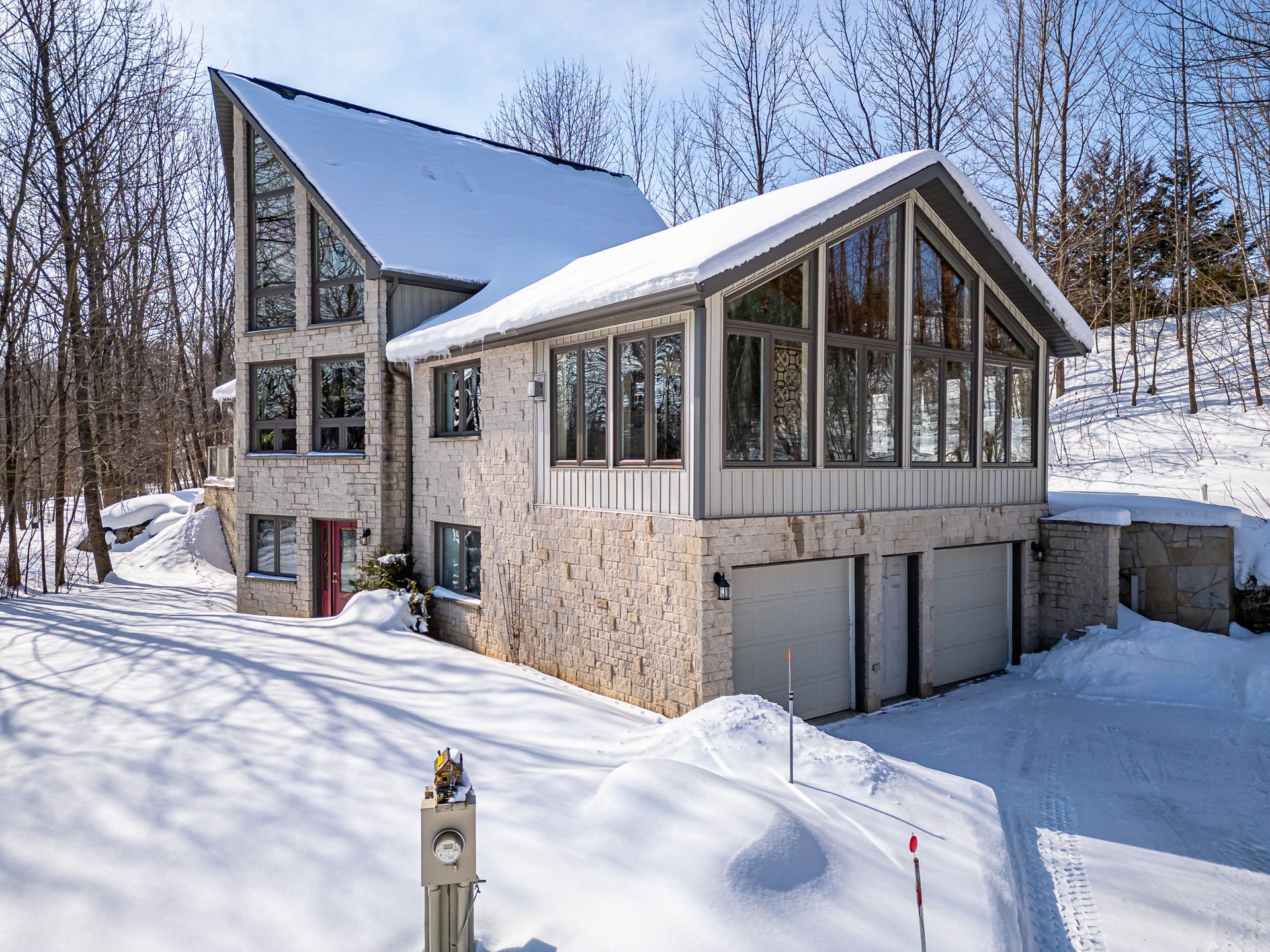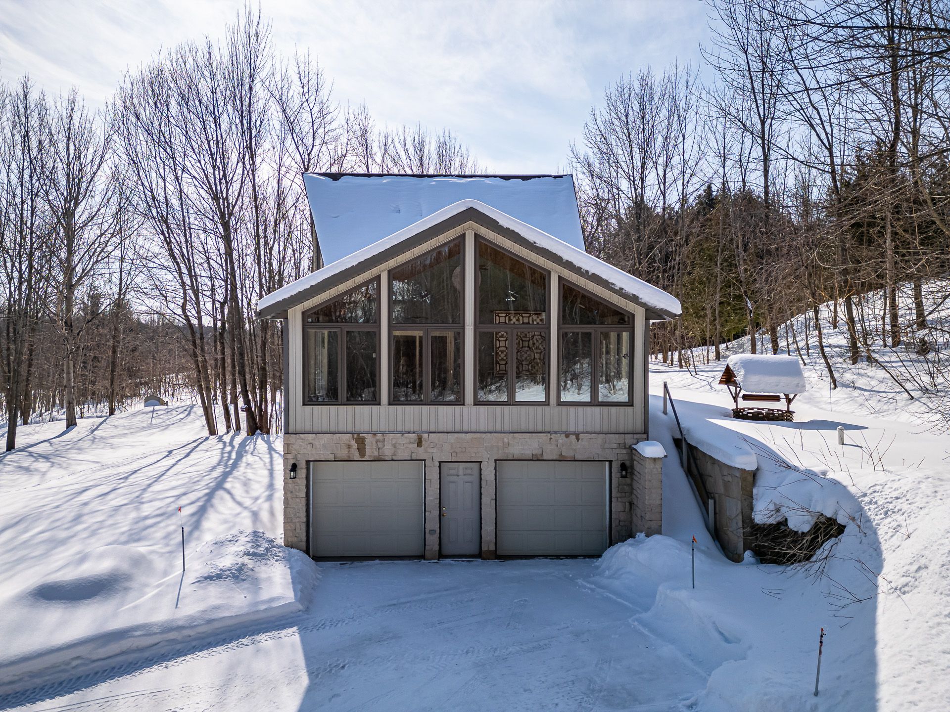 Steps to the bay and public beach! One-owner home, custom-built in 2004, and set on 1. 93 treed and manicured acres. Features include a great room with 24 foot vaulted ceiling, family room with fireplace, 4 season sunroom, oversized double garage and double-wide driveway. Master bedroom features 3 pce ensuite, walk-in closet and patio doors to large deck and hot tub. New fibre optic cable at the house. The attention to every detail of form and function make this 2-4 bedroom home a pleasure for realtors to show - and a real prize for the lucky new owner!