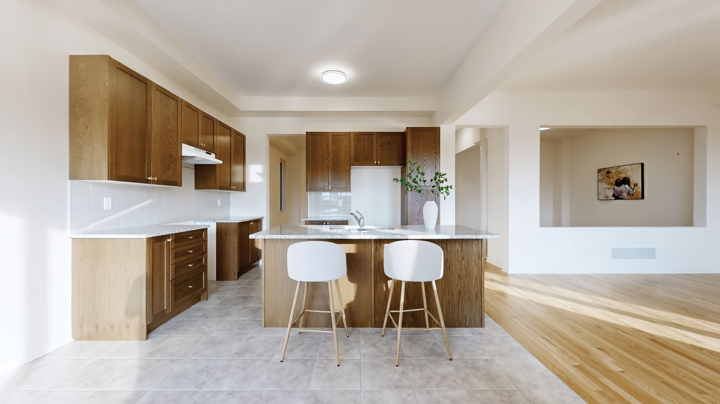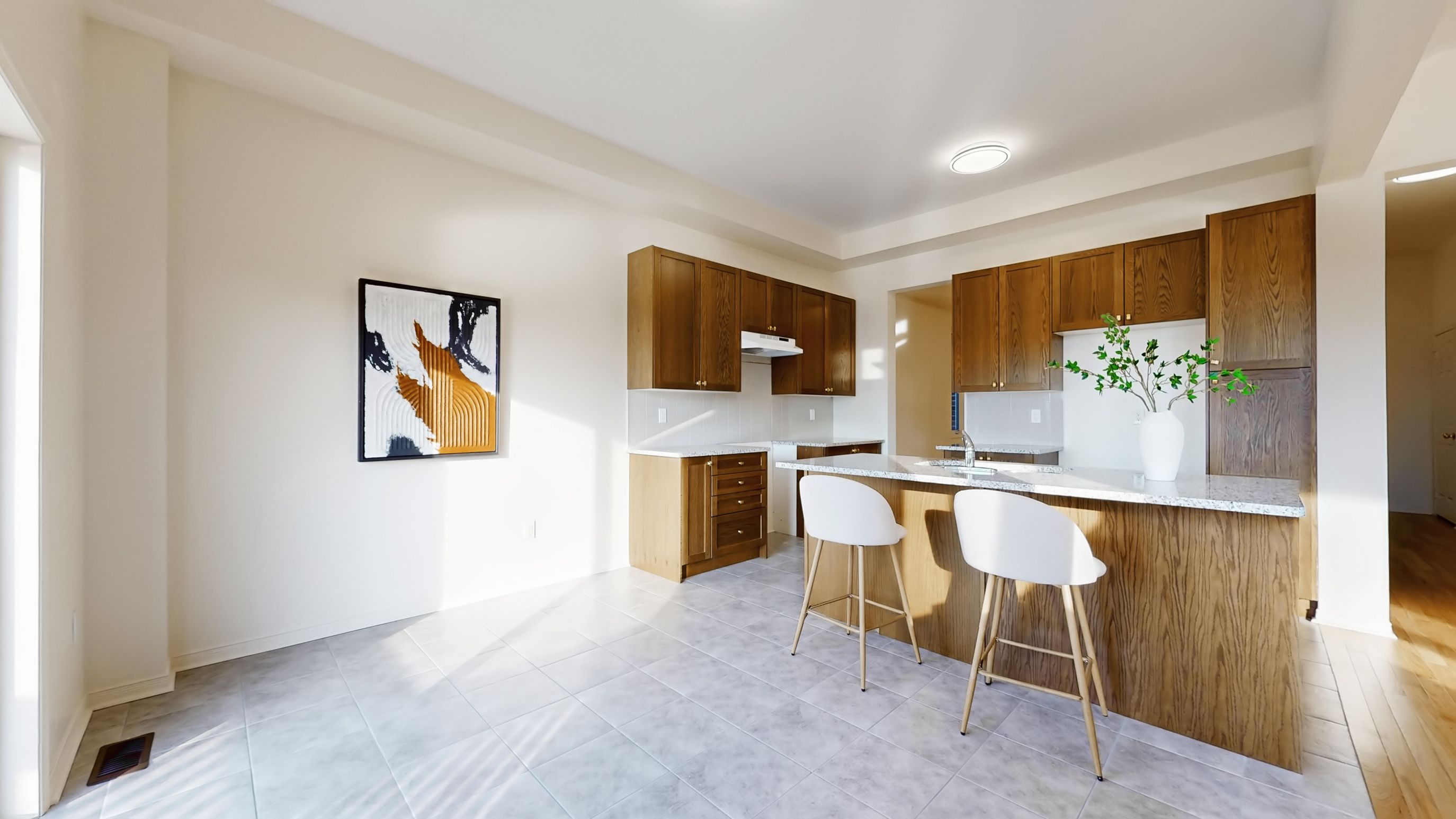 • Modern kitchen with an island and breakfast area for casual dining.