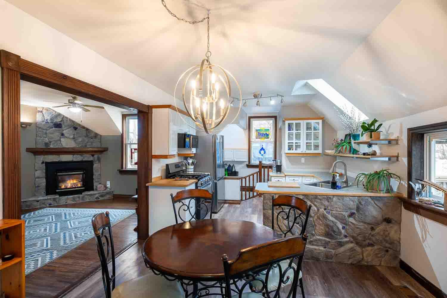• Spacious 800 sq.ft. apartment with a fireplace and a private deck.