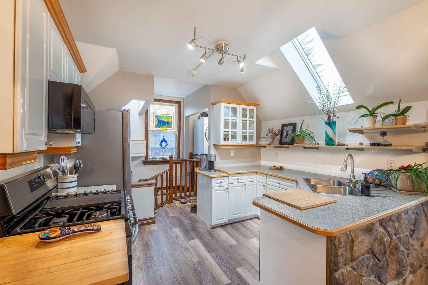 • 800 sq.ft. apartment above store offers private living with a stone fireplace.