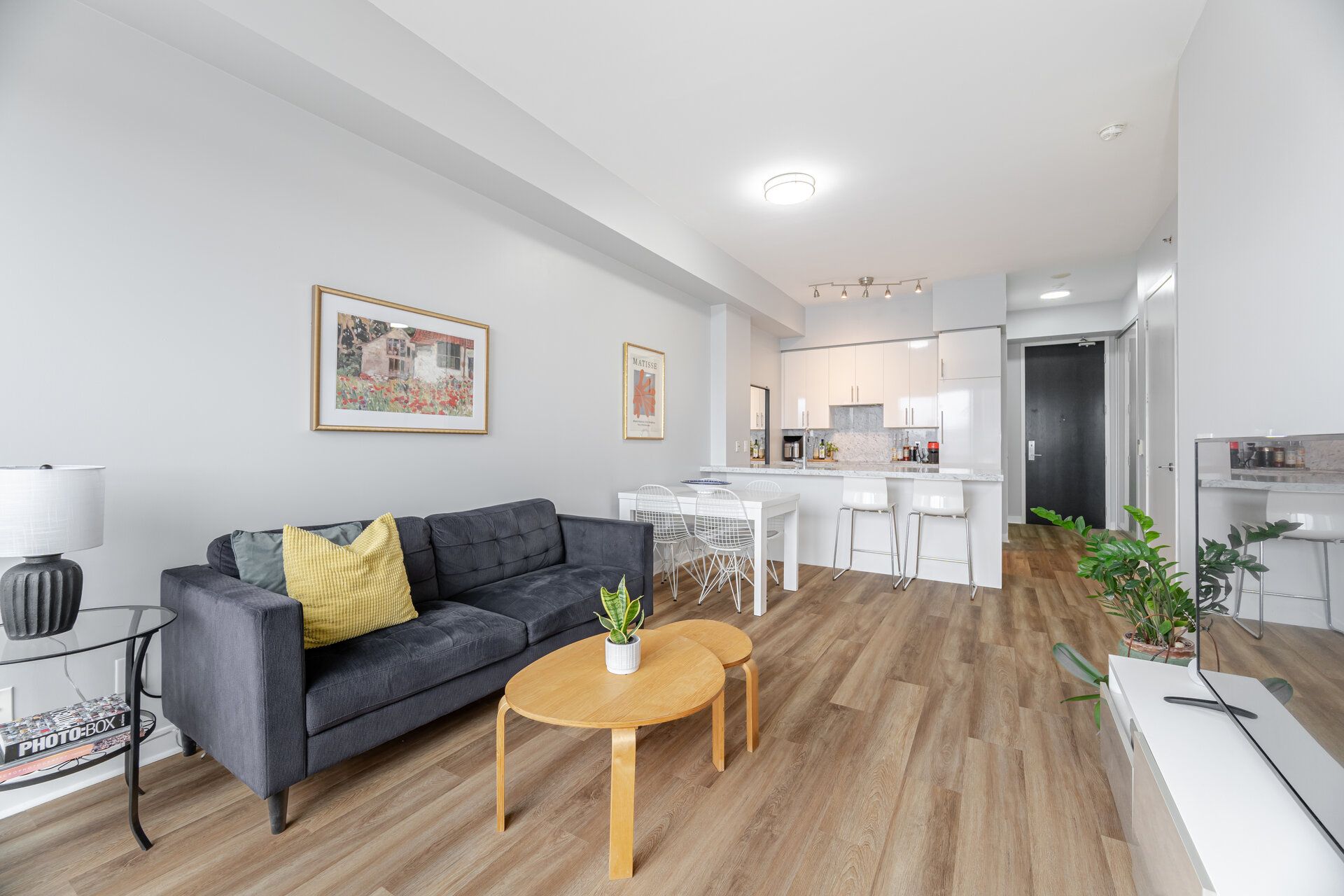 • Modern kitchen with quartz countertops and spacious open-concept layout.