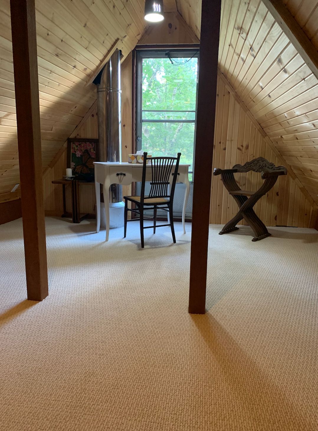 • Renovated loft offers peaceful views and serene space for relaxation.